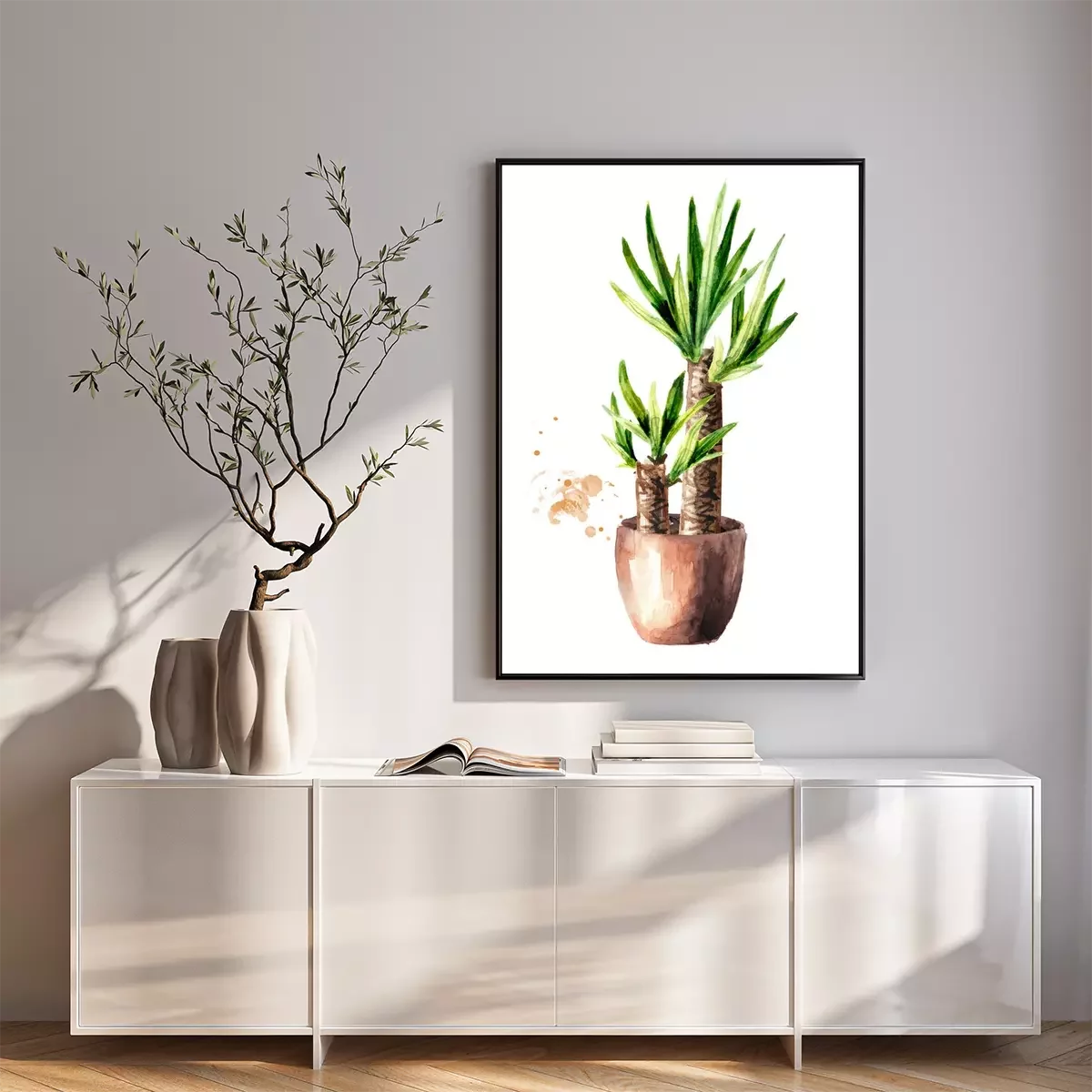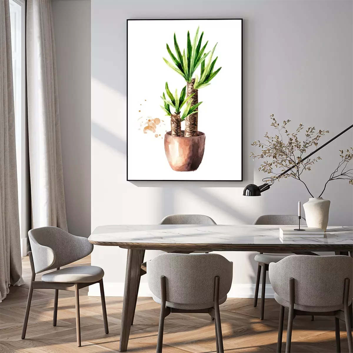Poster : Palmier dans une illustration aquarelle de pot