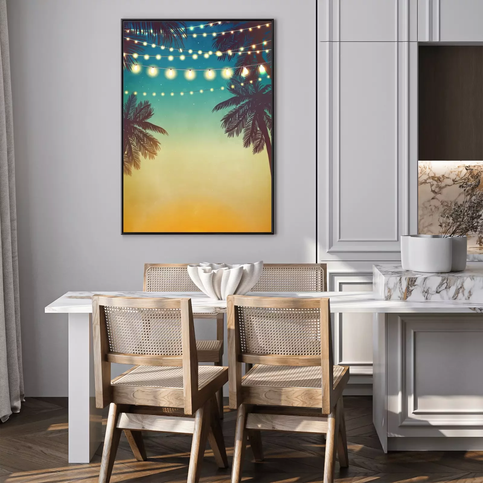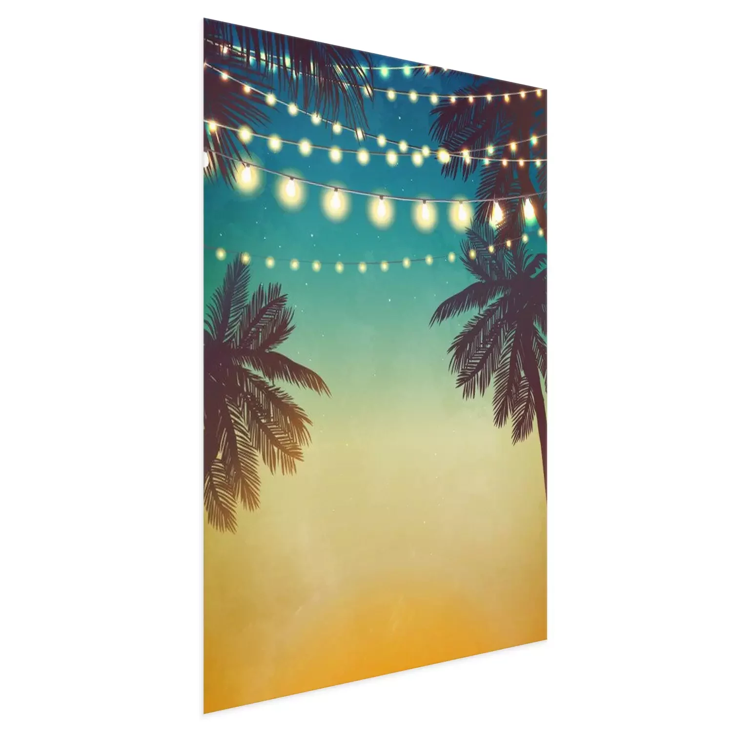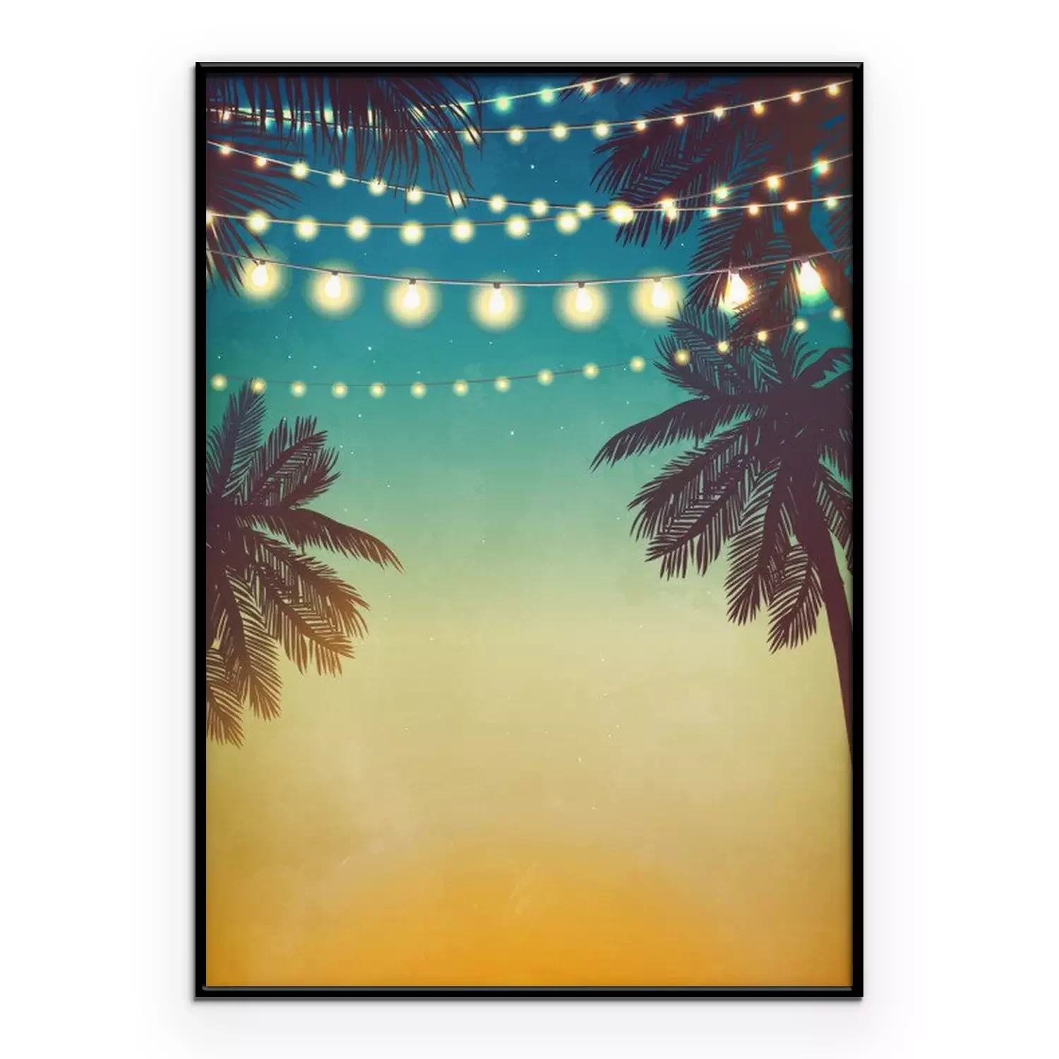 Poster  Palmiers avec des lanternes sous le ciel nocturne