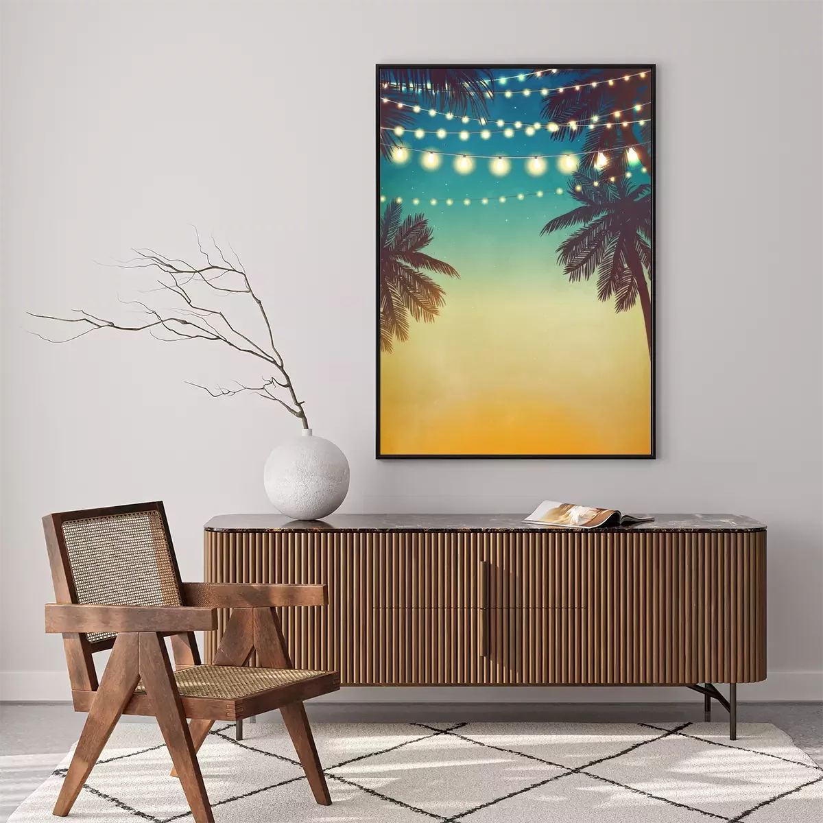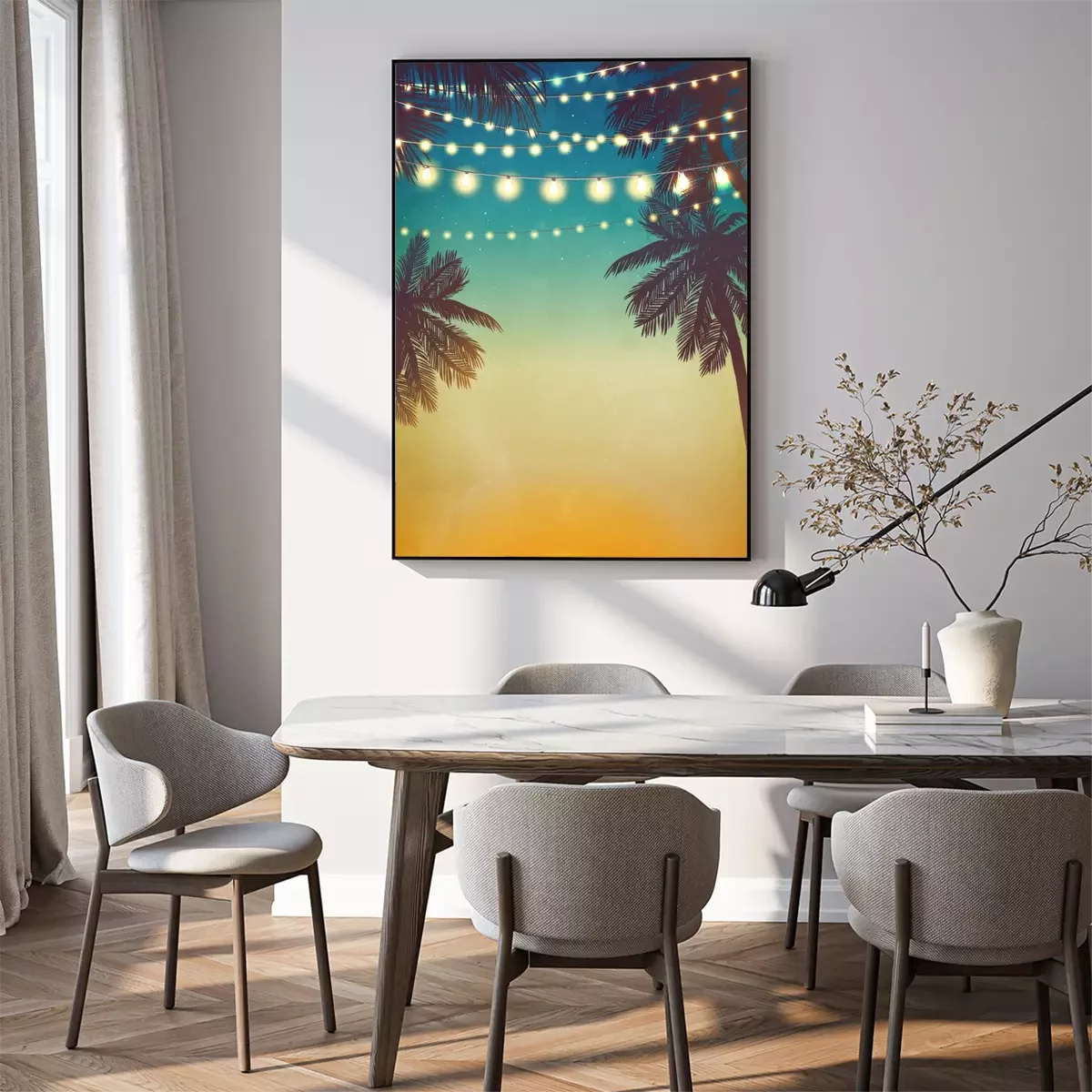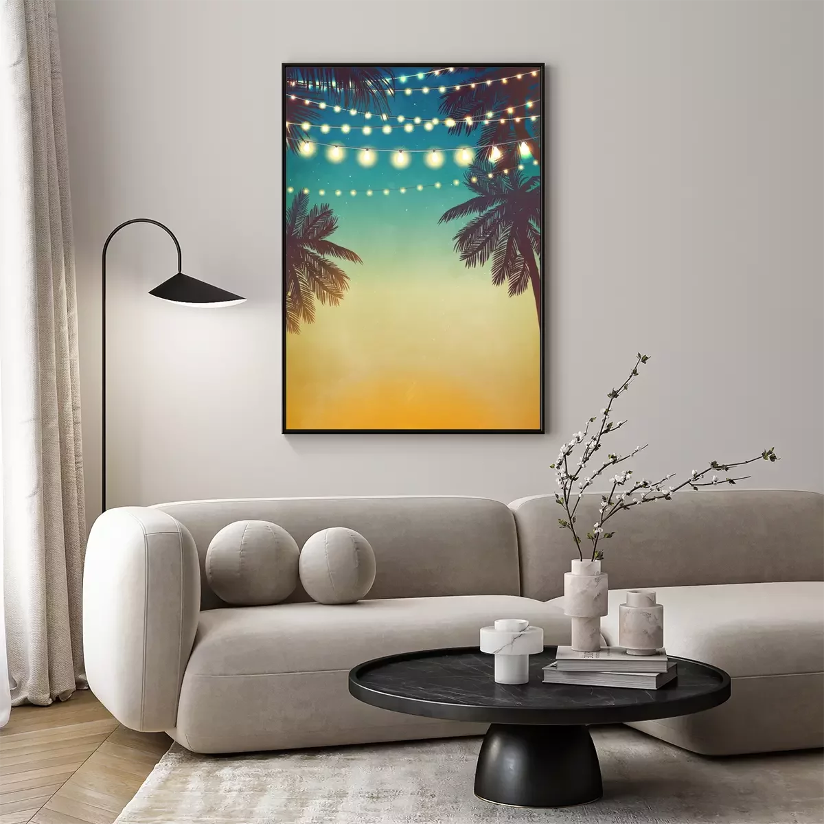 Poster  Palmiers avec des lanternes sous le ciel nocturne