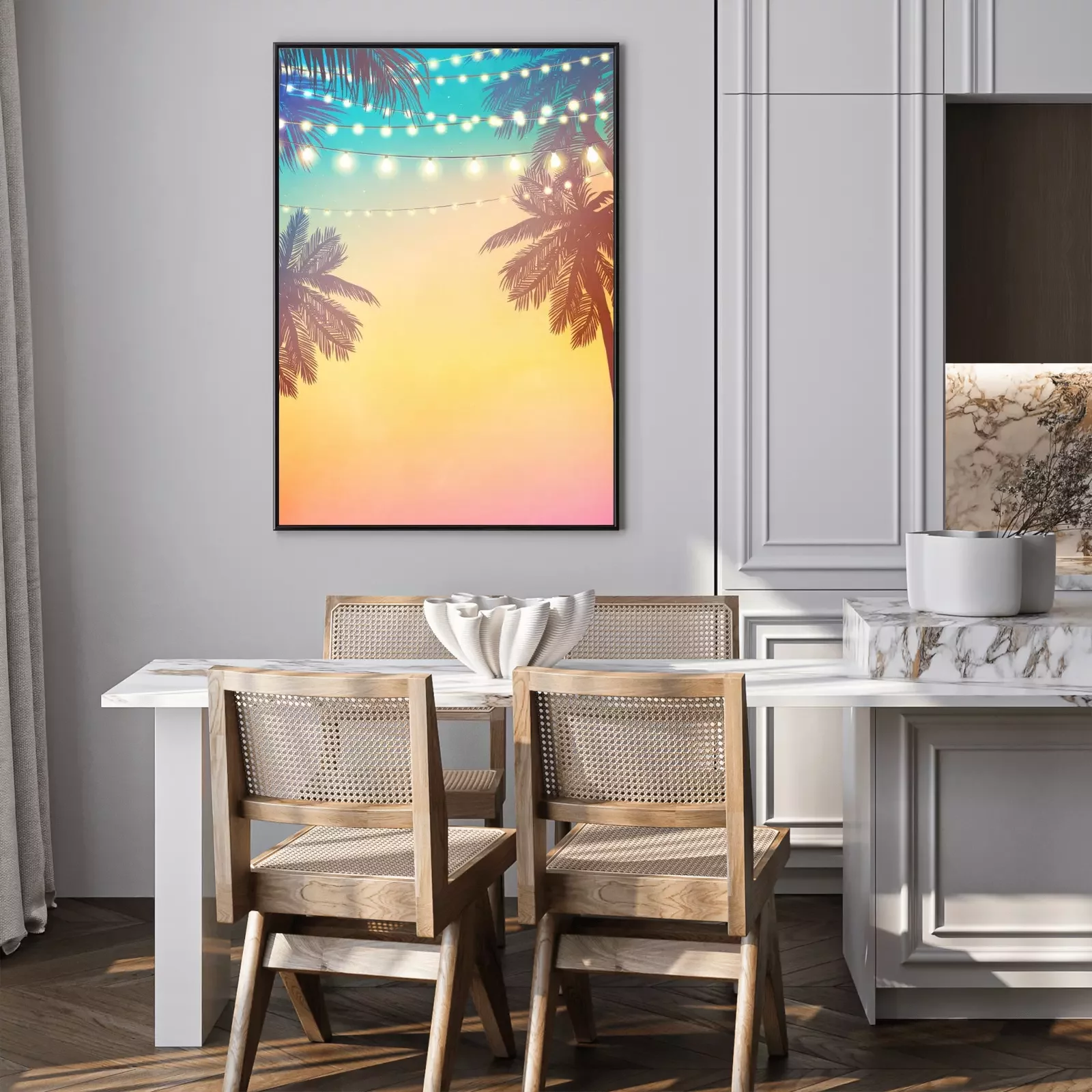 Poster : Palmiers et lampes au coucher du soleil
