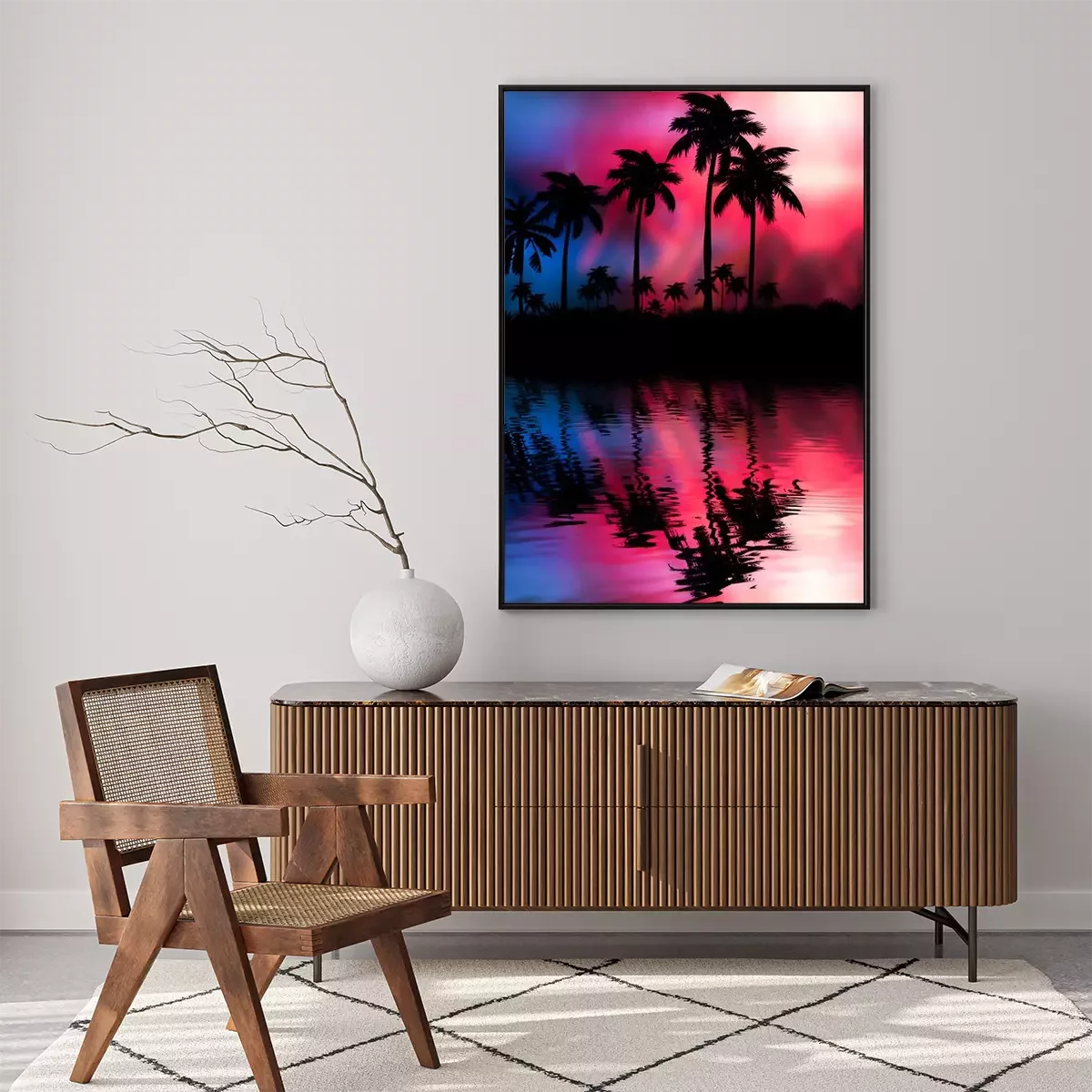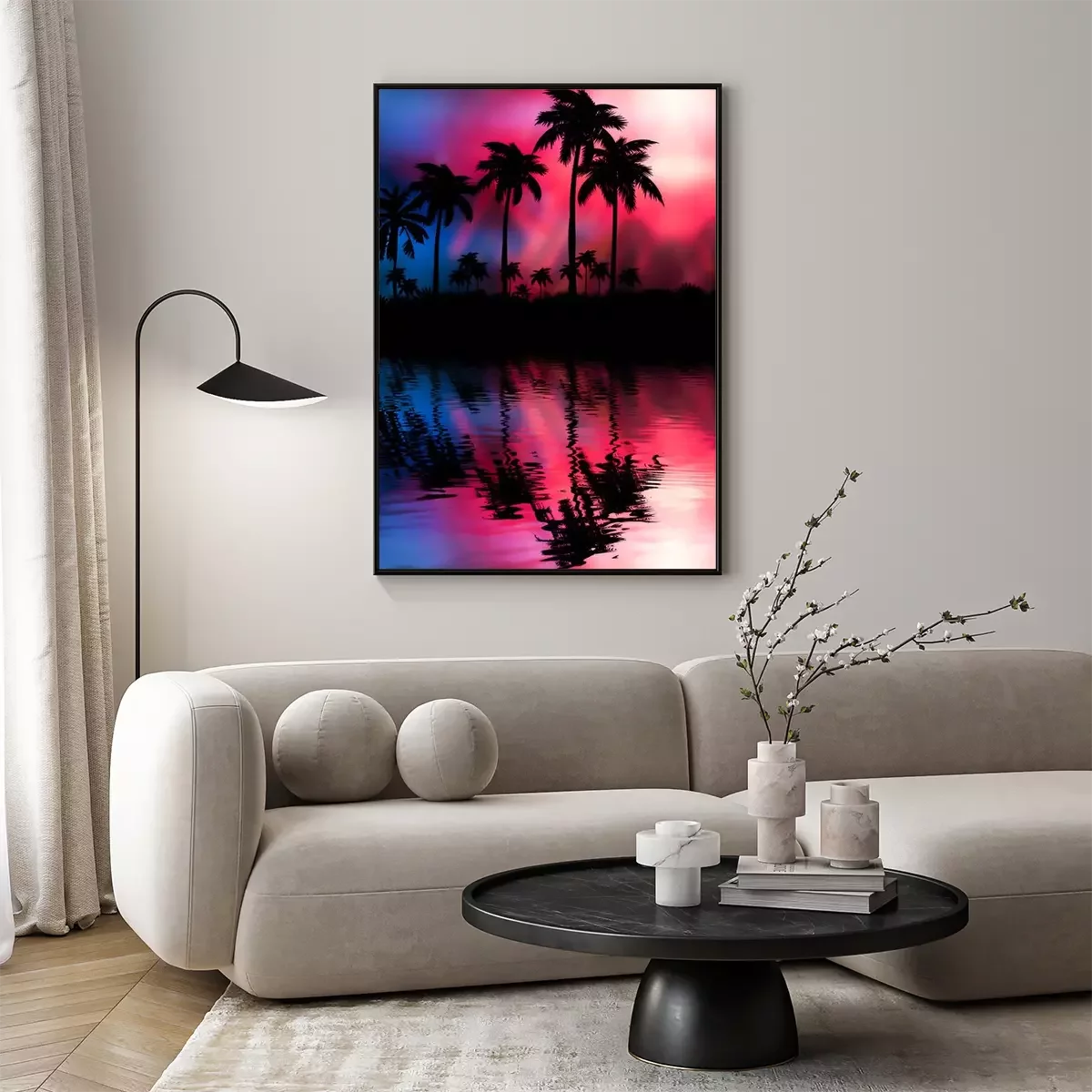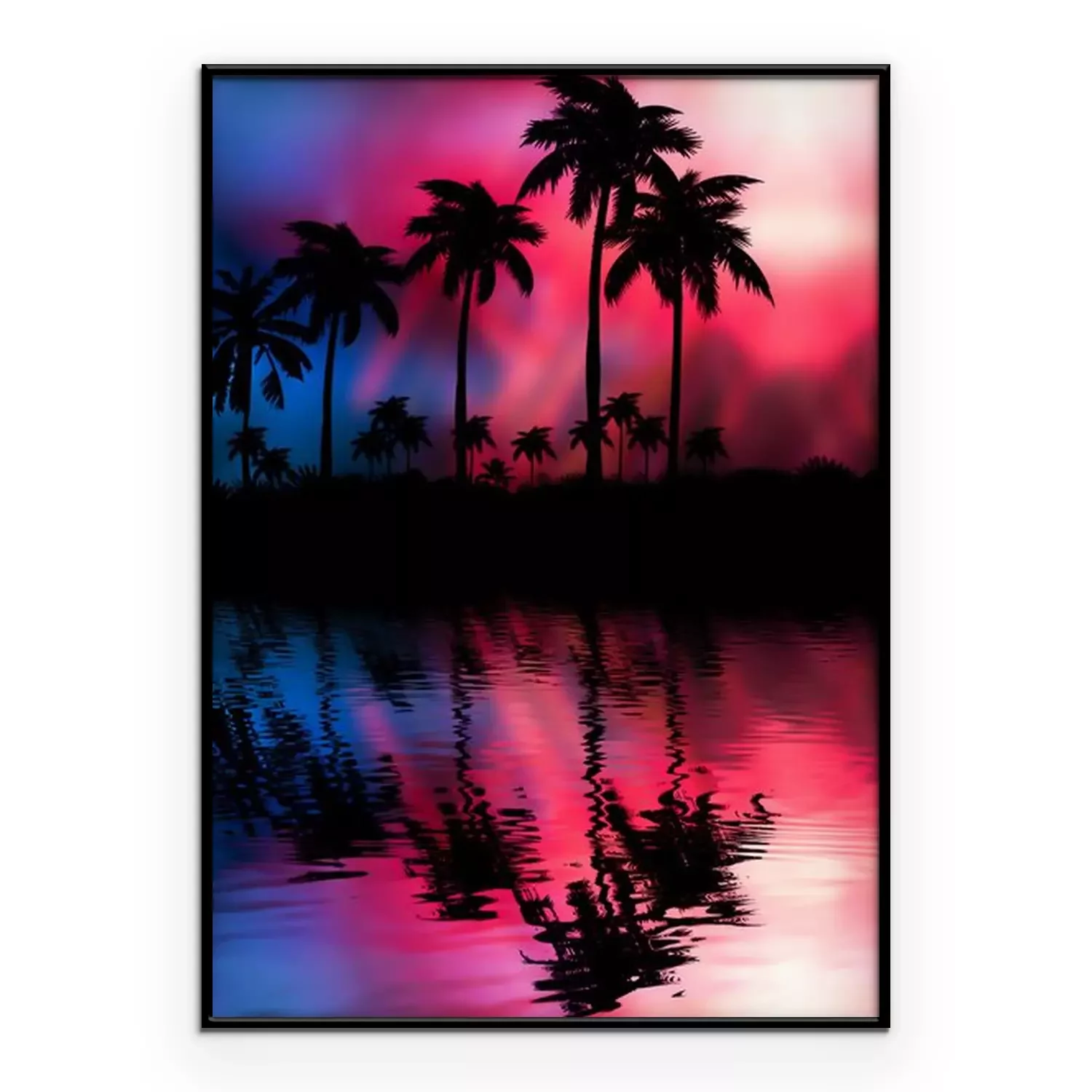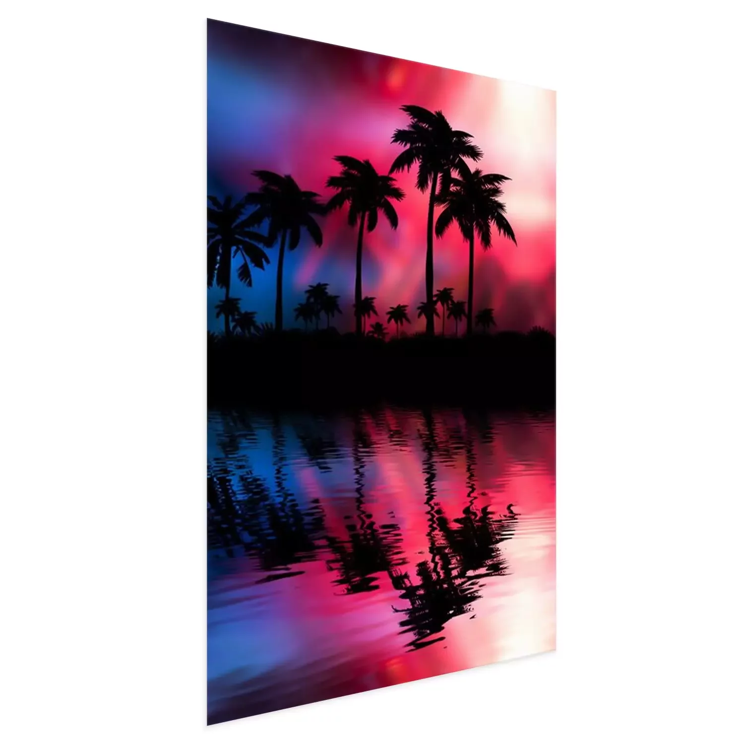 Poster  Palmiers sur fond rose au-dessus de l'eau