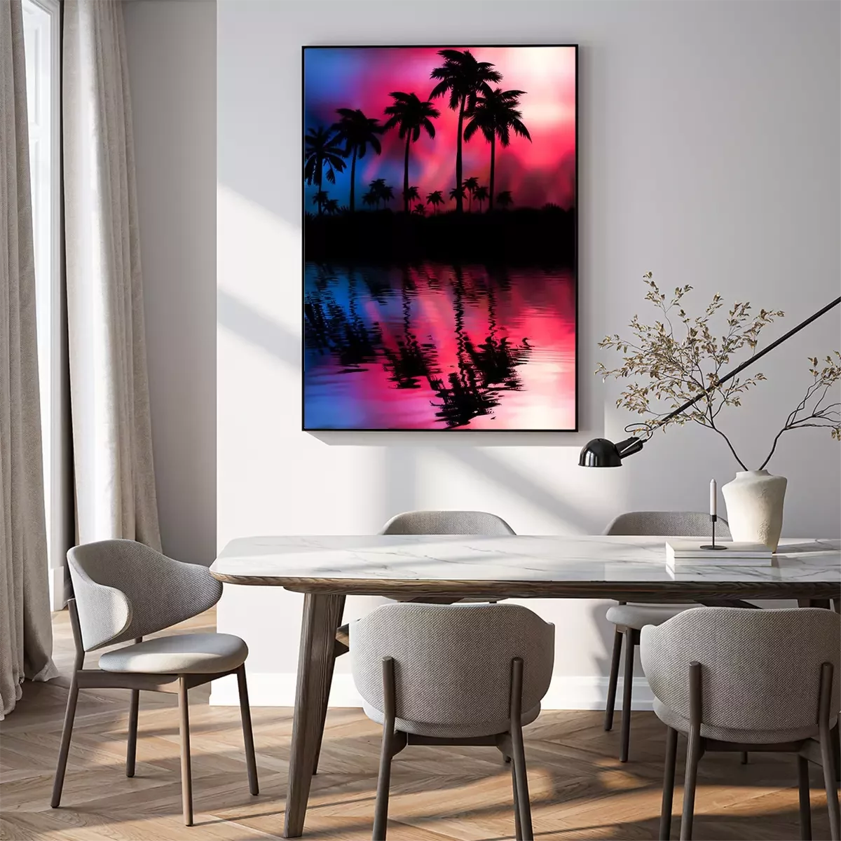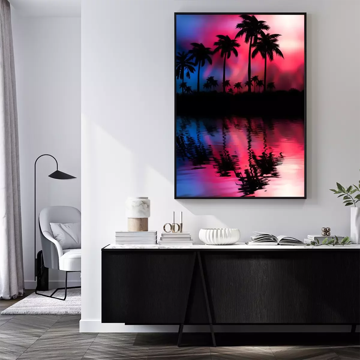 Poster : Palmiers sur fond rose au-dessus de l'eau