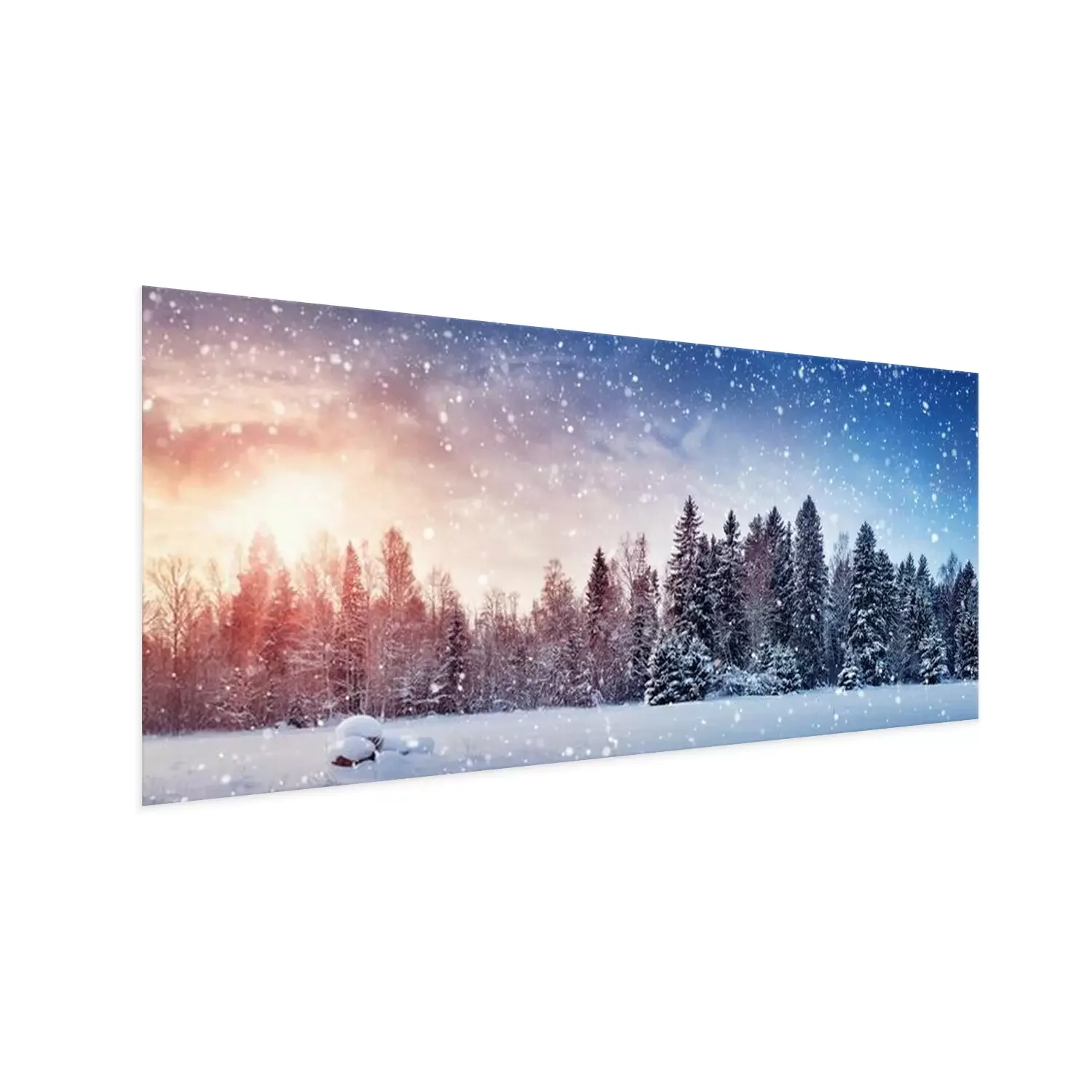Poster  Panorama de la forêt d'hiver au coucher du soleil