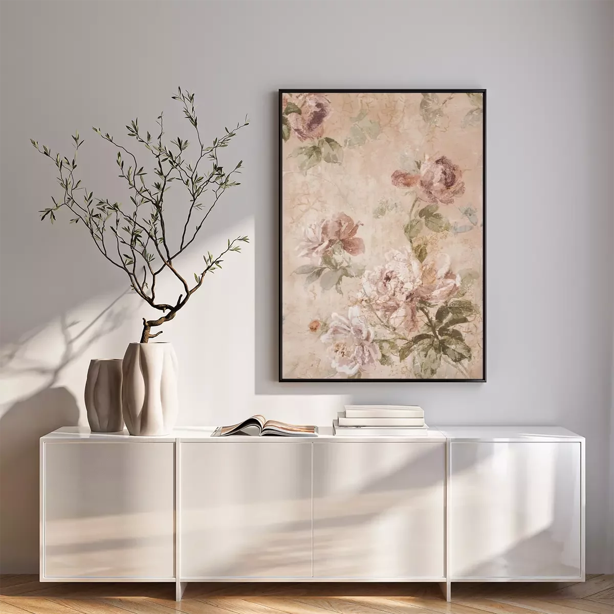 Texture de vieux papier avec fleurs roses