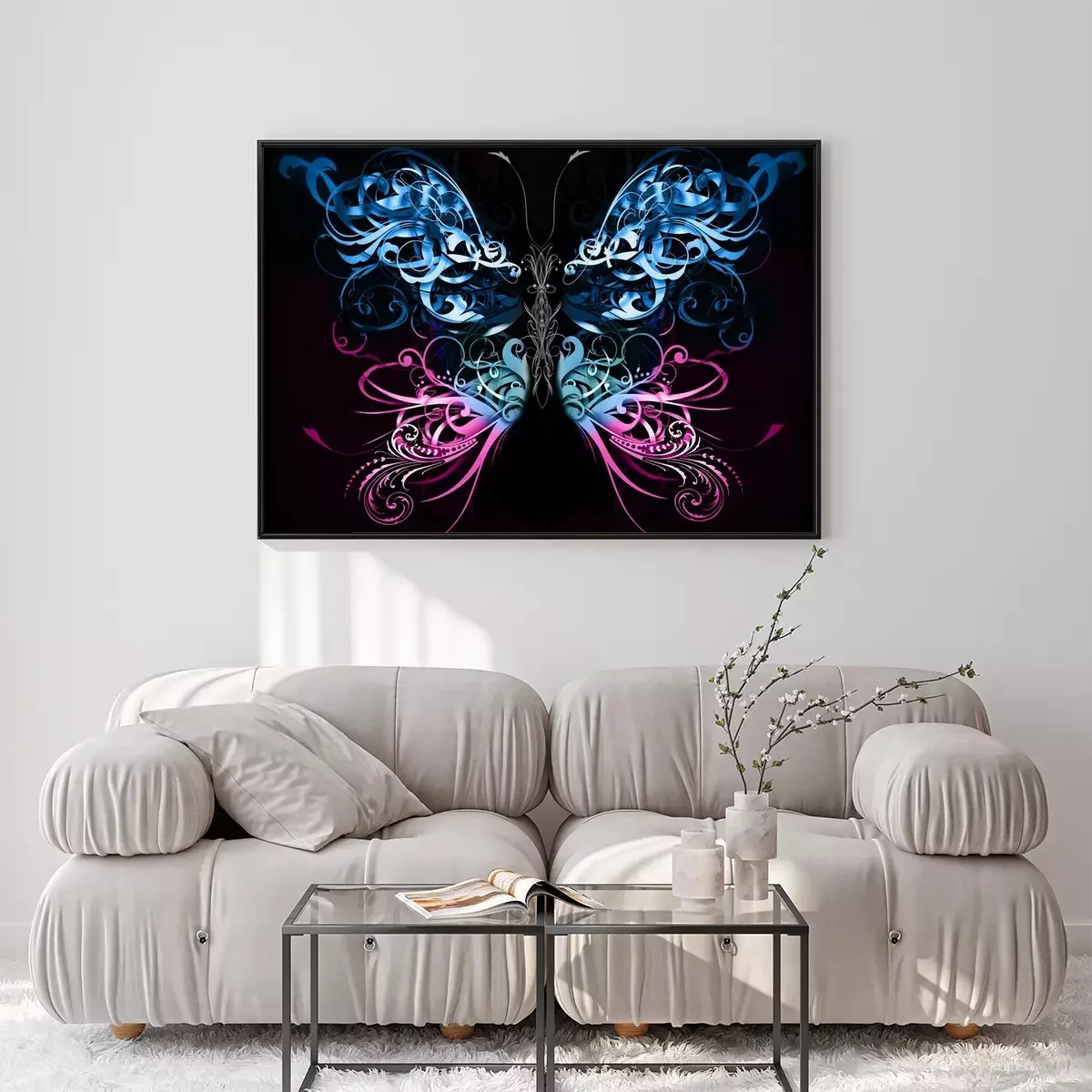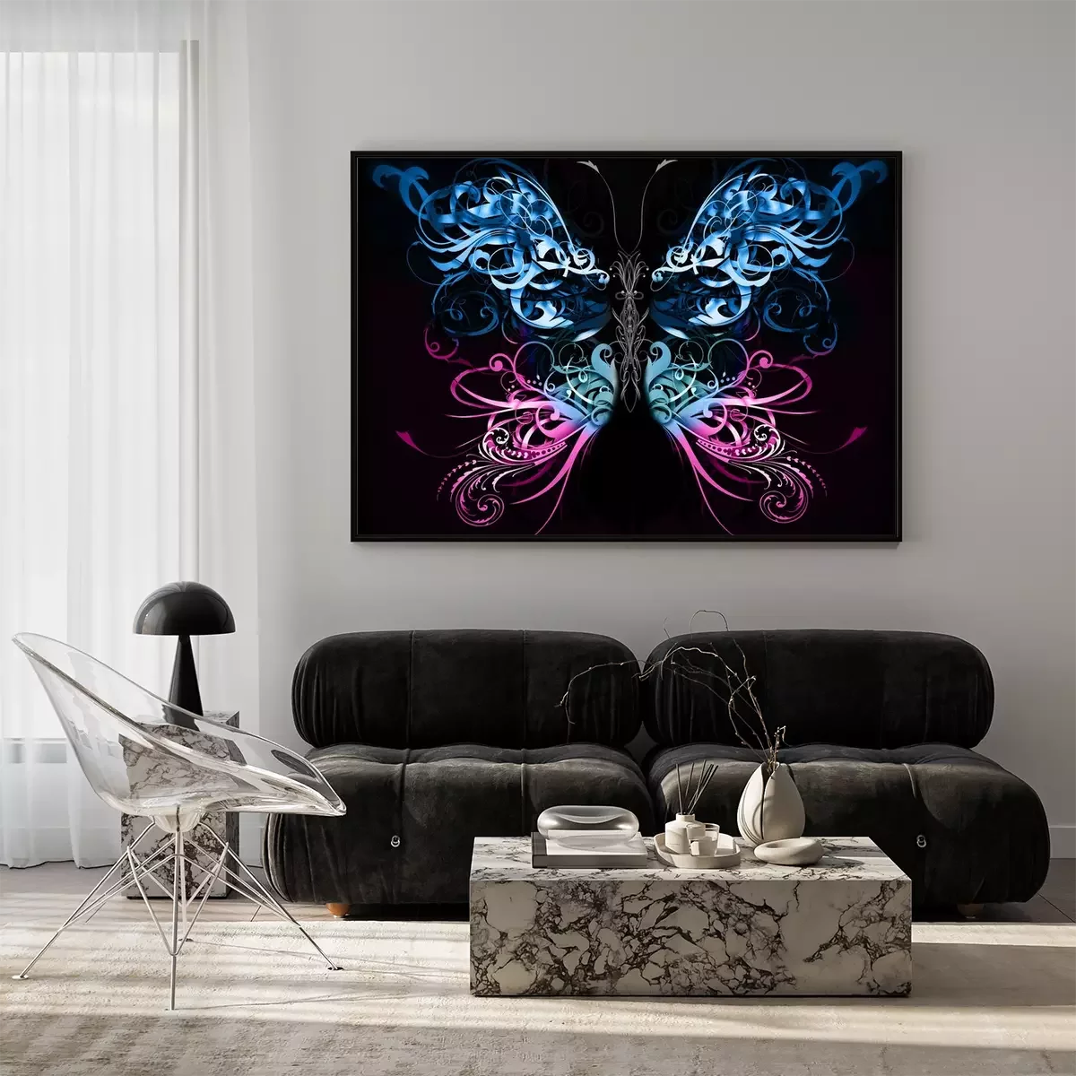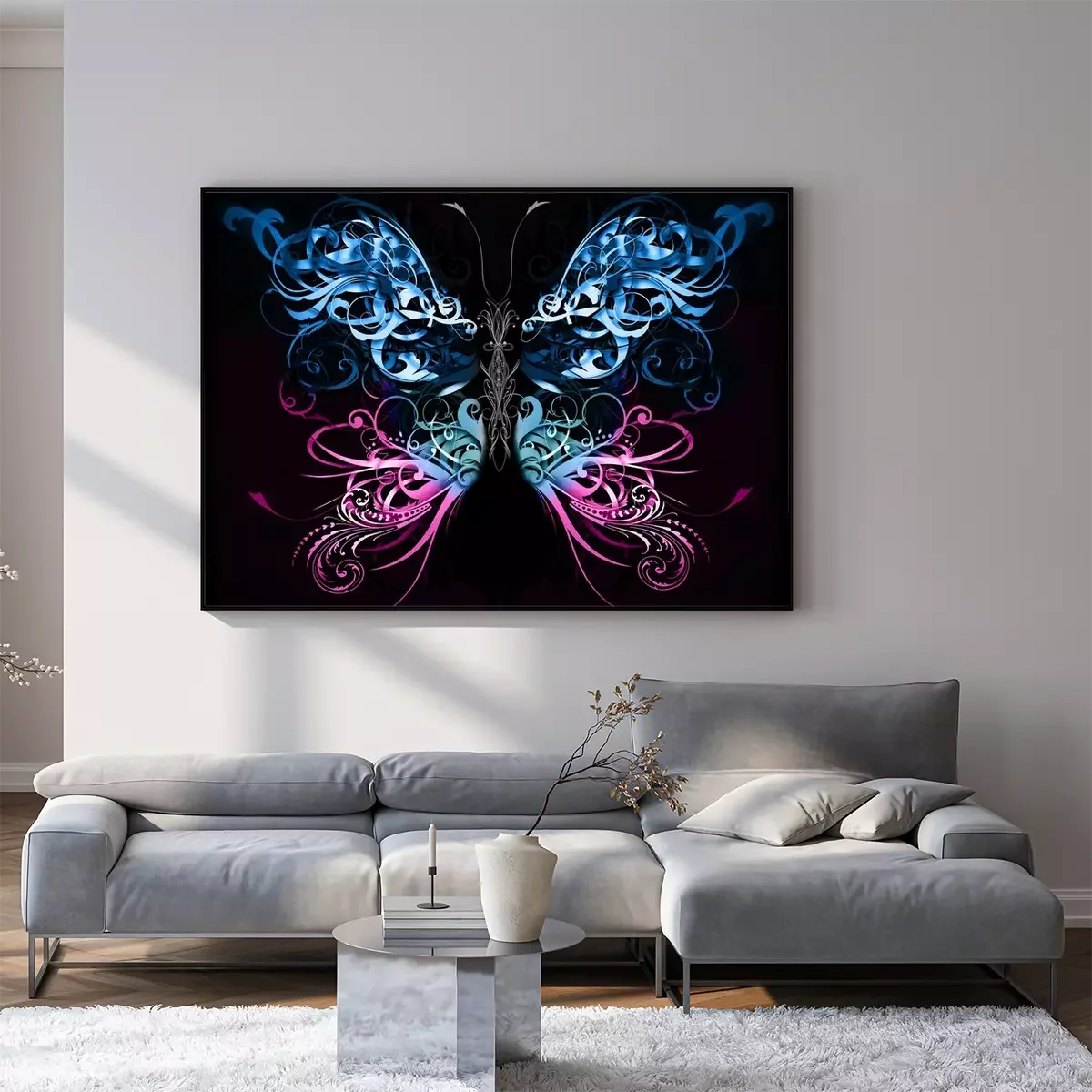 Poster  Papillon abstrait sur fond noir