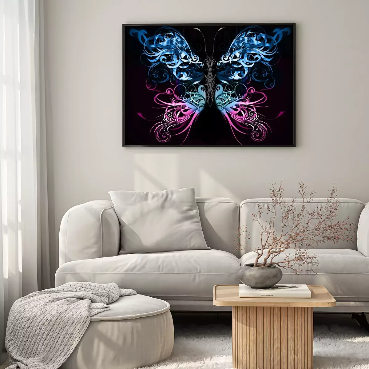 Poster : Papillon abstrait sur fond noir