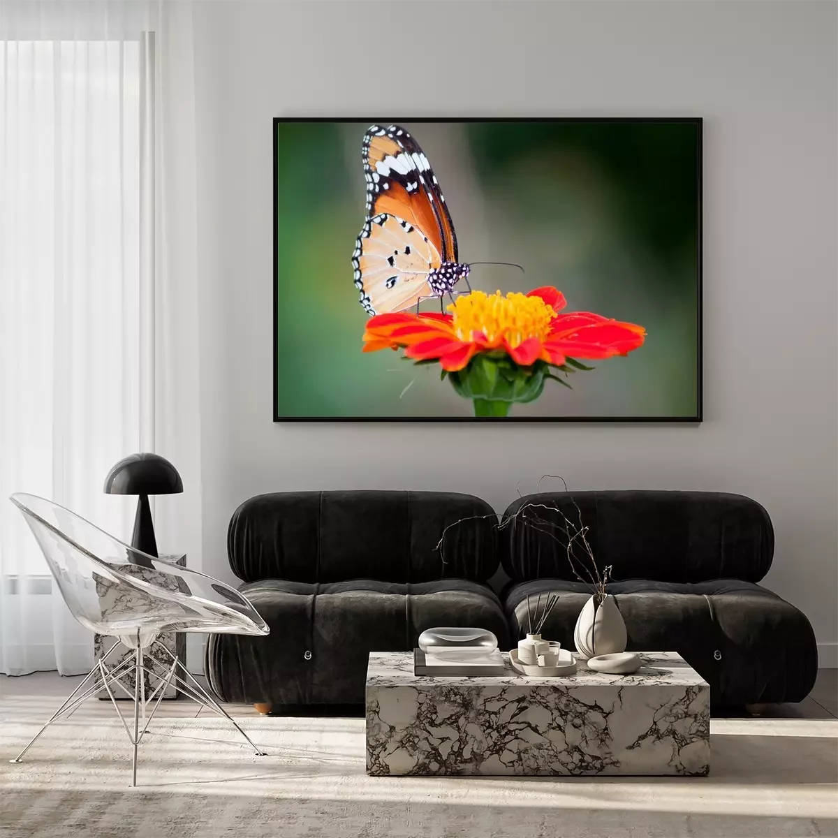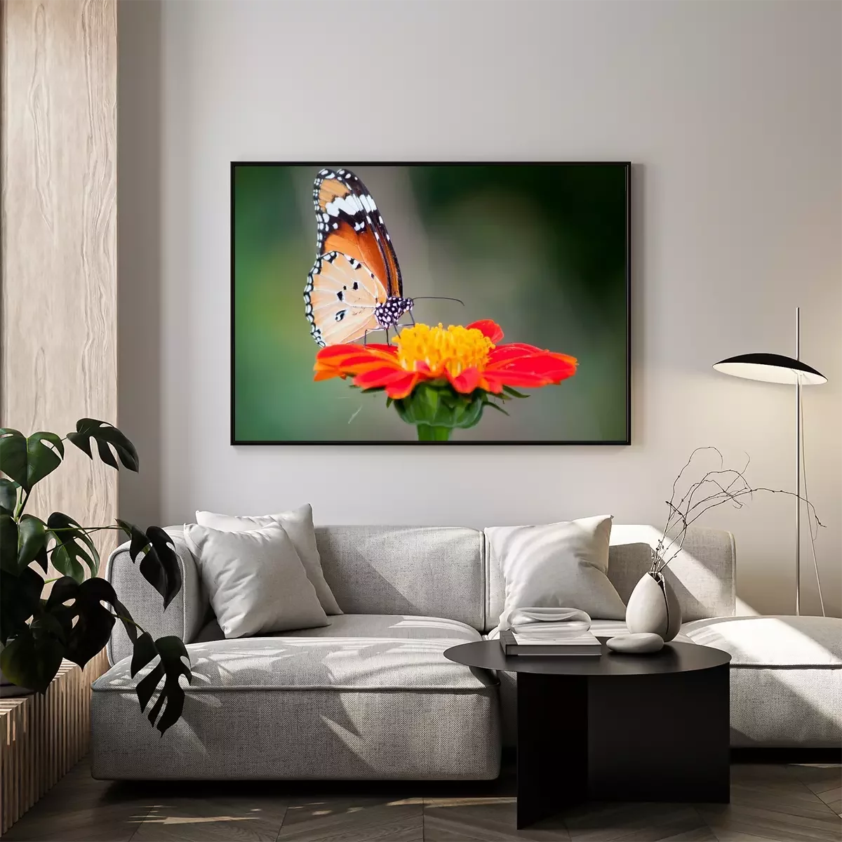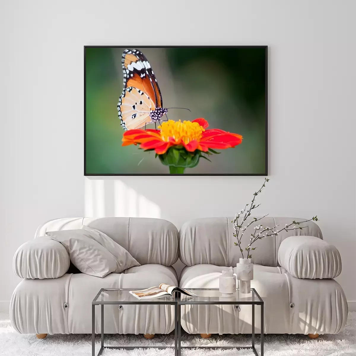 Poster : Papillon sur une fleur rouge
