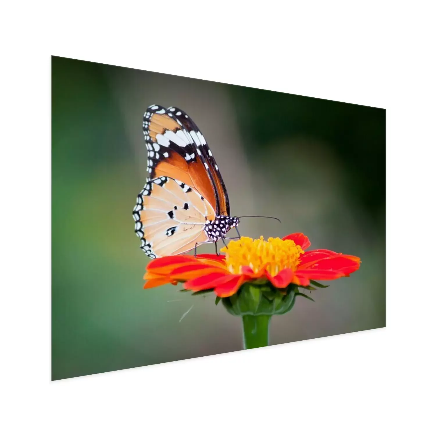 Poster  Papillon sur une fleur rouge