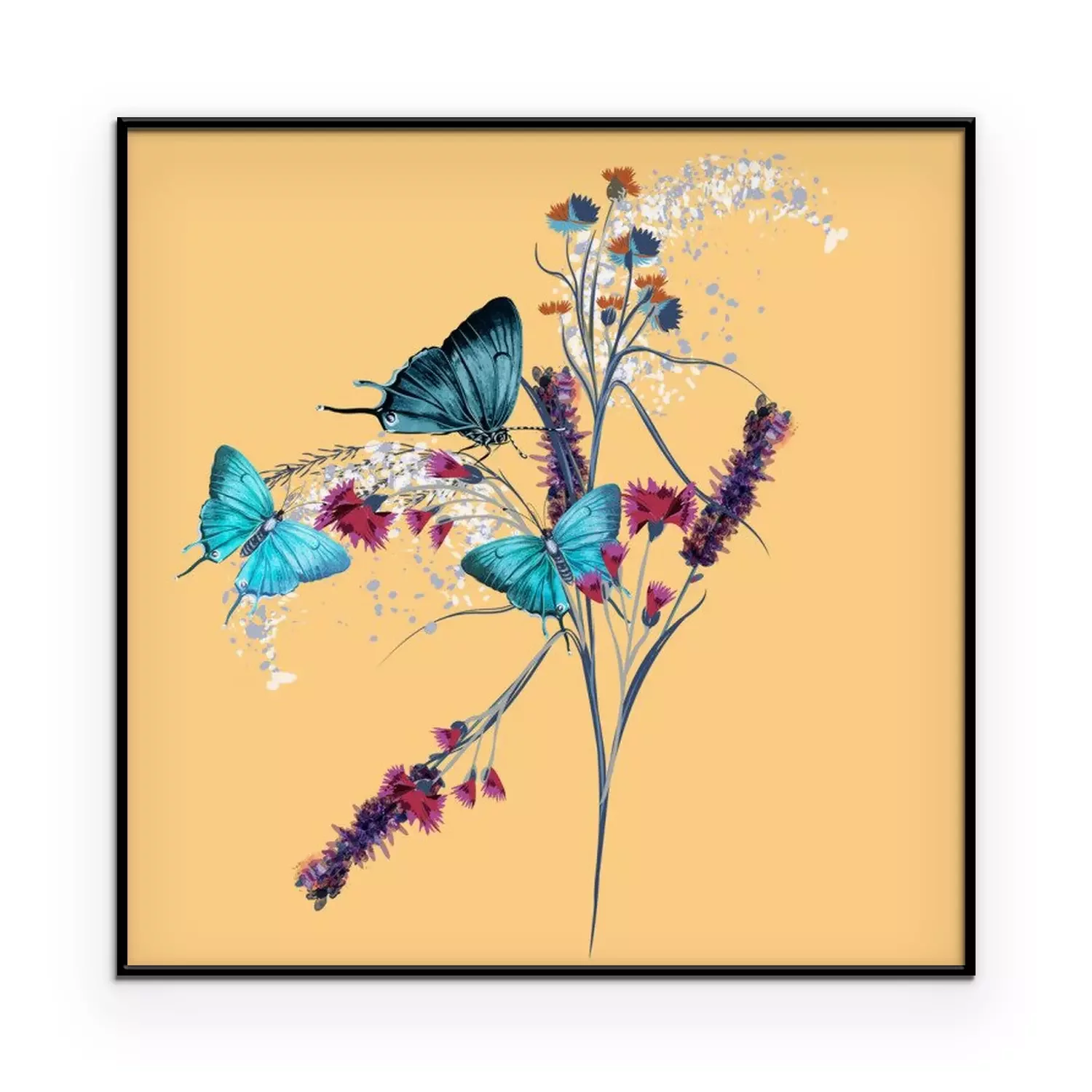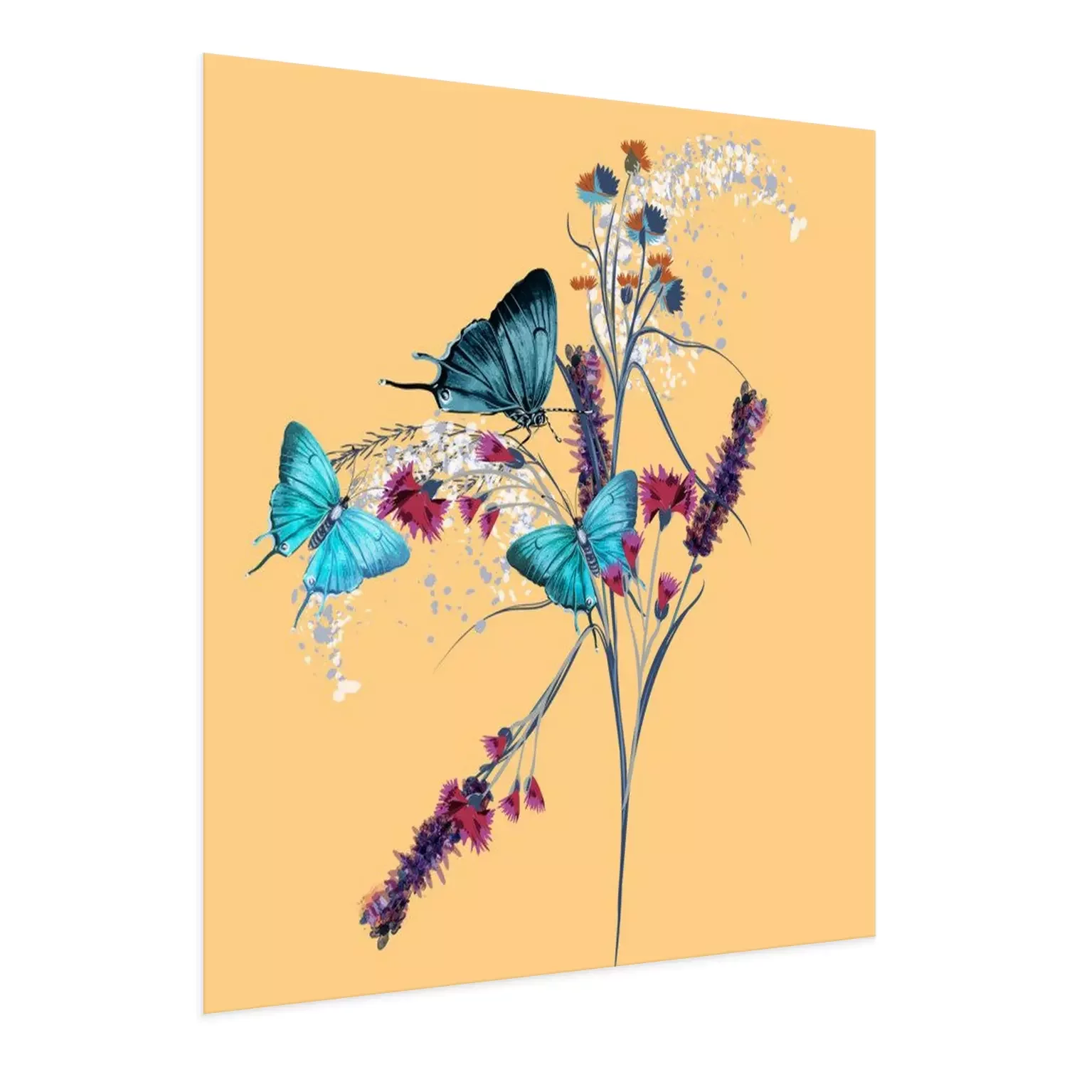 Poster : Papillons bleus et un brin de fleurs