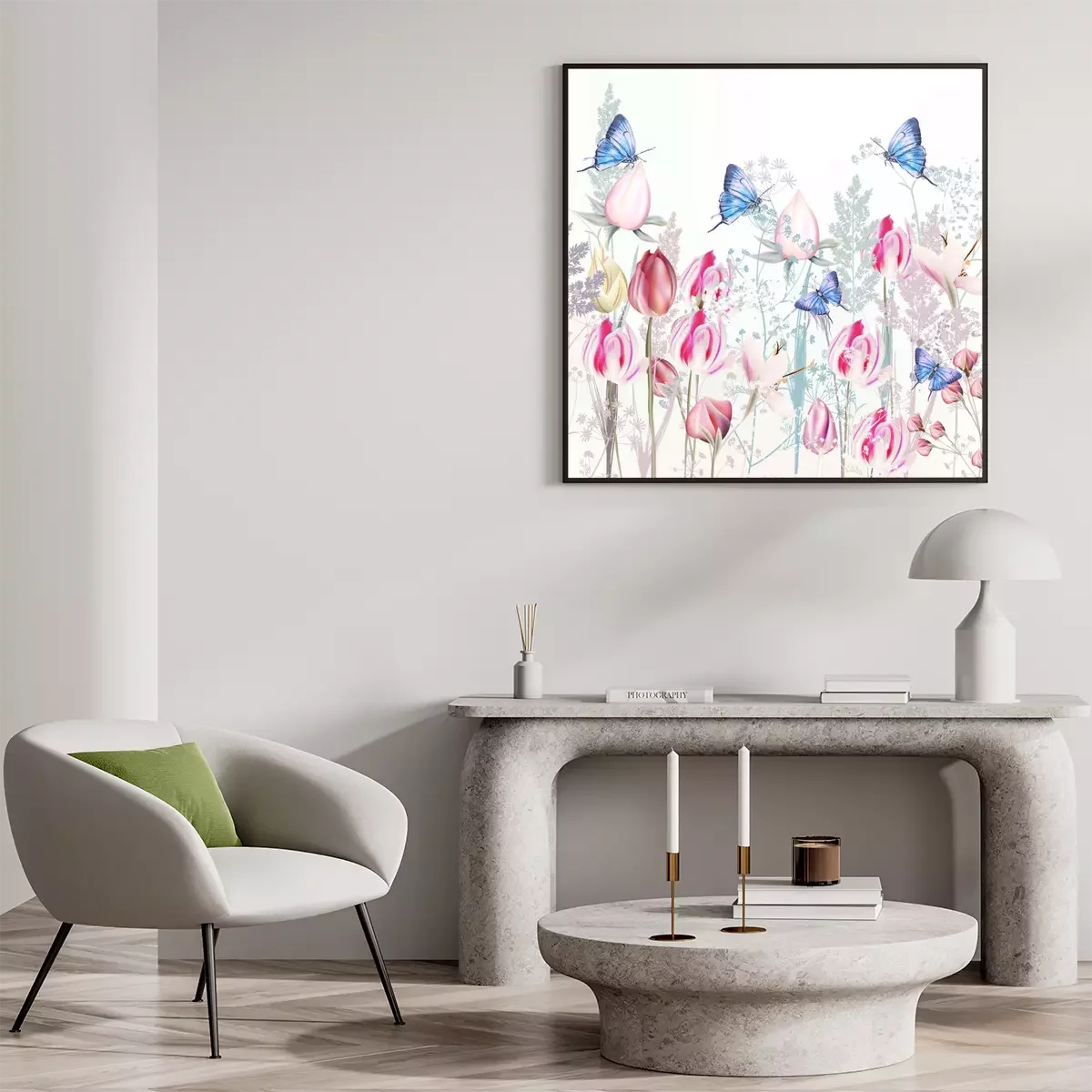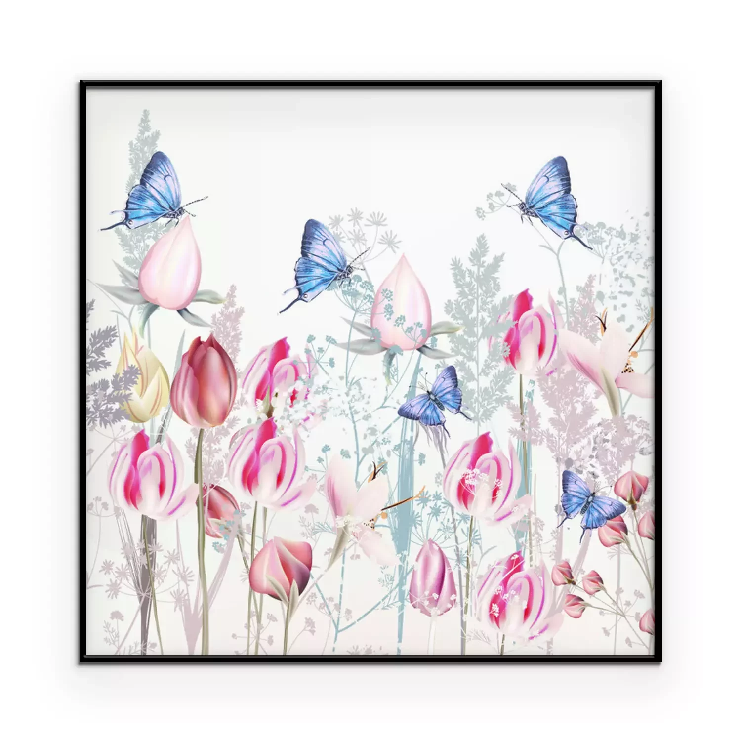 Beautiful vector field flowers illustration with plants, florals and butterflies