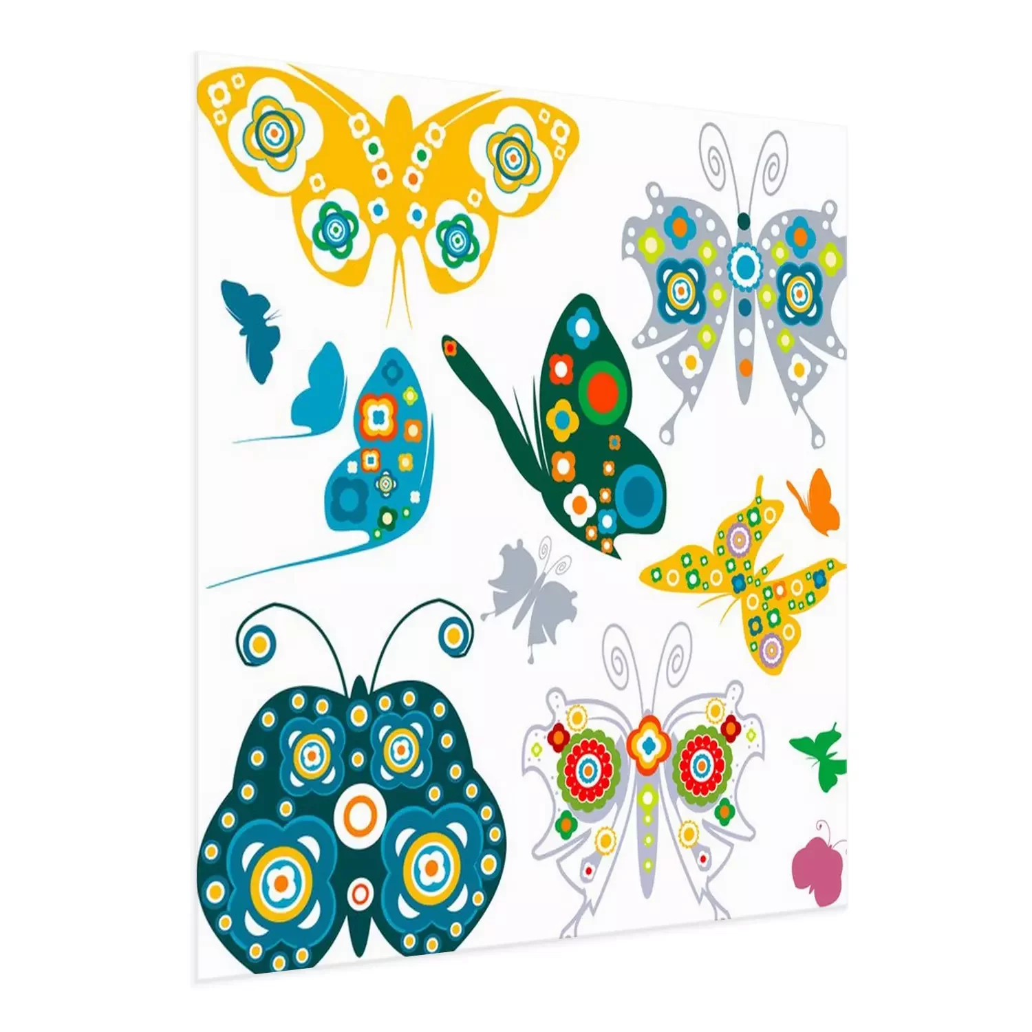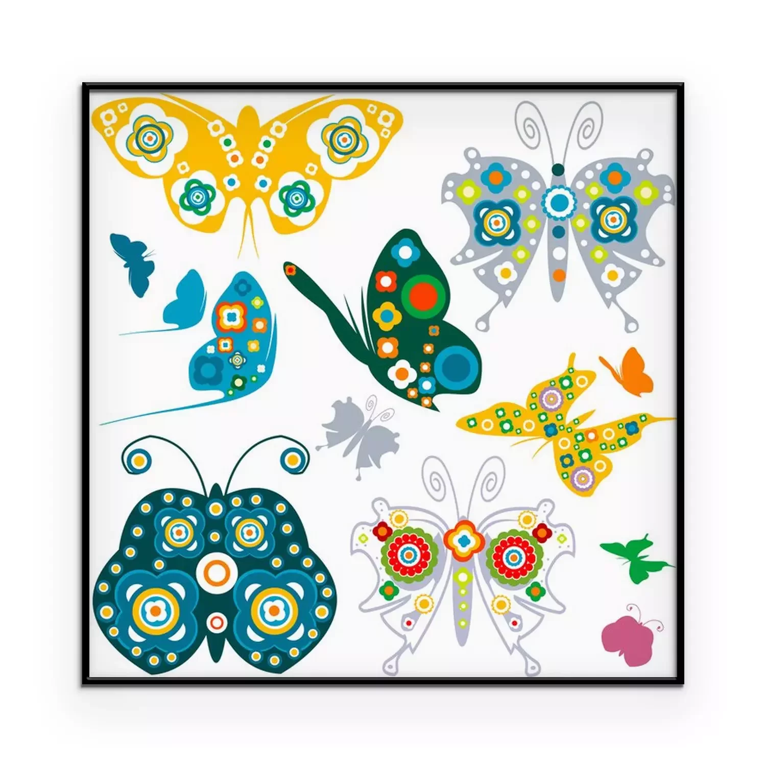 Poster : Papillons multicolores avec des fleurs sur les ailes