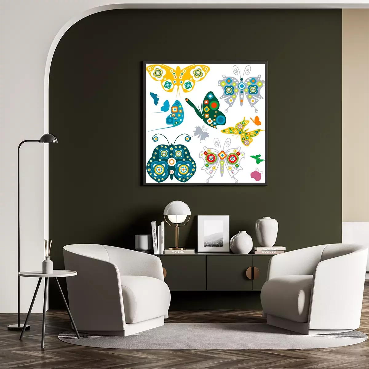 Poster  Papillons multicolores avec des fleurs sur les ailes