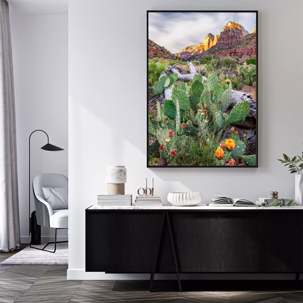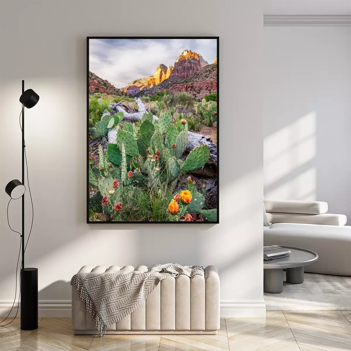 Poster : Parc national de Zion, désert cactus et falaises de grès