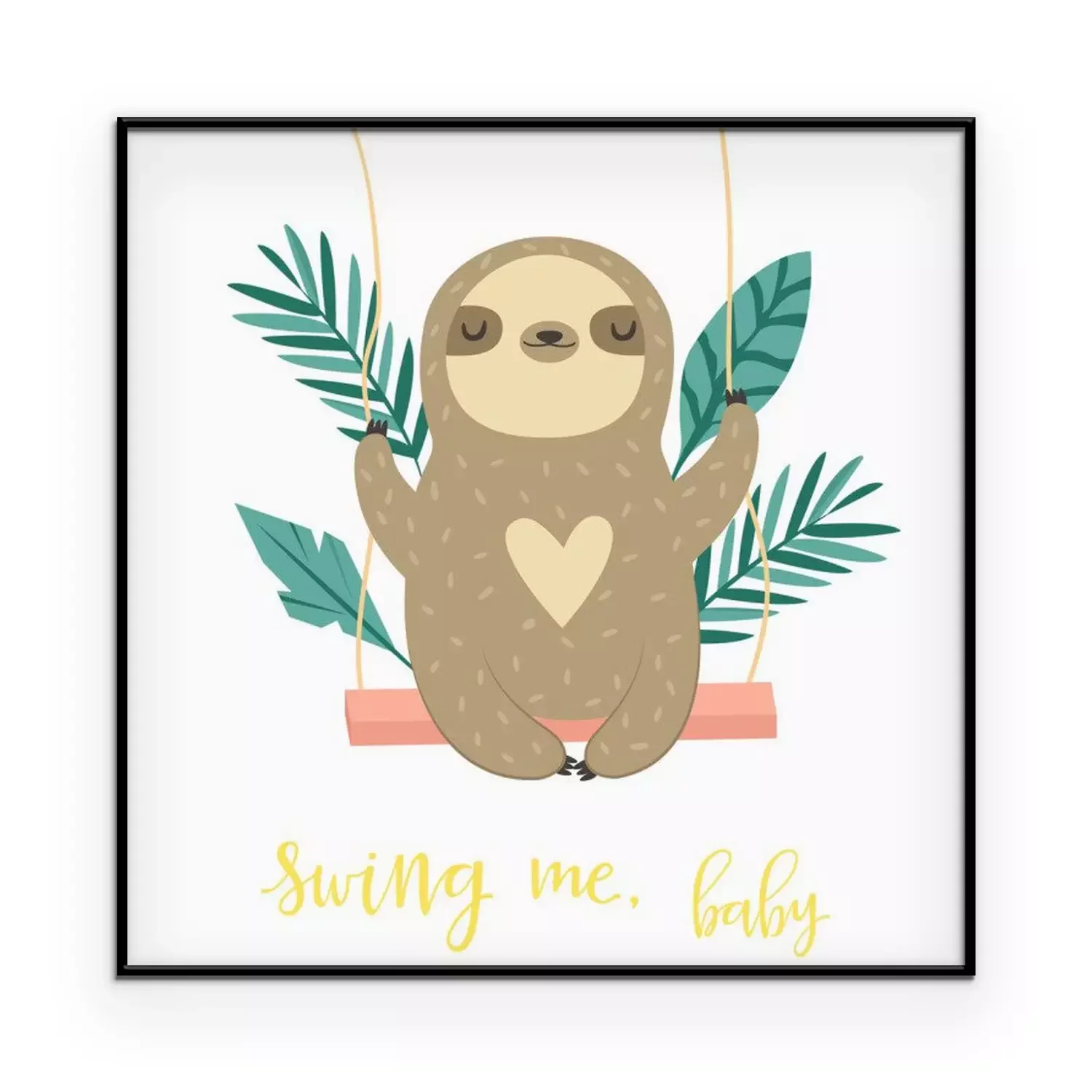 Poster  Paresseux se balançant sur une balançoire sur fond de feuilles