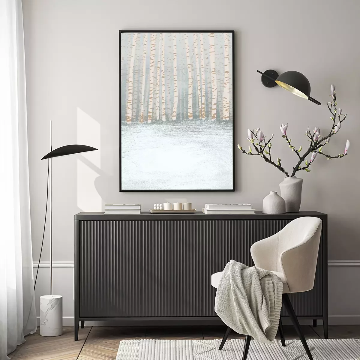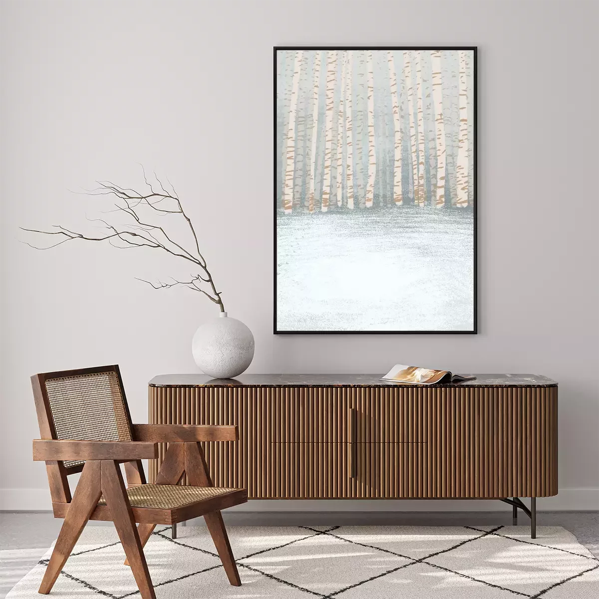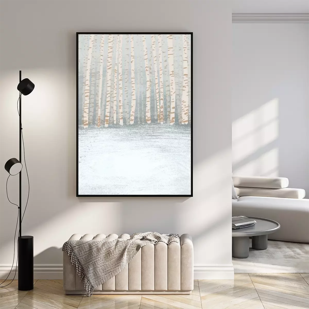 Poster  Pastel, couleur, Illustration, hiver, bouleau, forêt, fond, texture