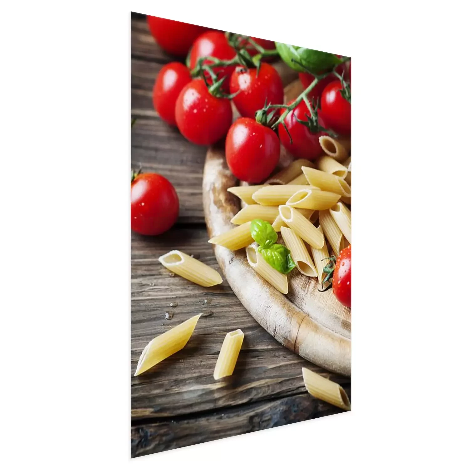 Poster  Pâtes d'intergal cru avec tomate fraîche et basilic