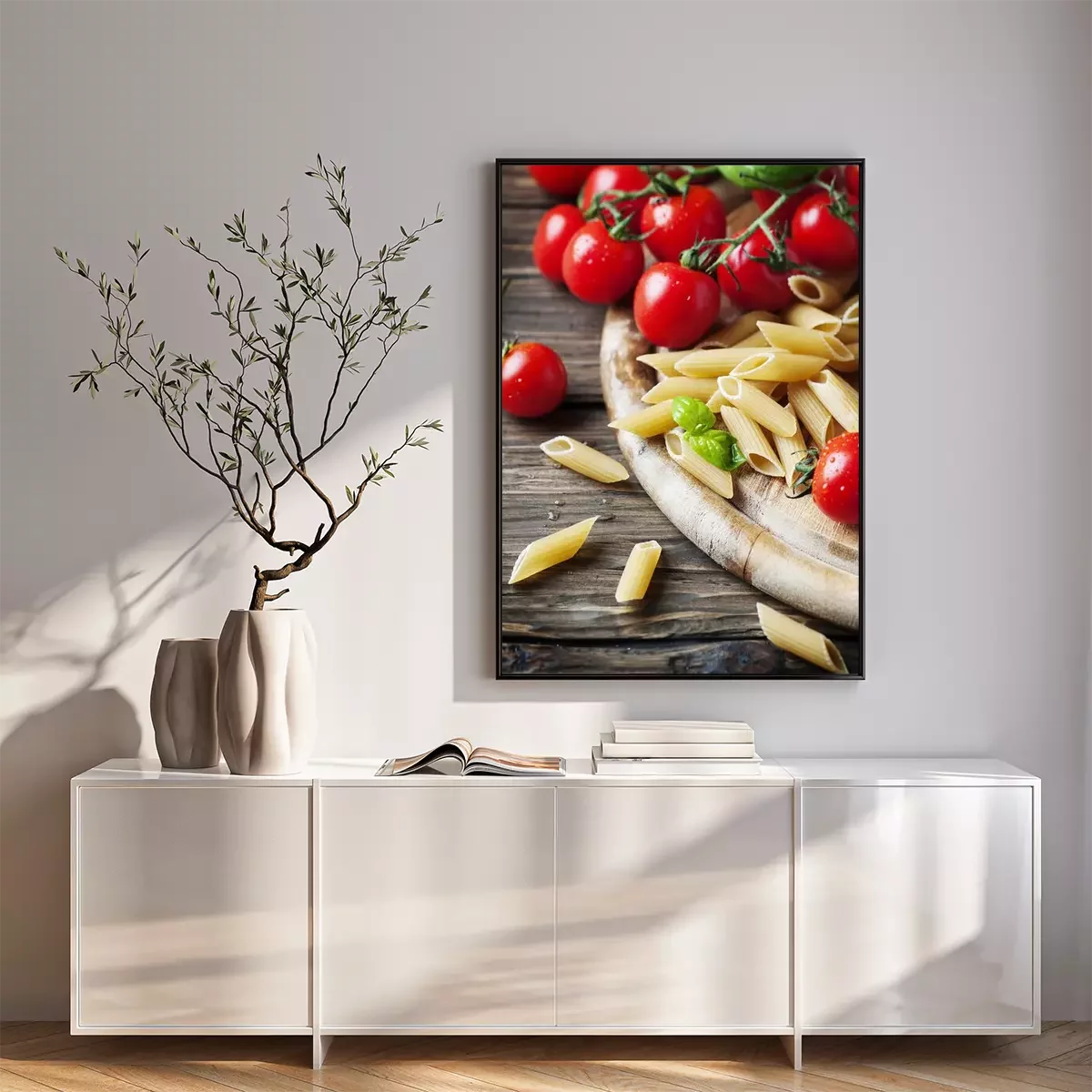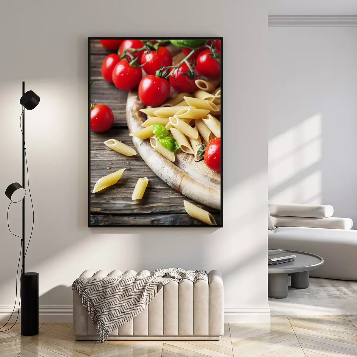 Poster : Pâtes d'intergal cru avec tomate fraîche et basilic