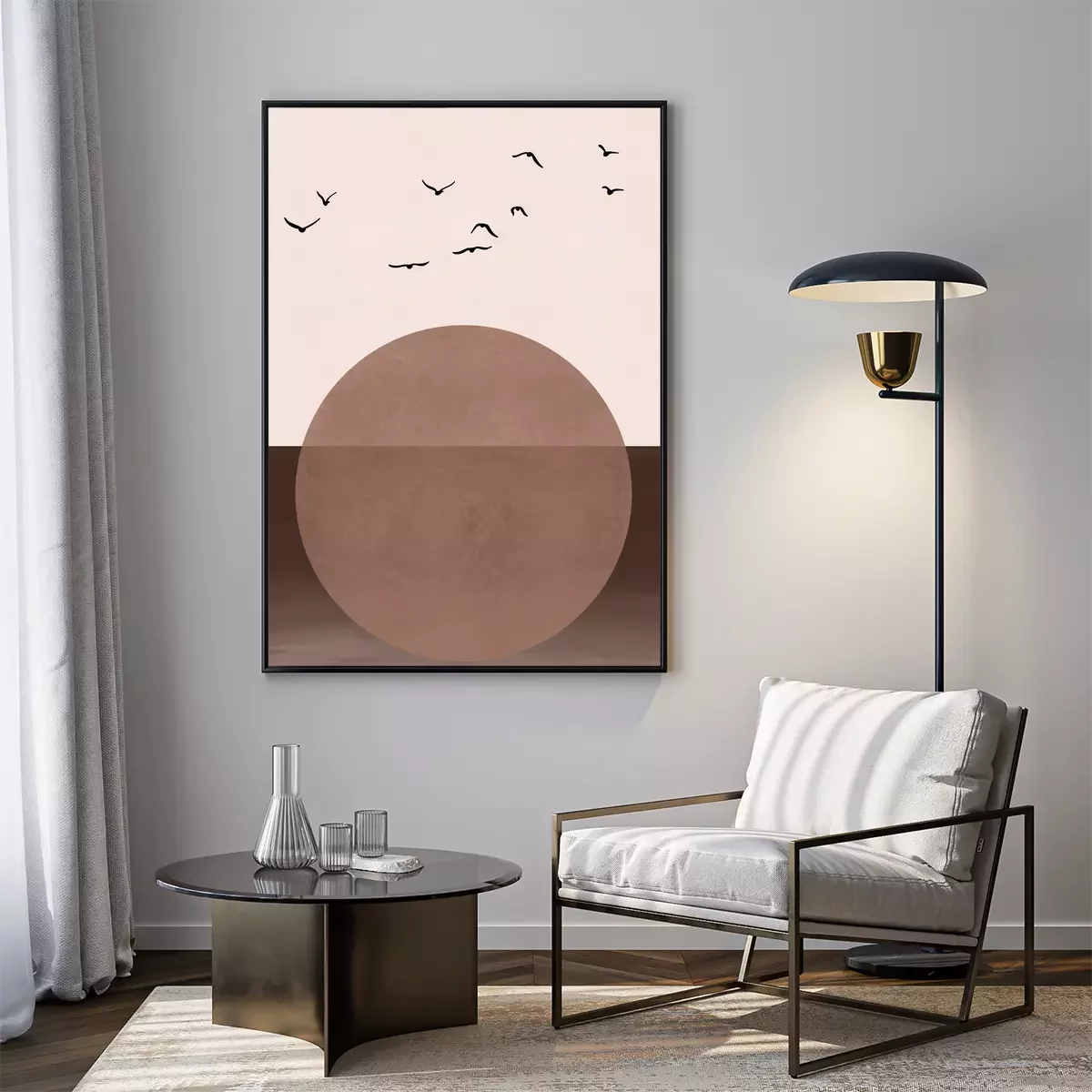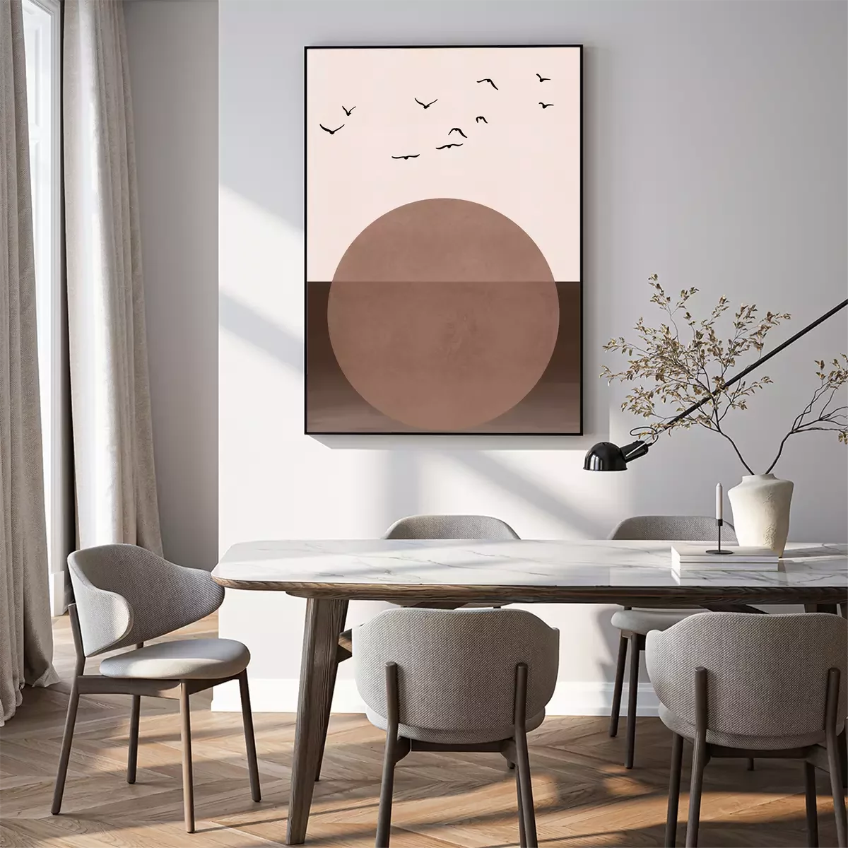 Poster : Paysage avec coucher de soleil aux couleurs moka mousse