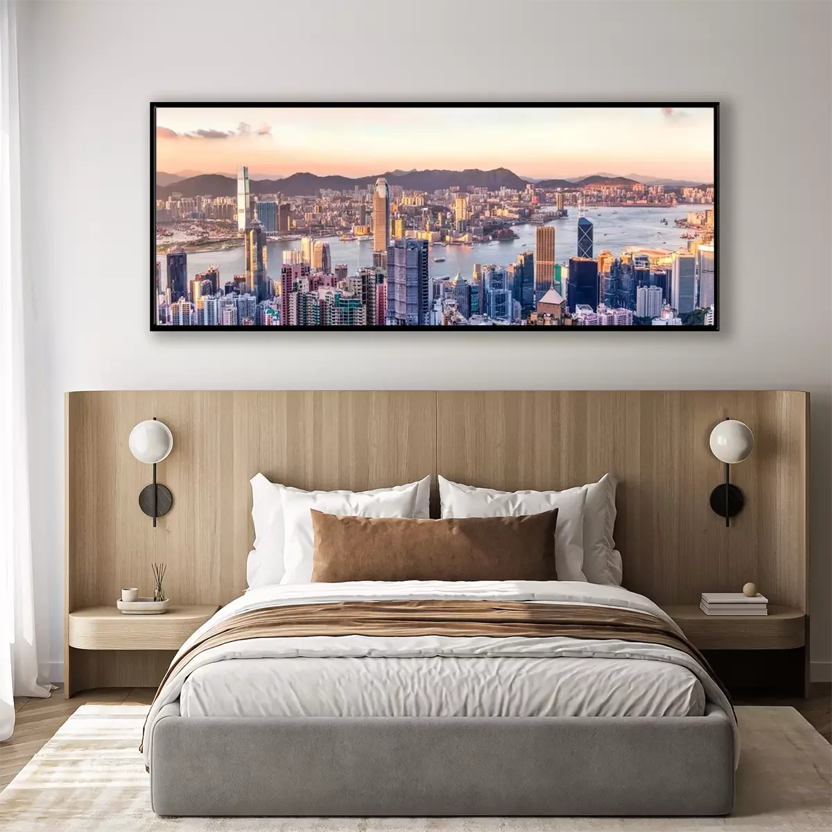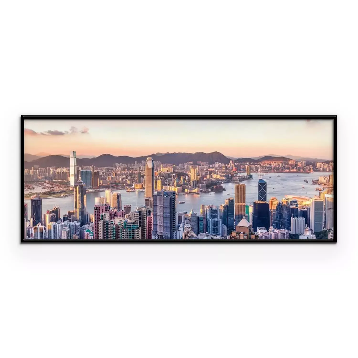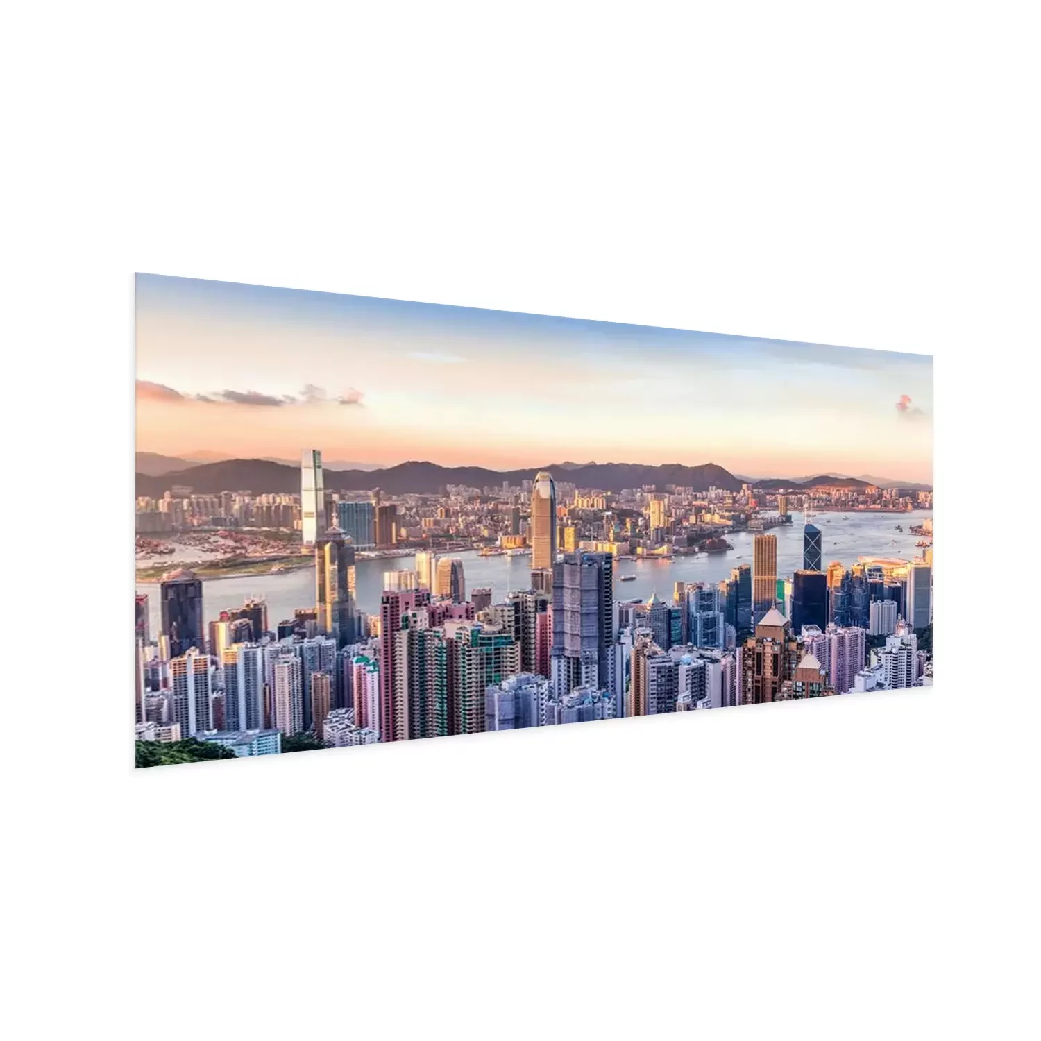 Poster : Paysage avec coucher de soleil et gratte-ciel