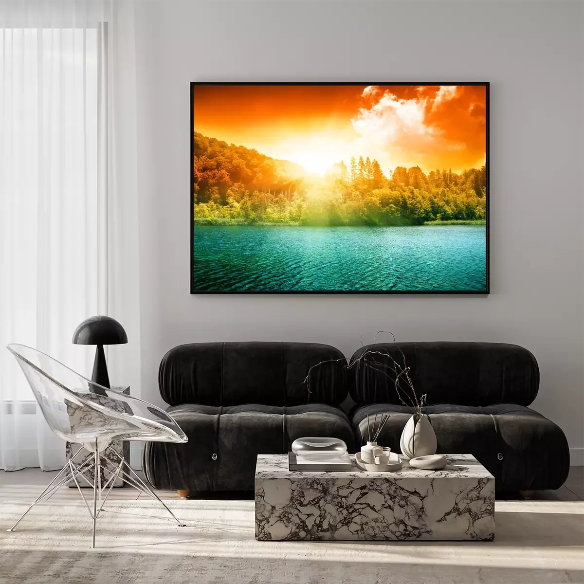 Poster : Paysage coloré de lac et de forêt