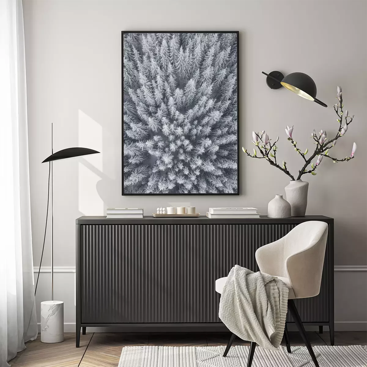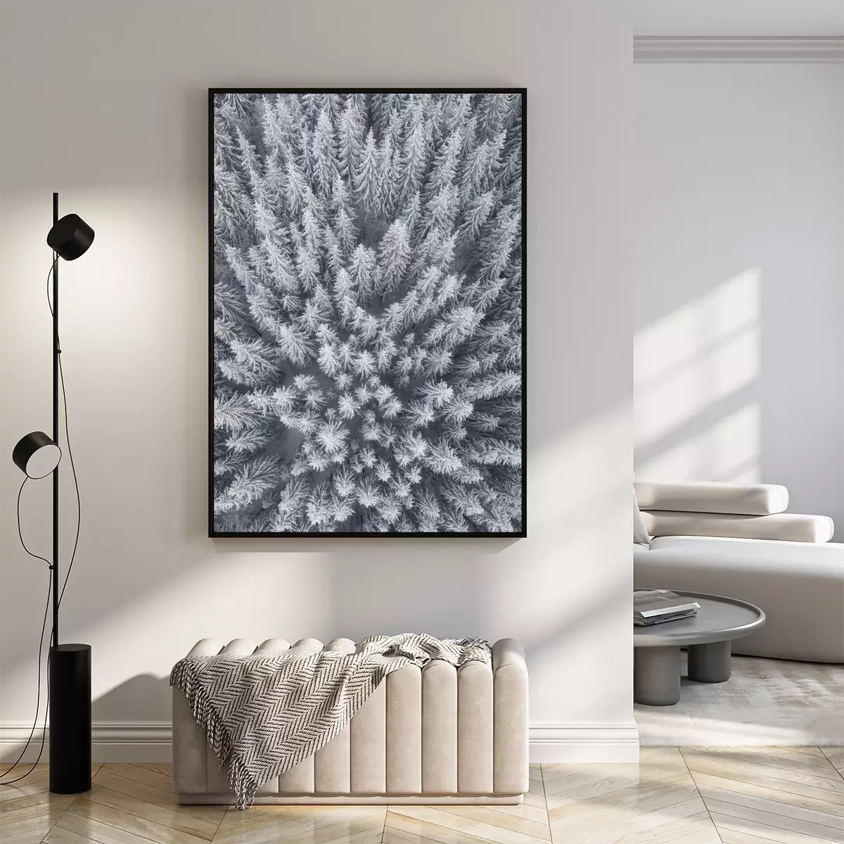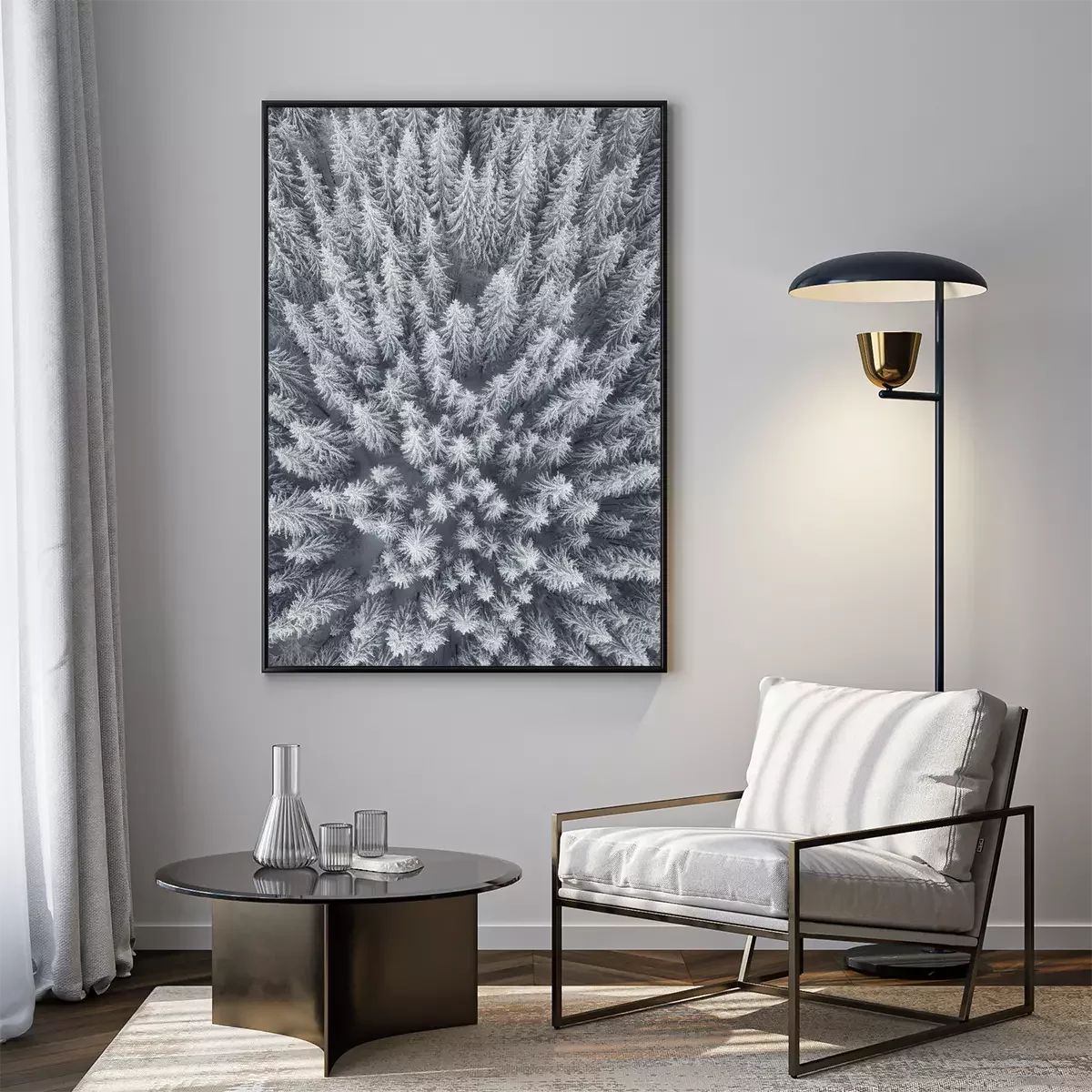 Poster  Paysage d'hiver de l'air. Forêt en arrière-plan