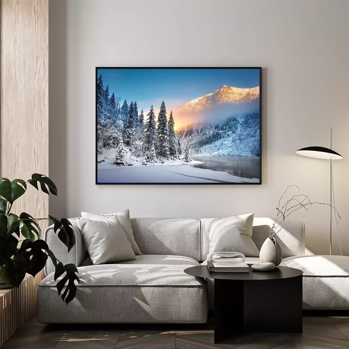 Poster  Paysage de montagne d'hiver avec un lac