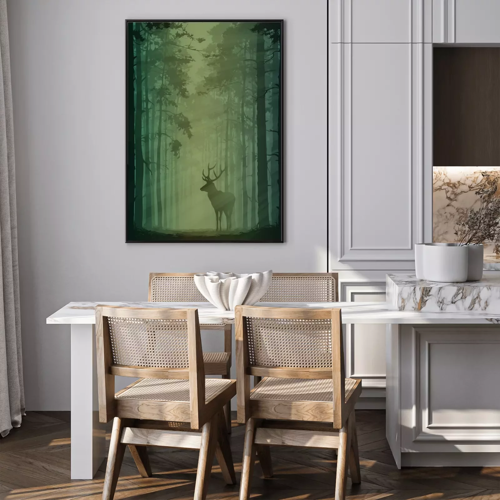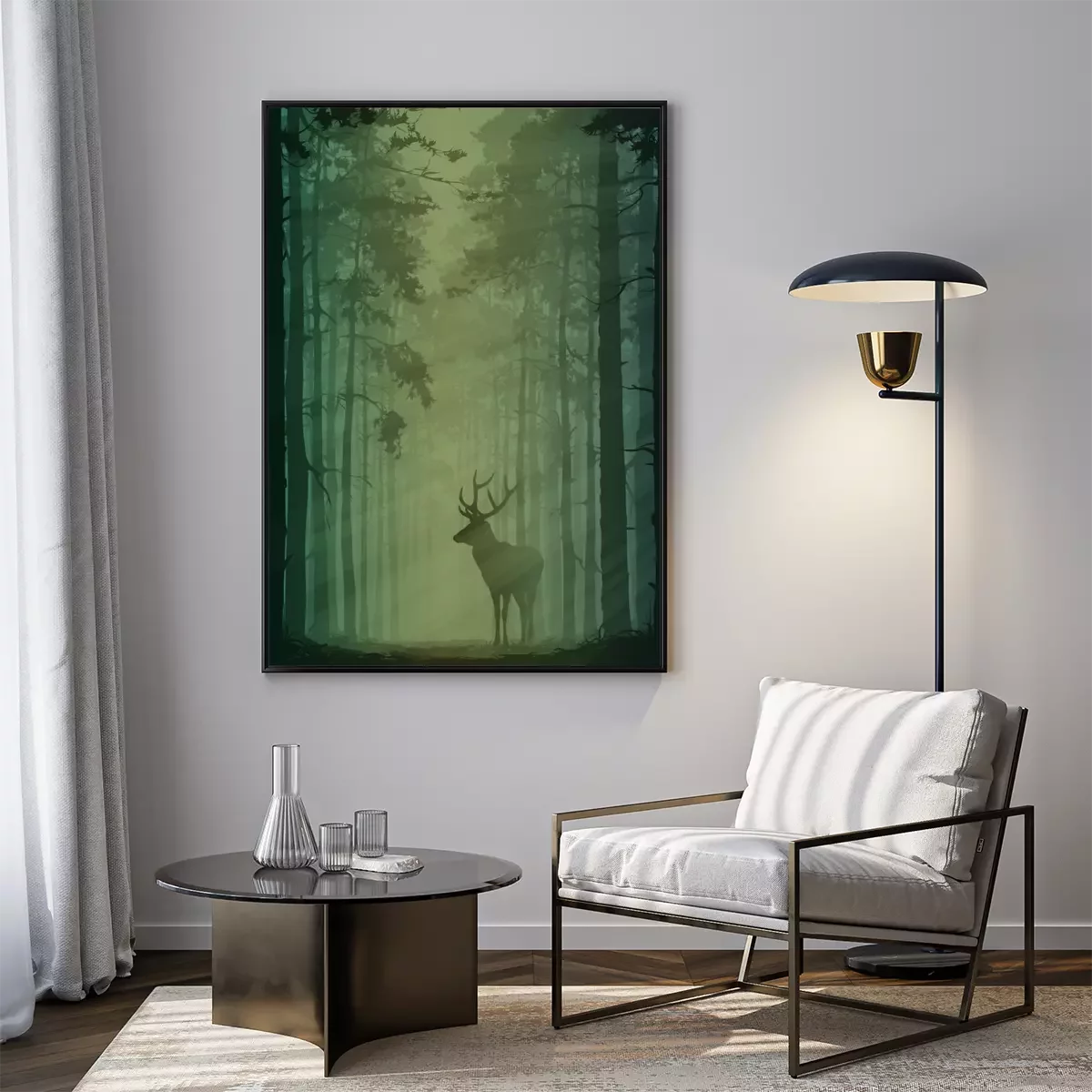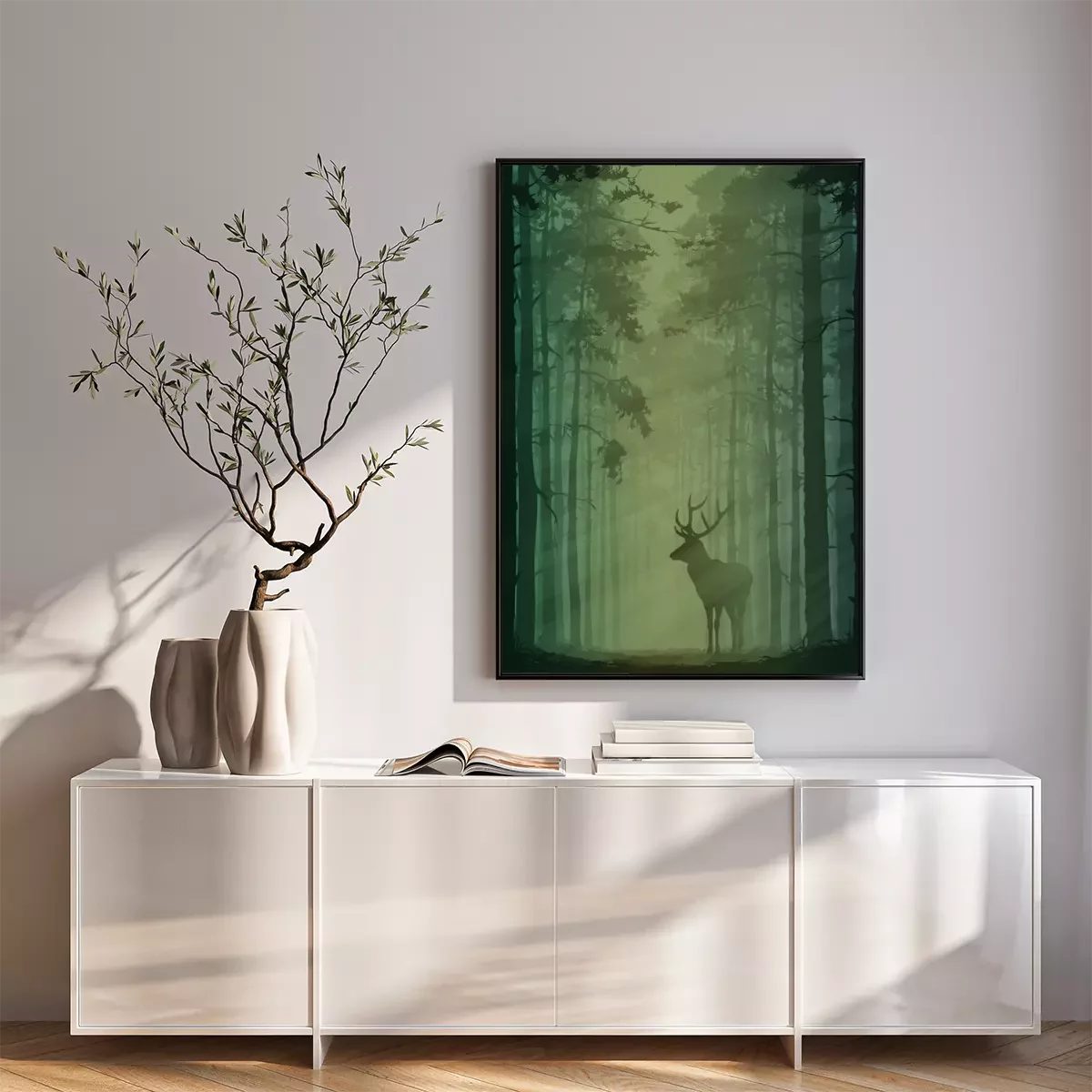 Poster : Paysage forestier avec des cerfs