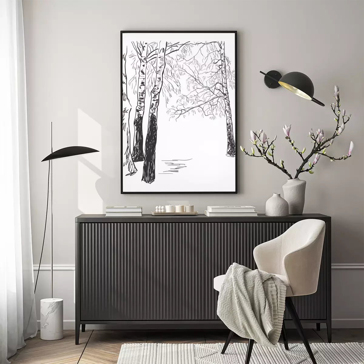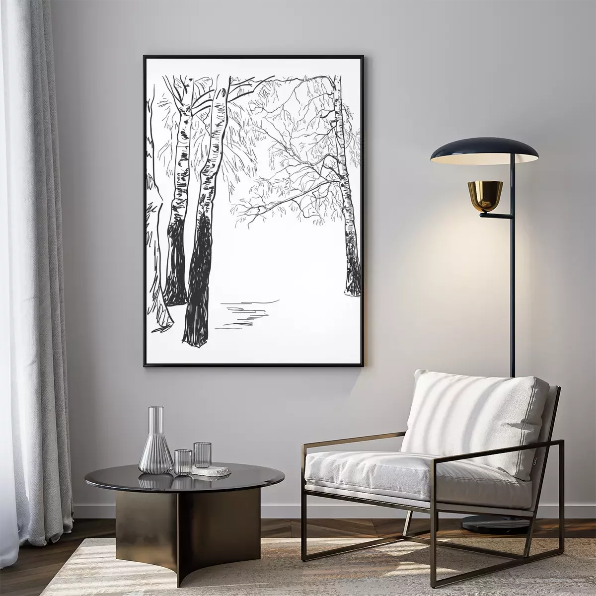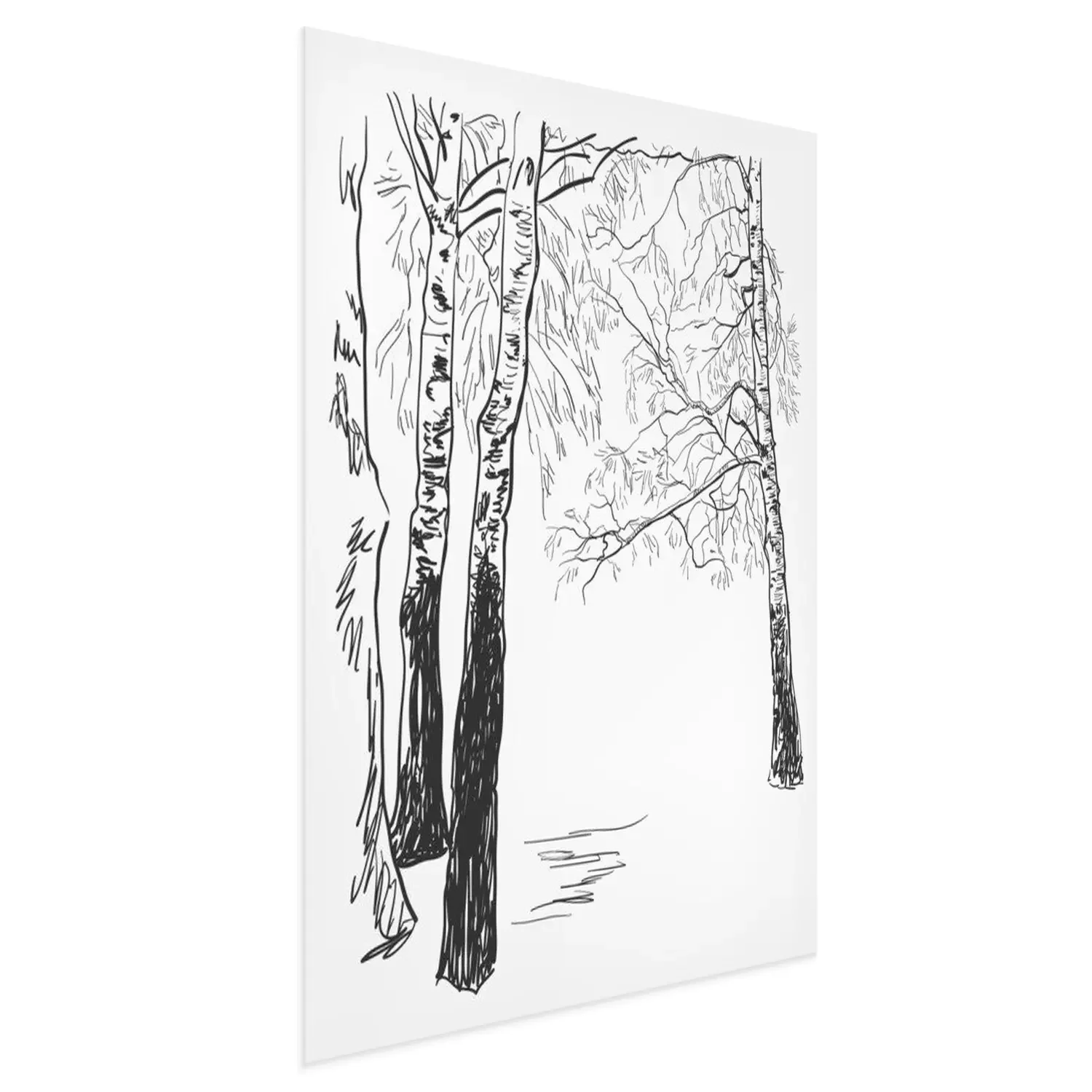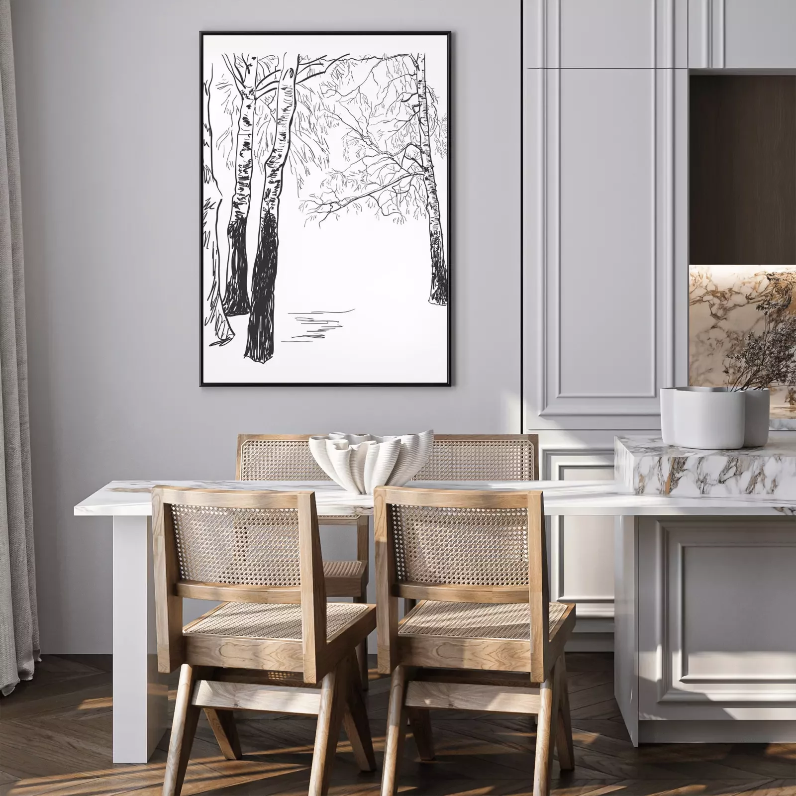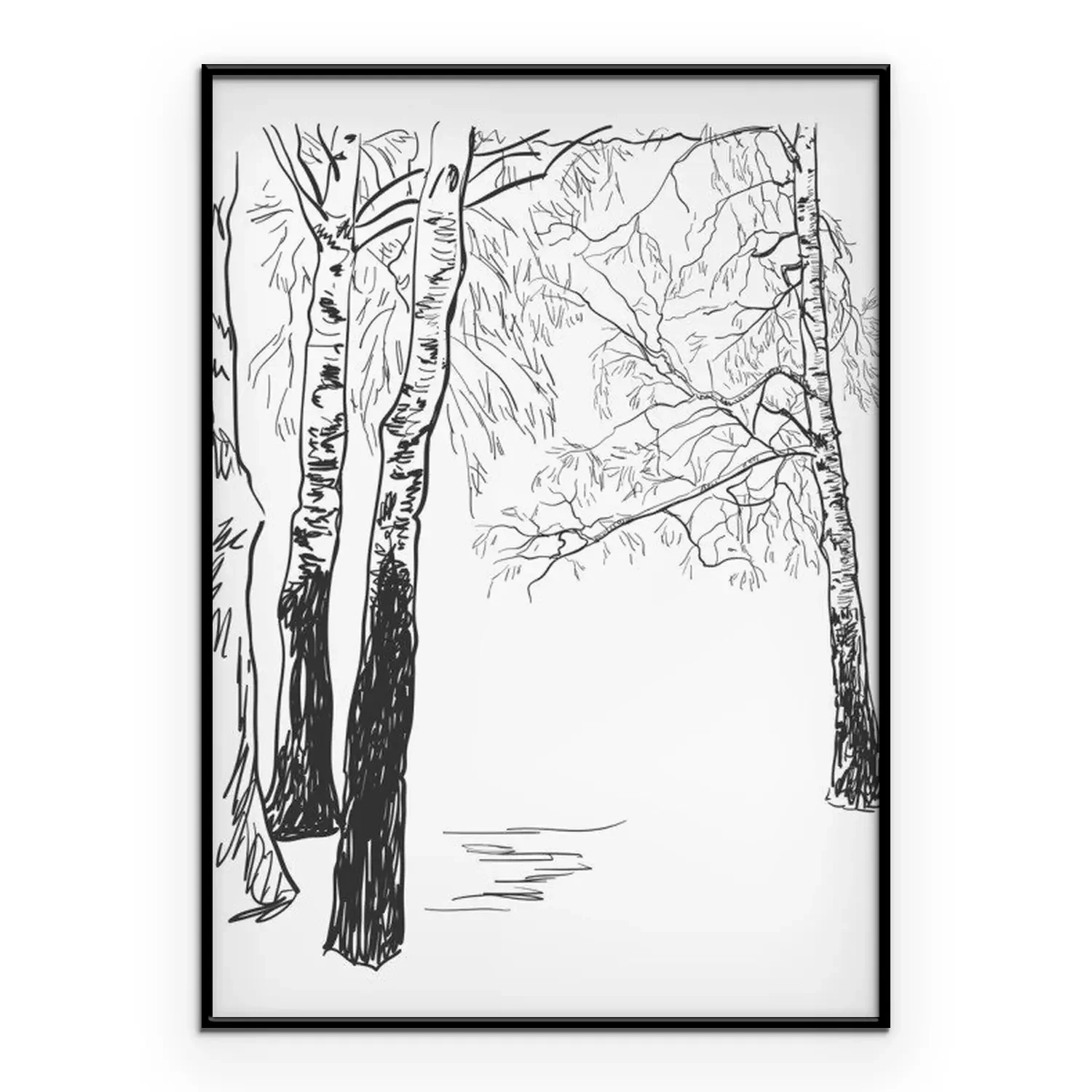 Poster  Paysage hivernal avec une forêt de bouleaux