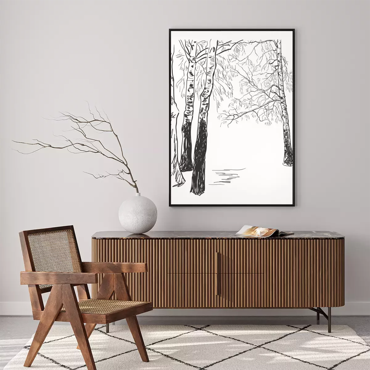 Poster : Paysage hivernal avec une forêt de bouleaux