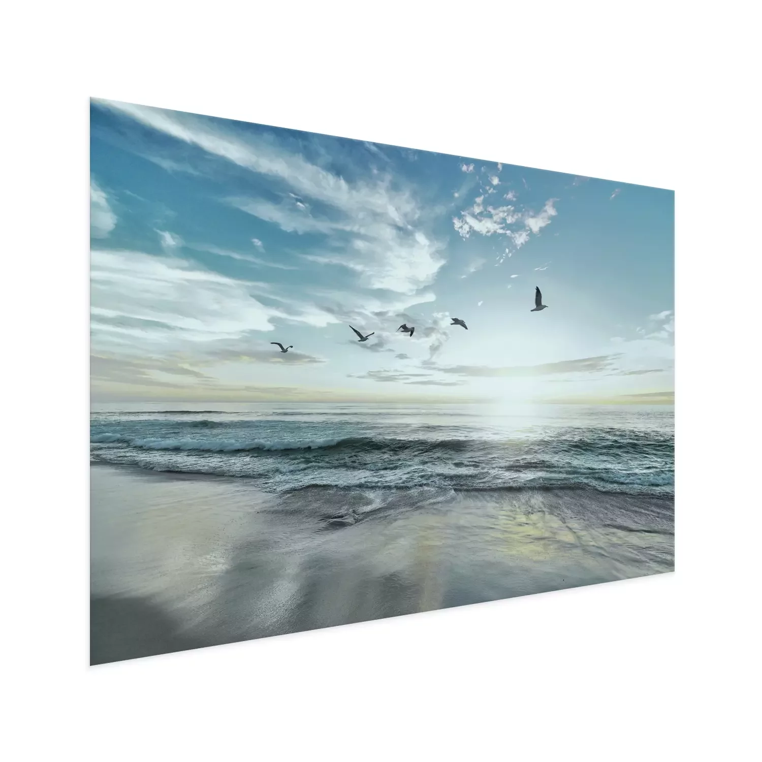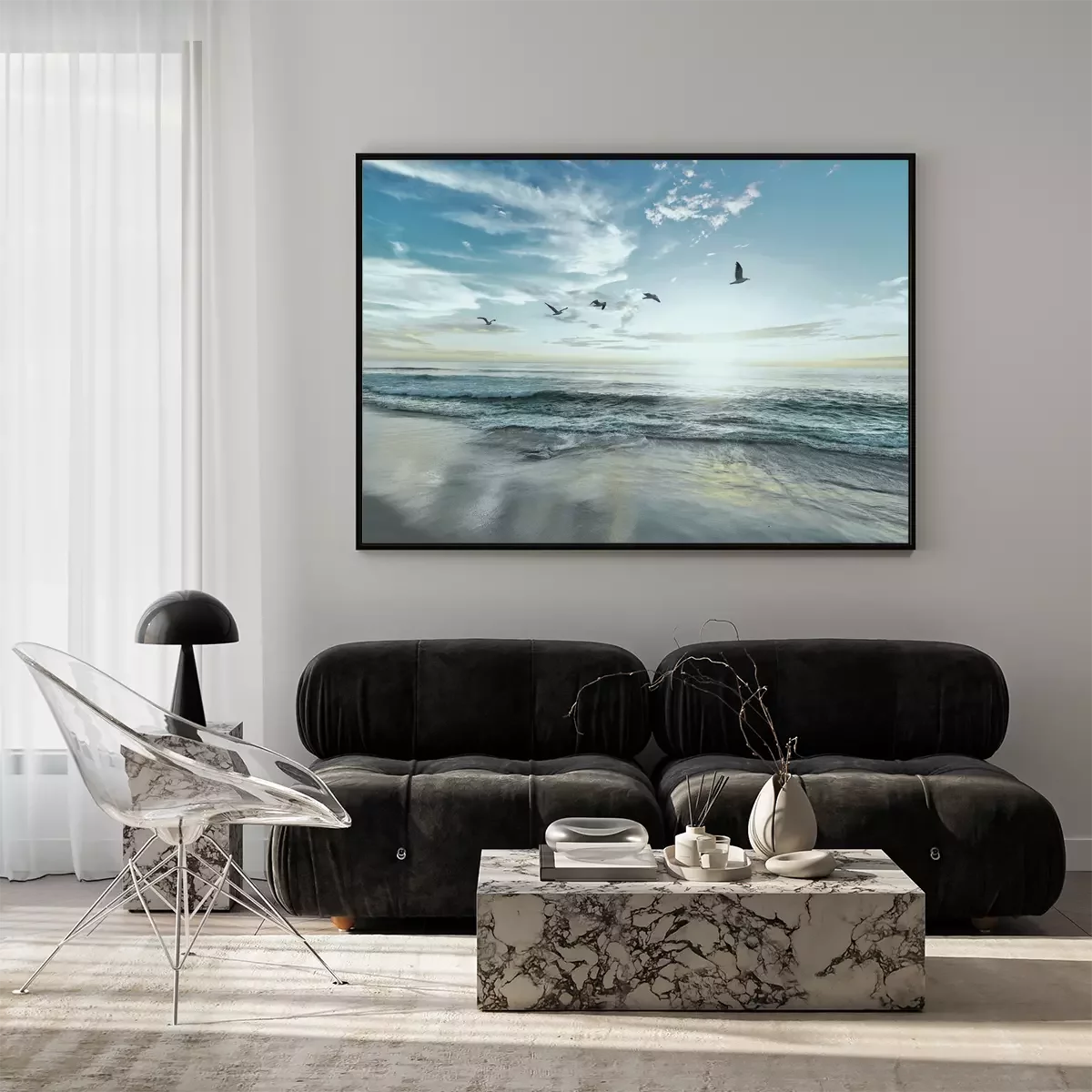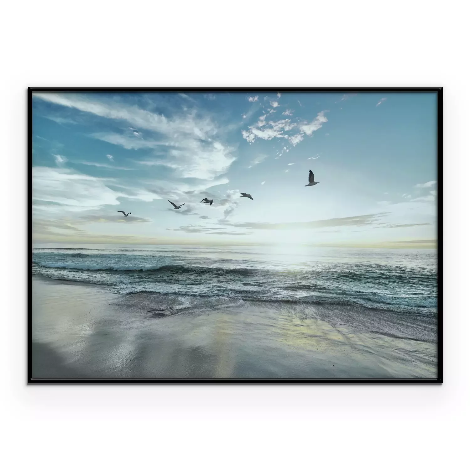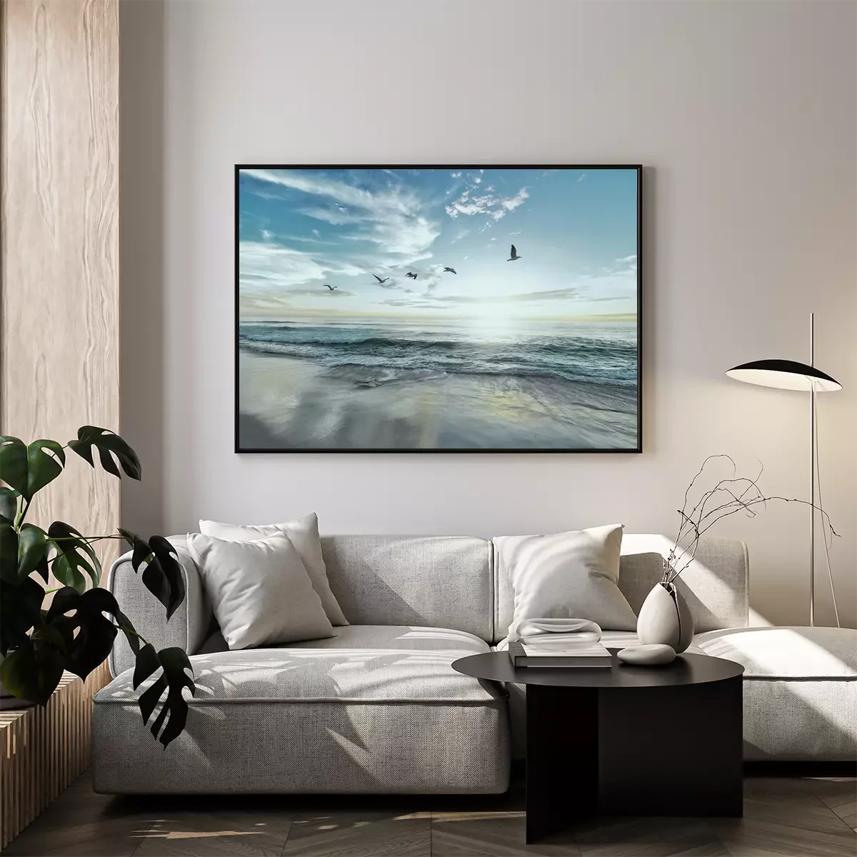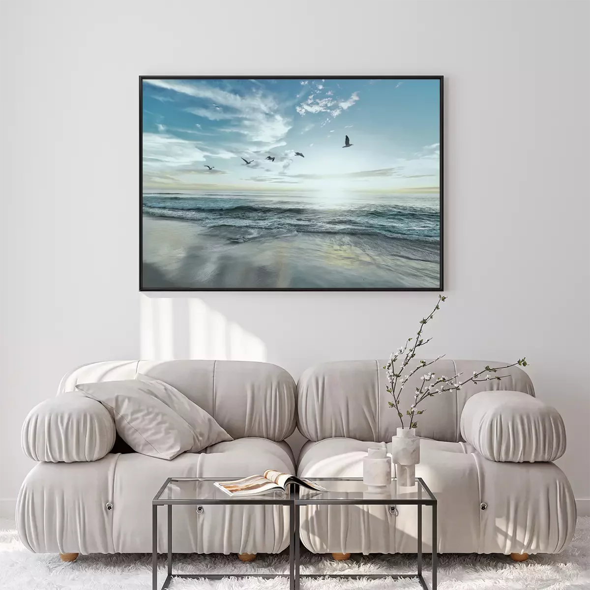 Poster : Paysage marin avec des mouettes au lever du soleil