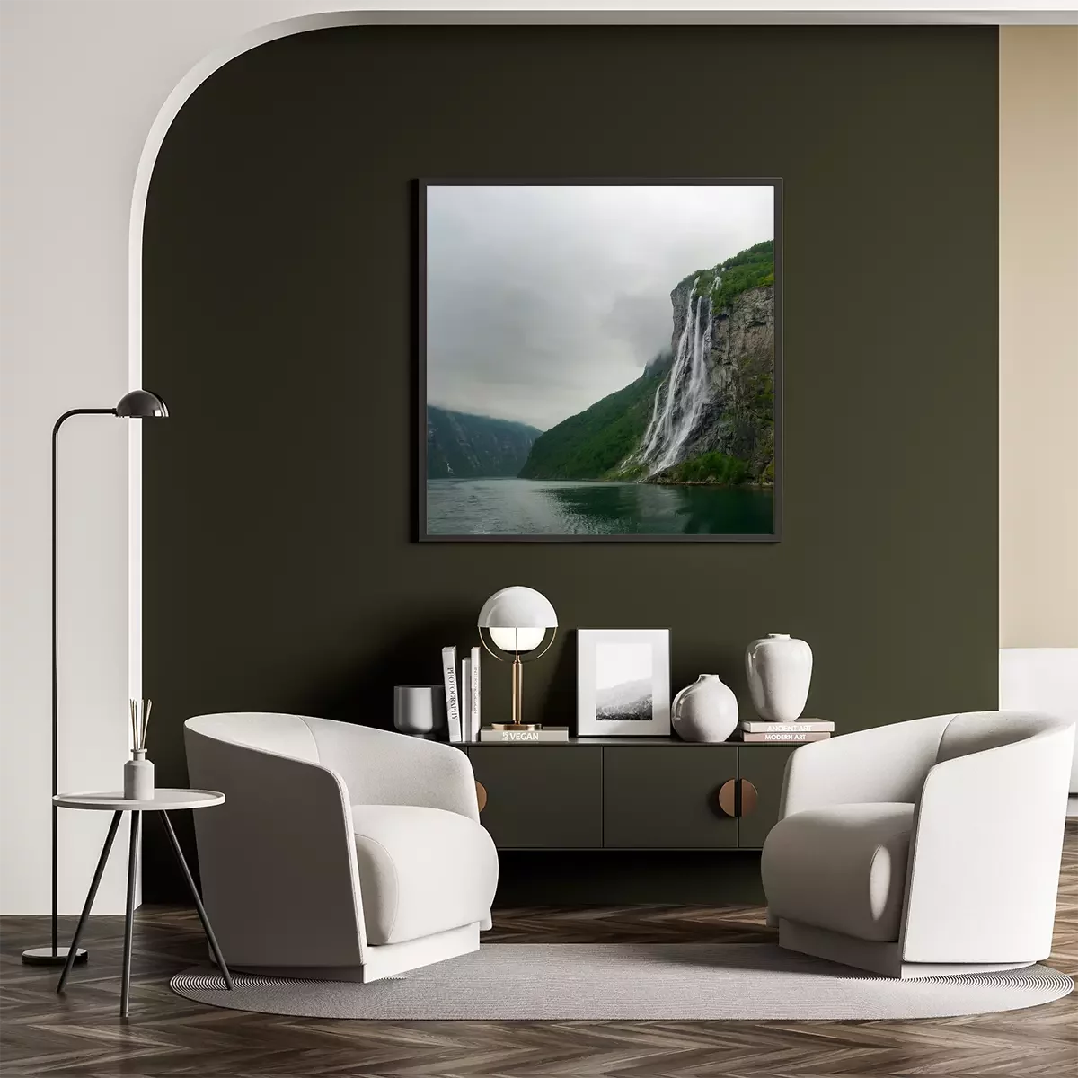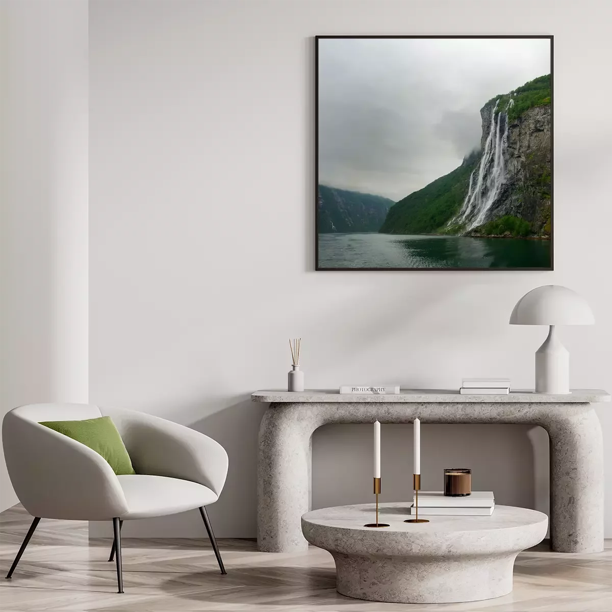 Poster : Paysage pluvieux avec cascade