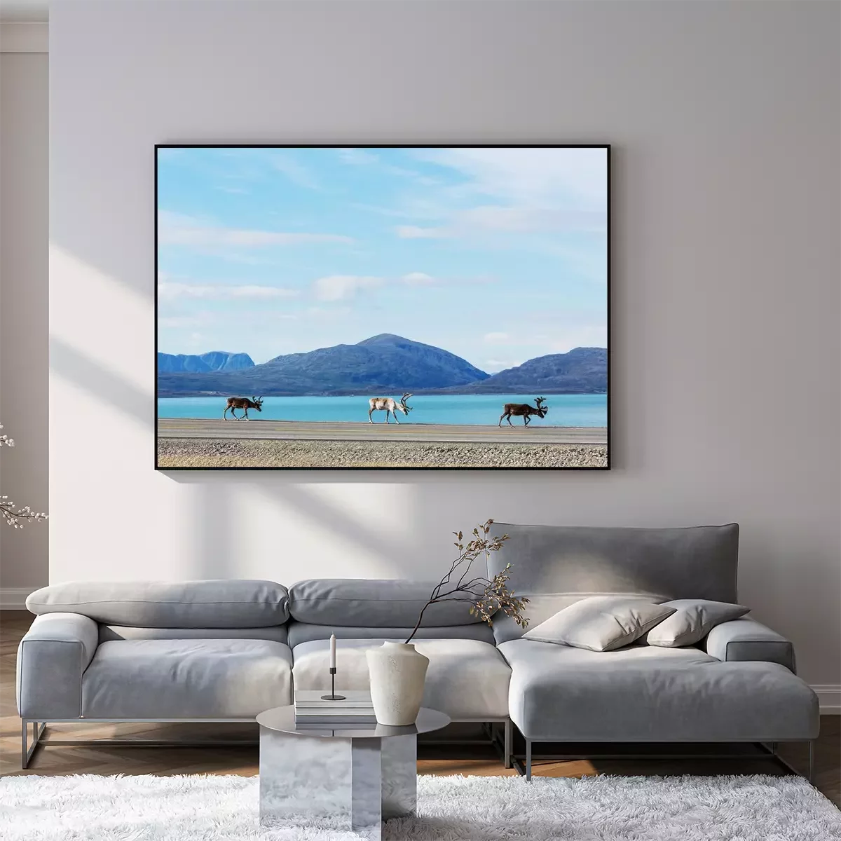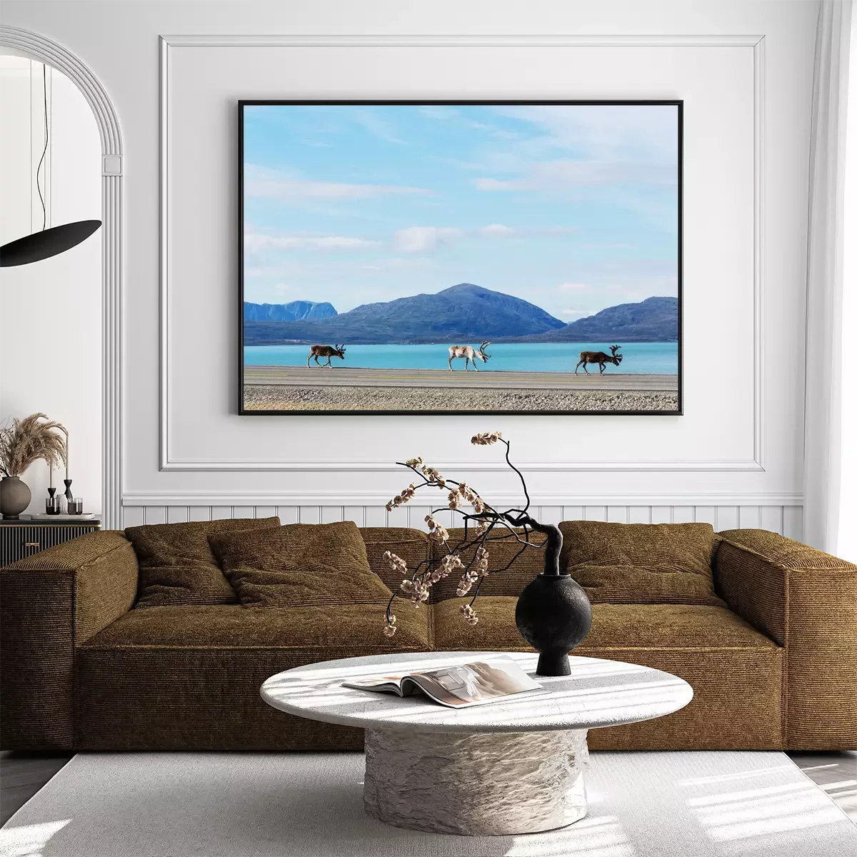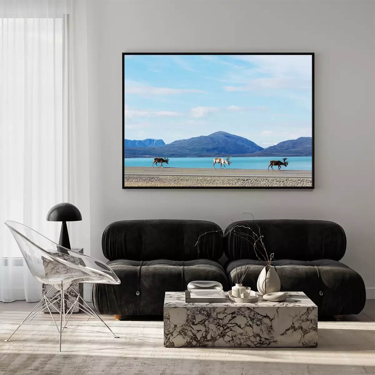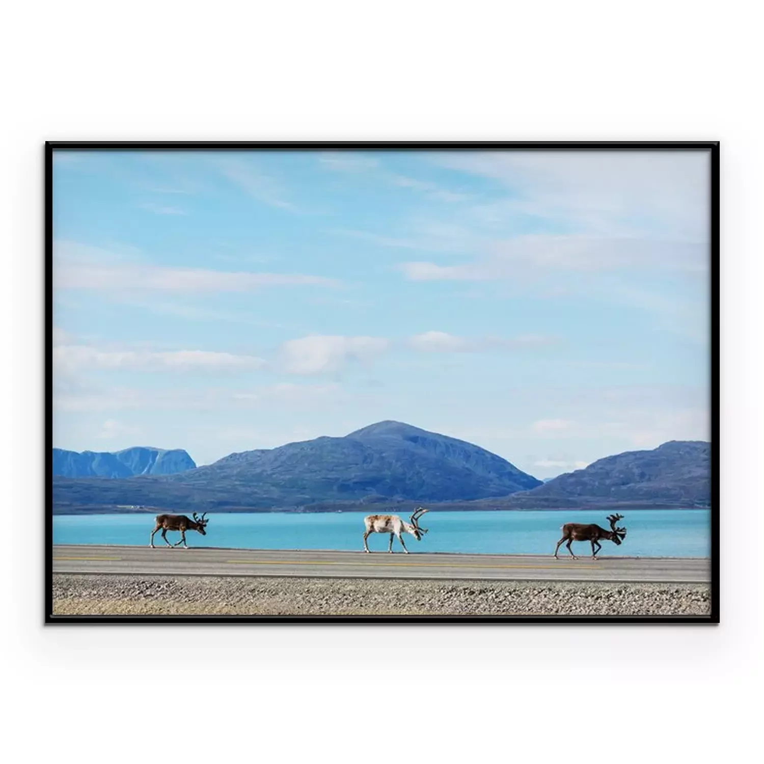 Poster : Paysage scandinave avec des cerfs sur la plage