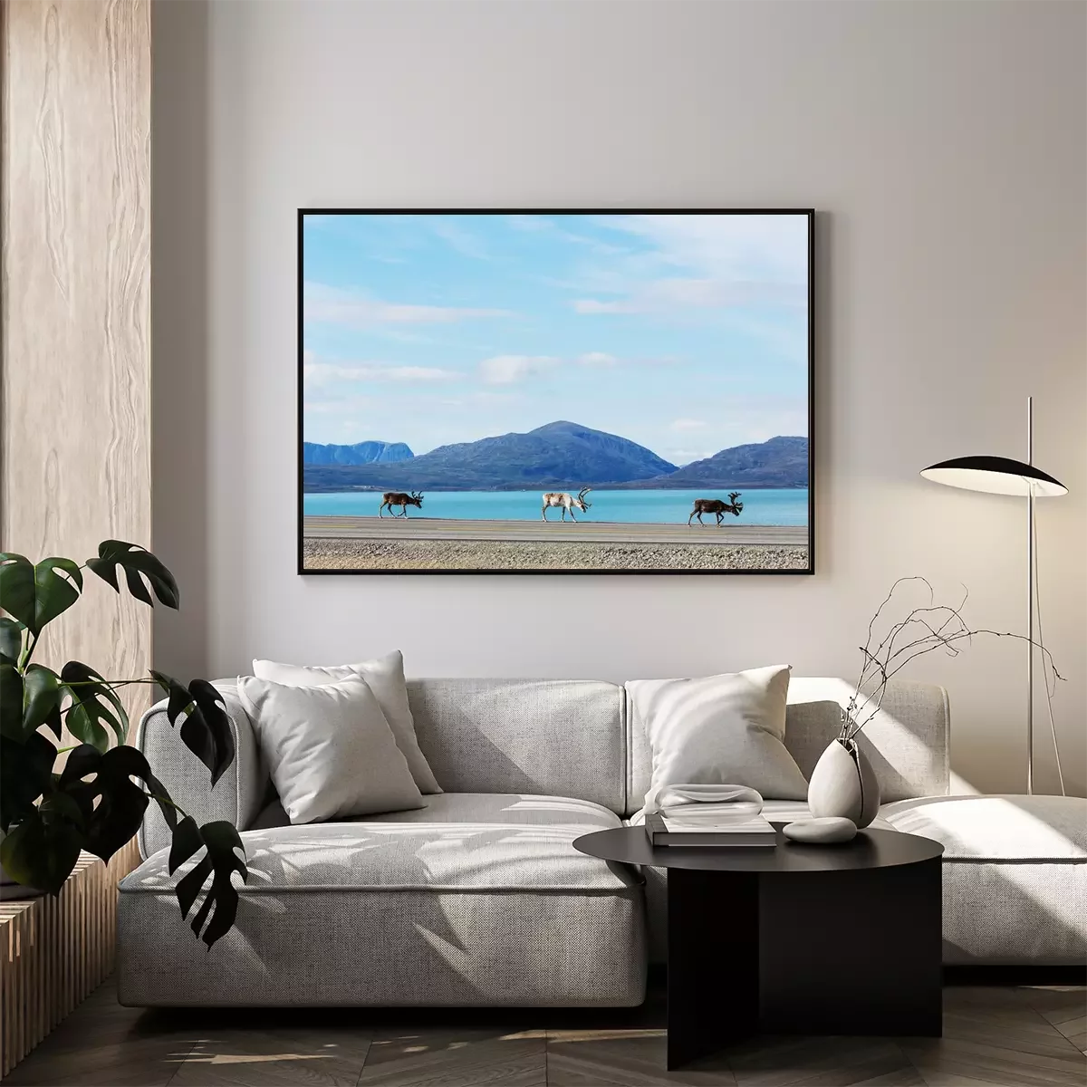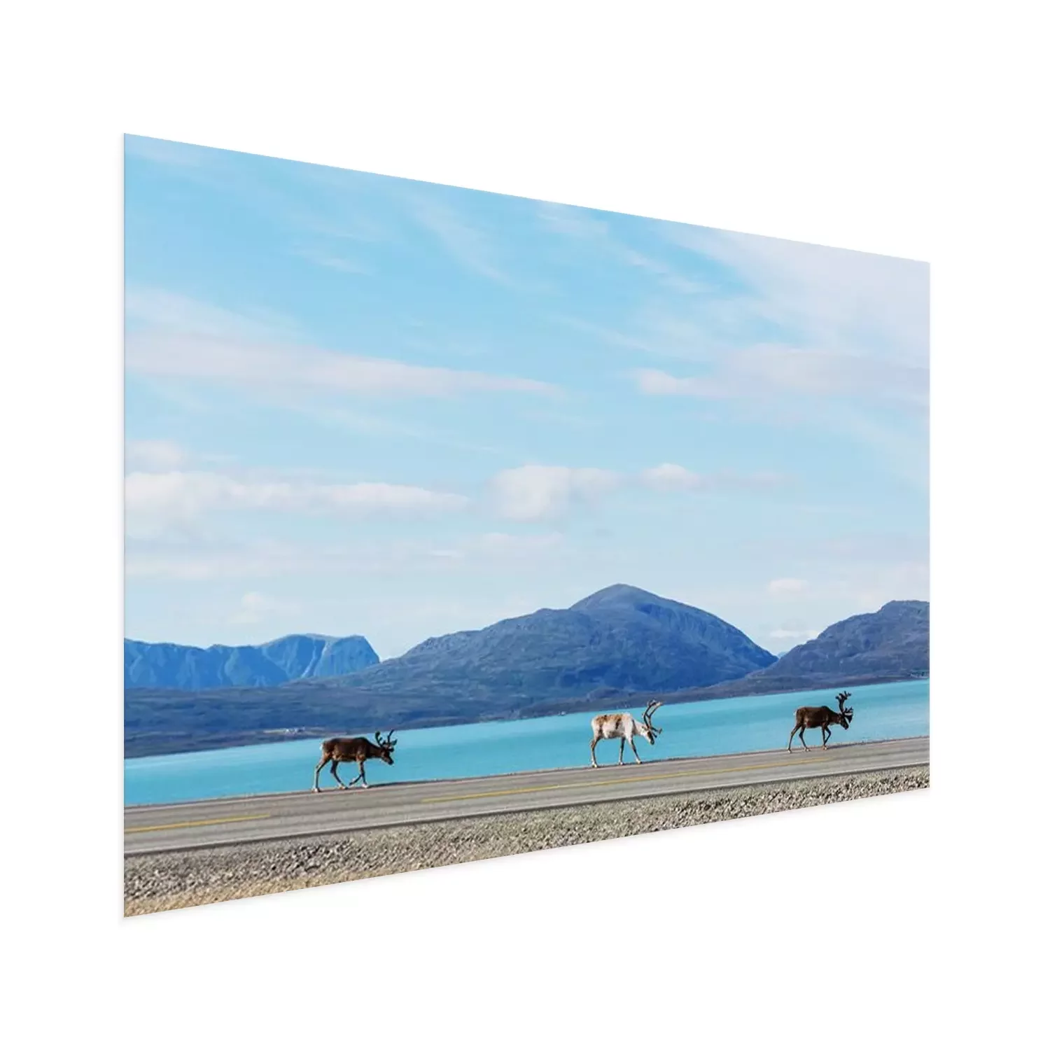 Poster  Paysage scandinave avec des cerfs sur la plage