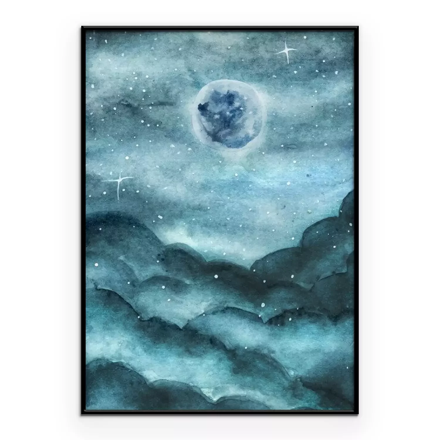 Poster : Paysage verdâtre à l'aquarelle avec la Lune