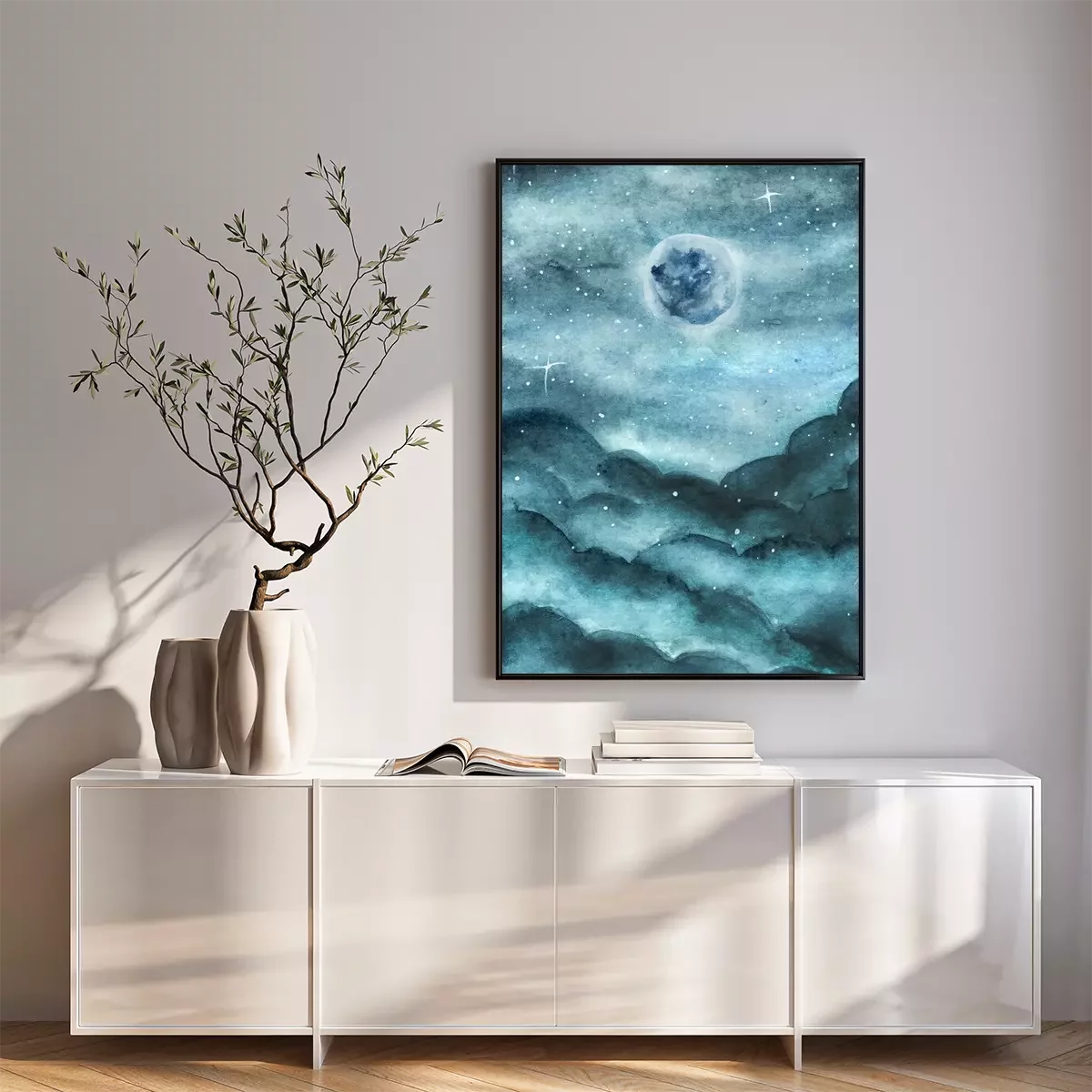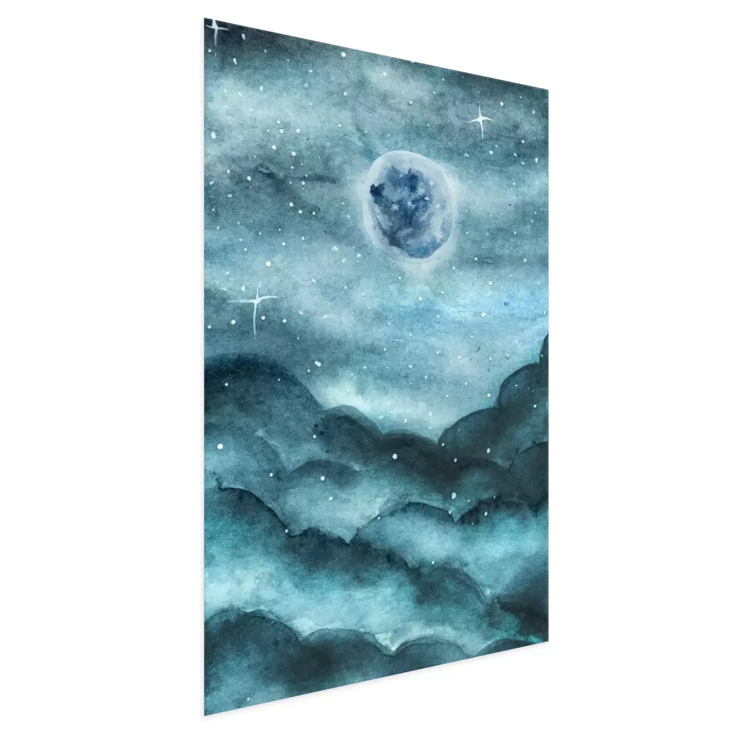 Poster  Paysage verdâtre à l'aquarelle avec la Lune