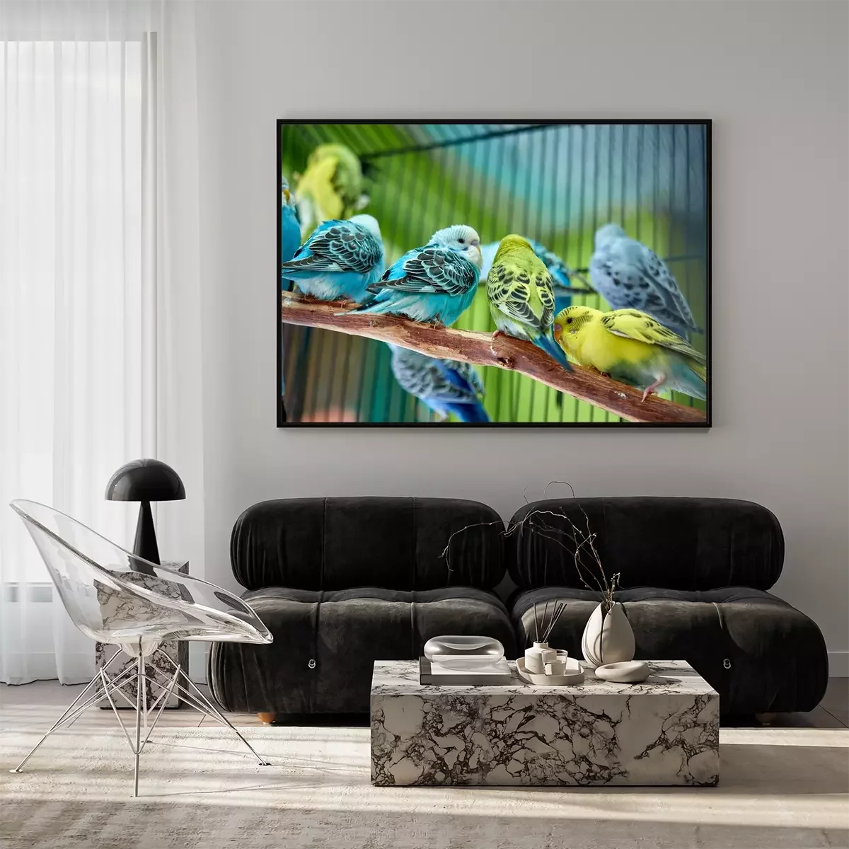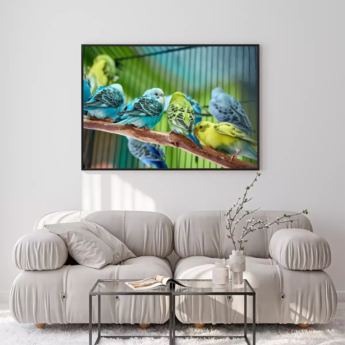 Poster  Perroquets colorés dans une cage
