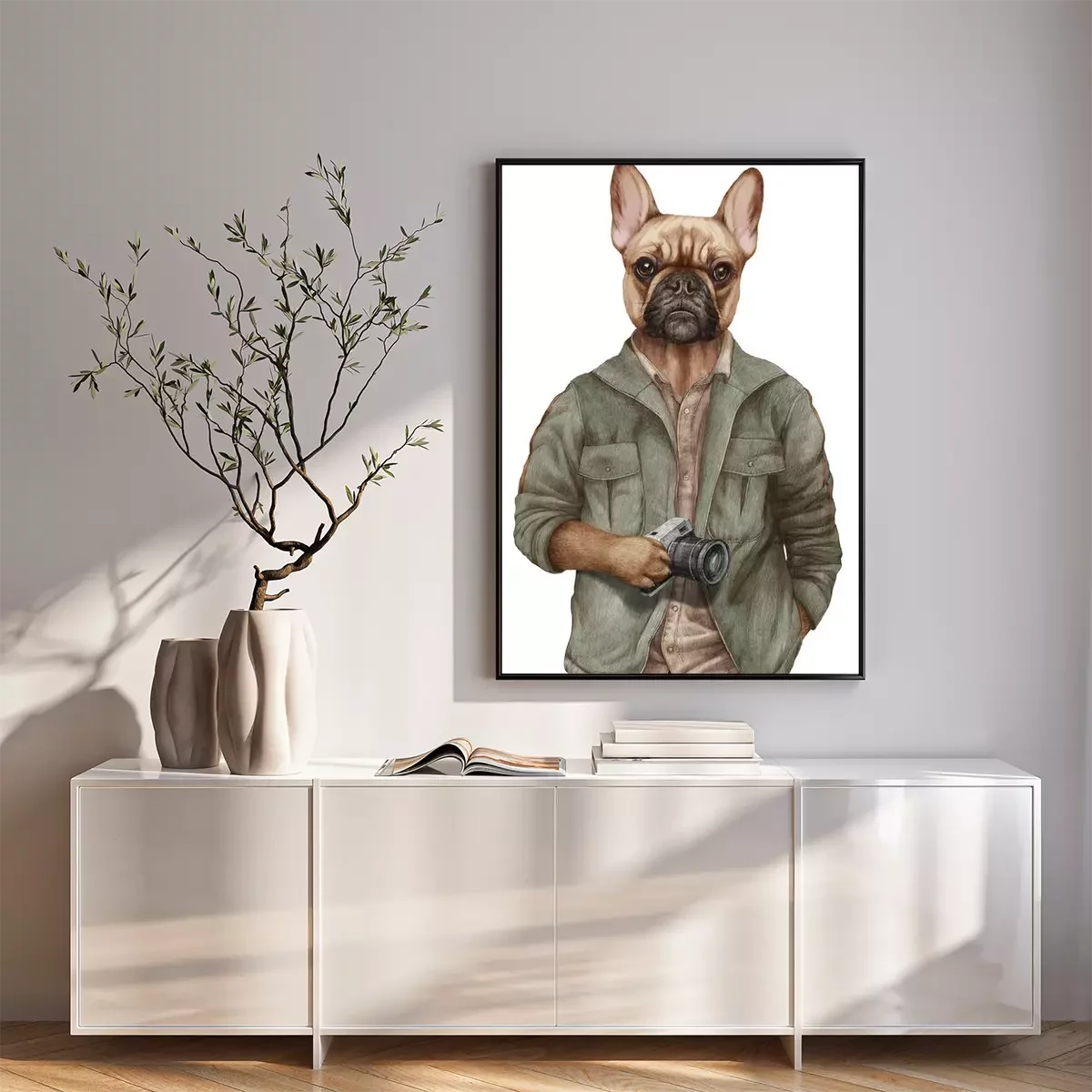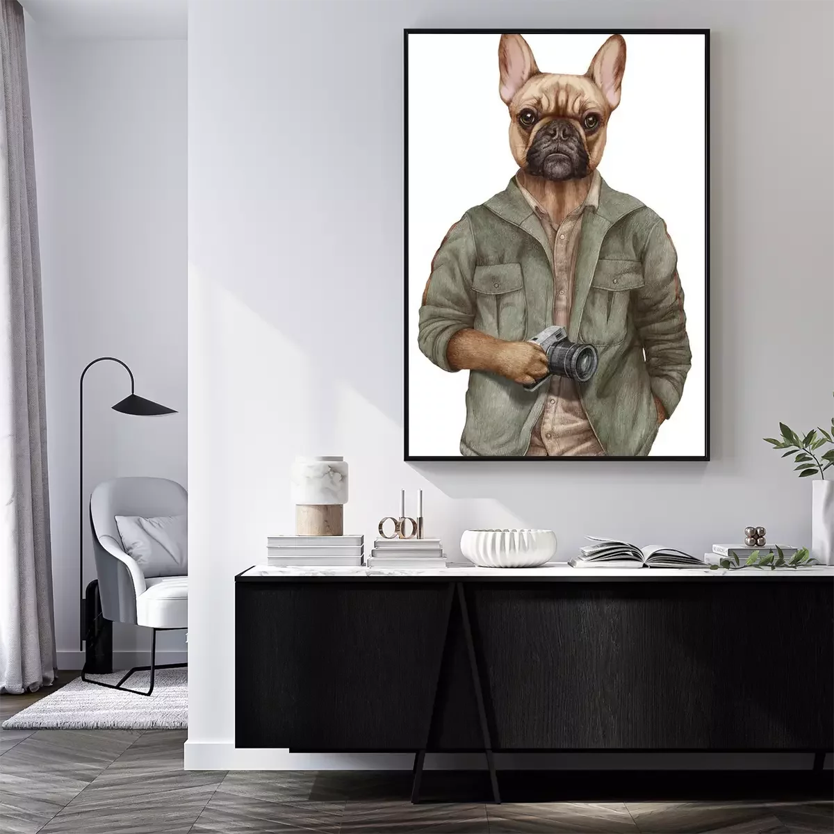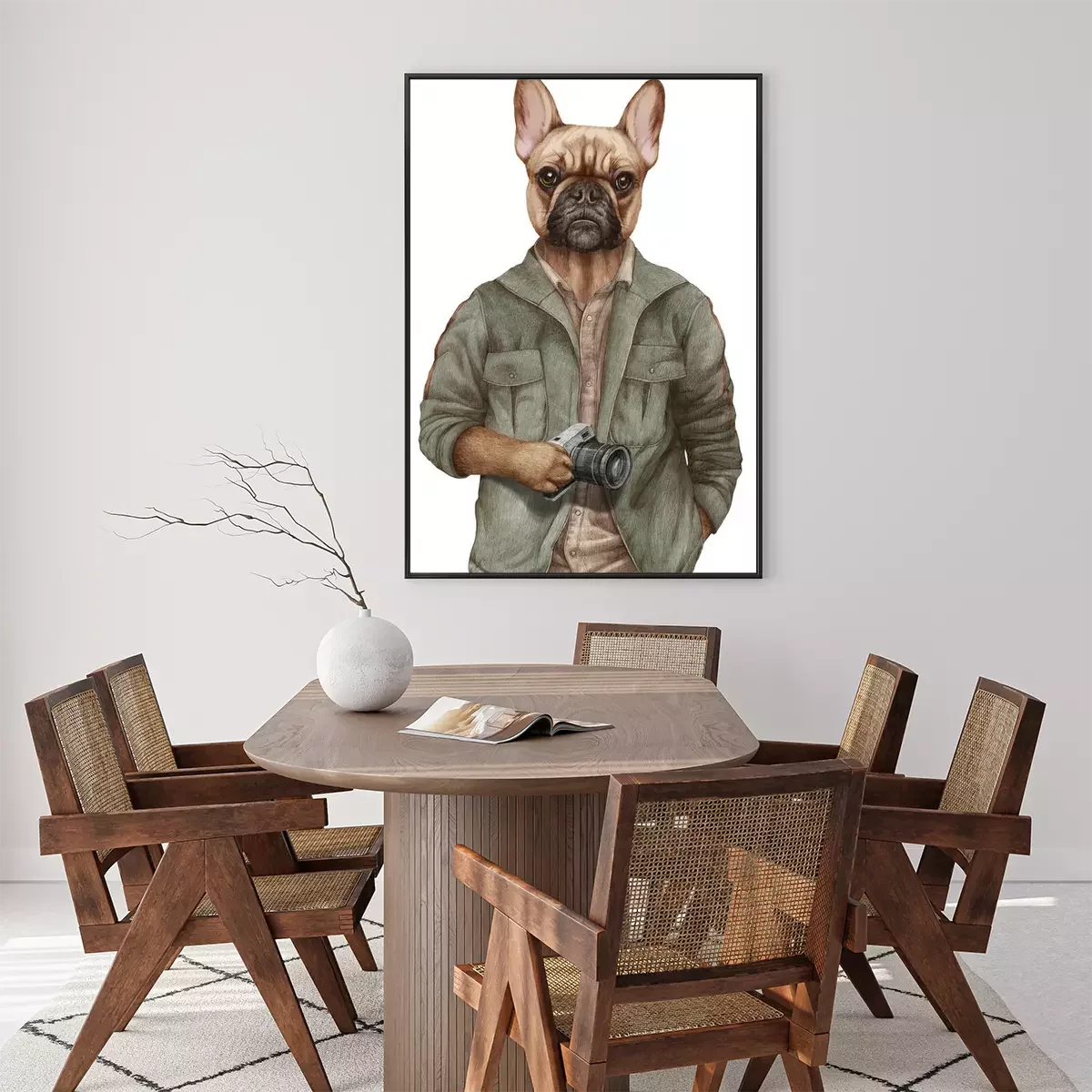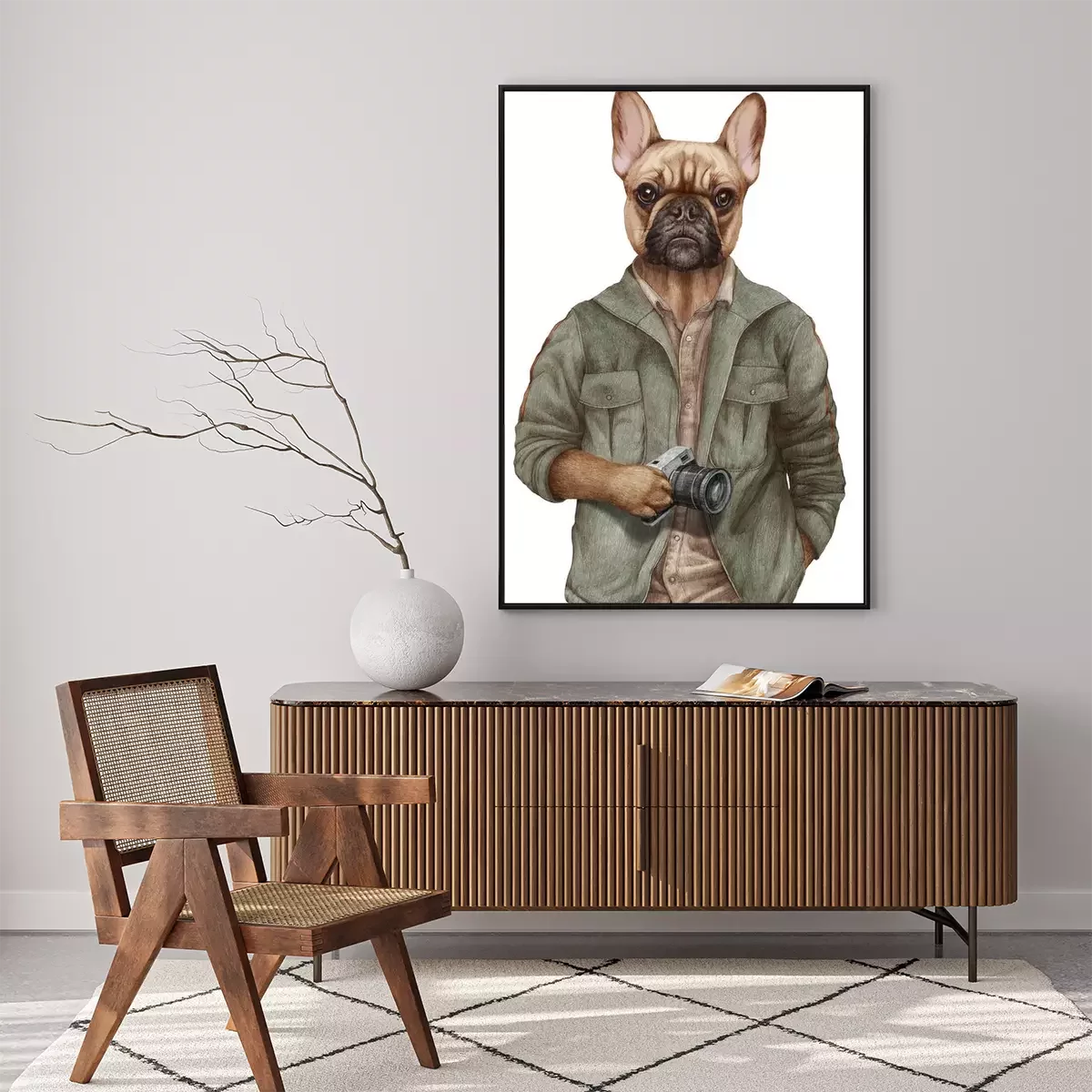 Poster  Personnage humain portant un sweat à capuche avec une tête de chien
