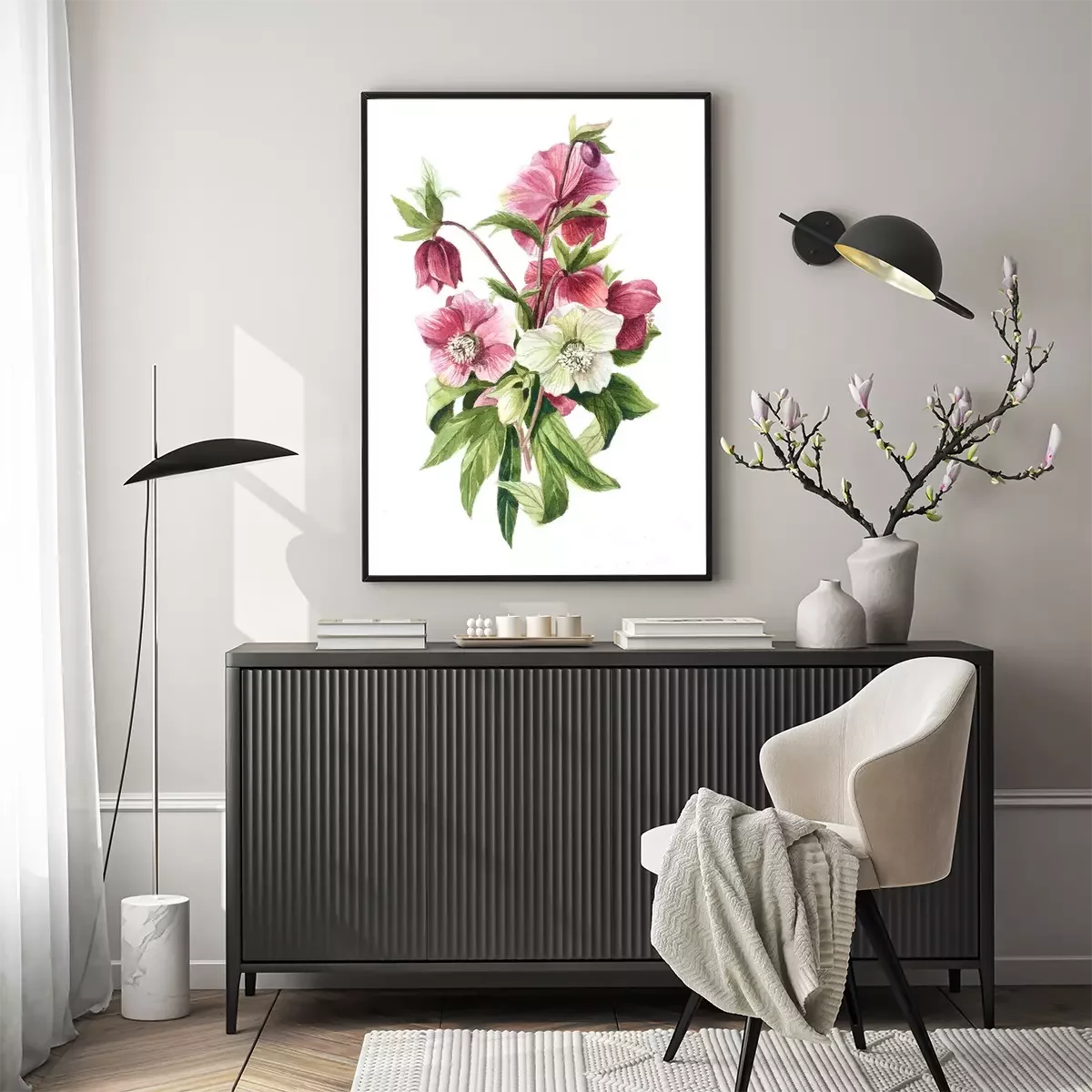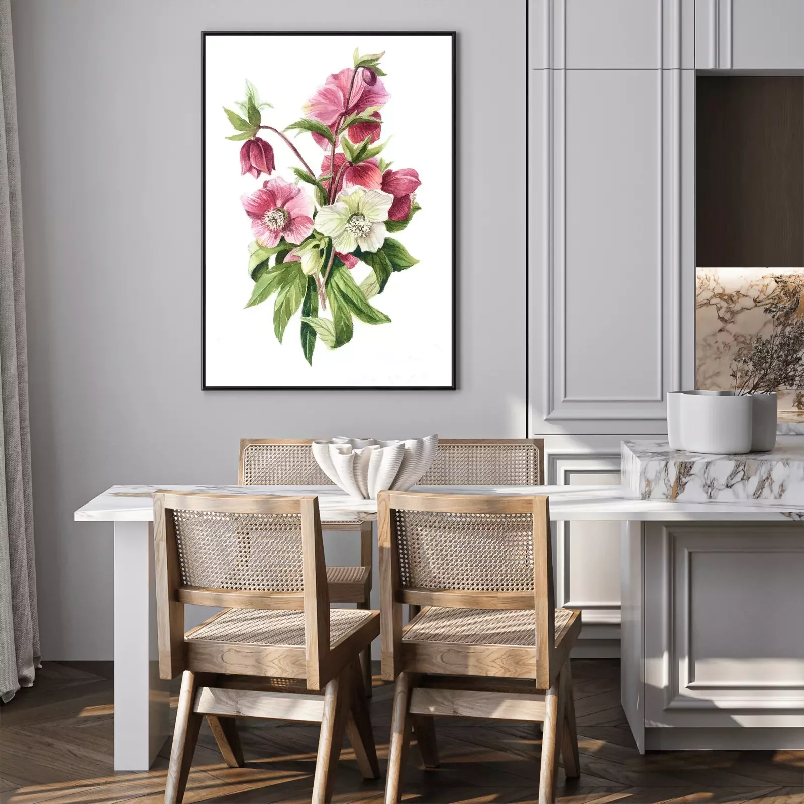 Poster : Petit bouquet de fleurs blanches et roses
