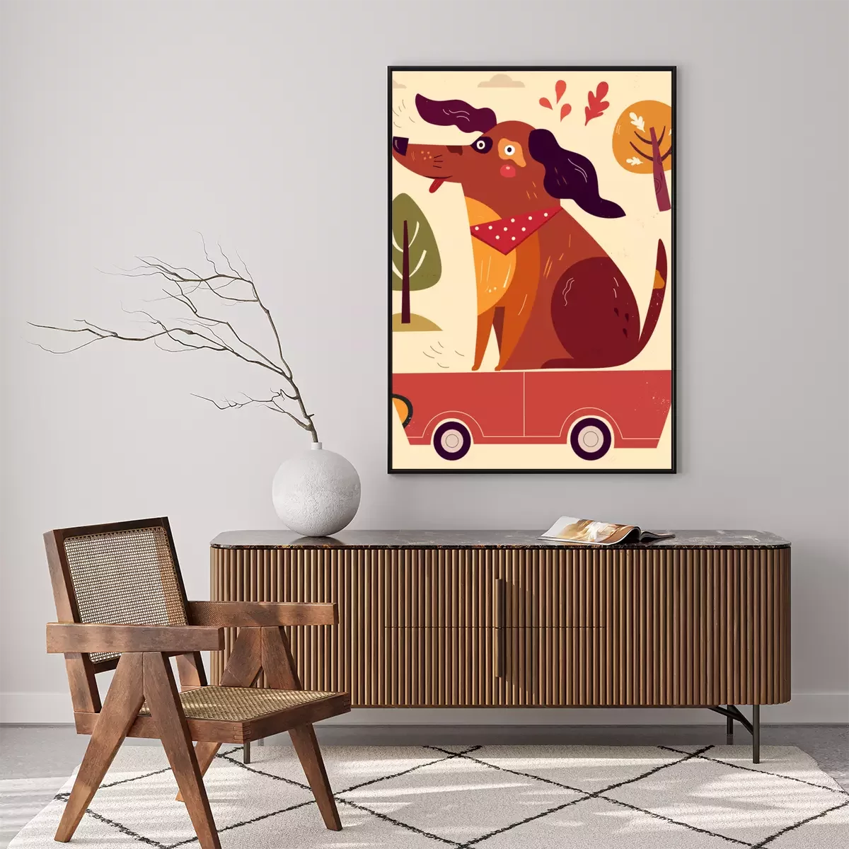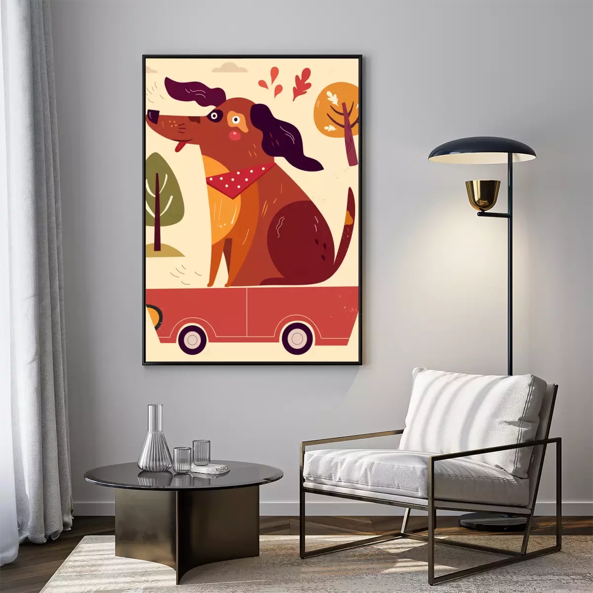 Poster  Petit chien drôle dans la voiture