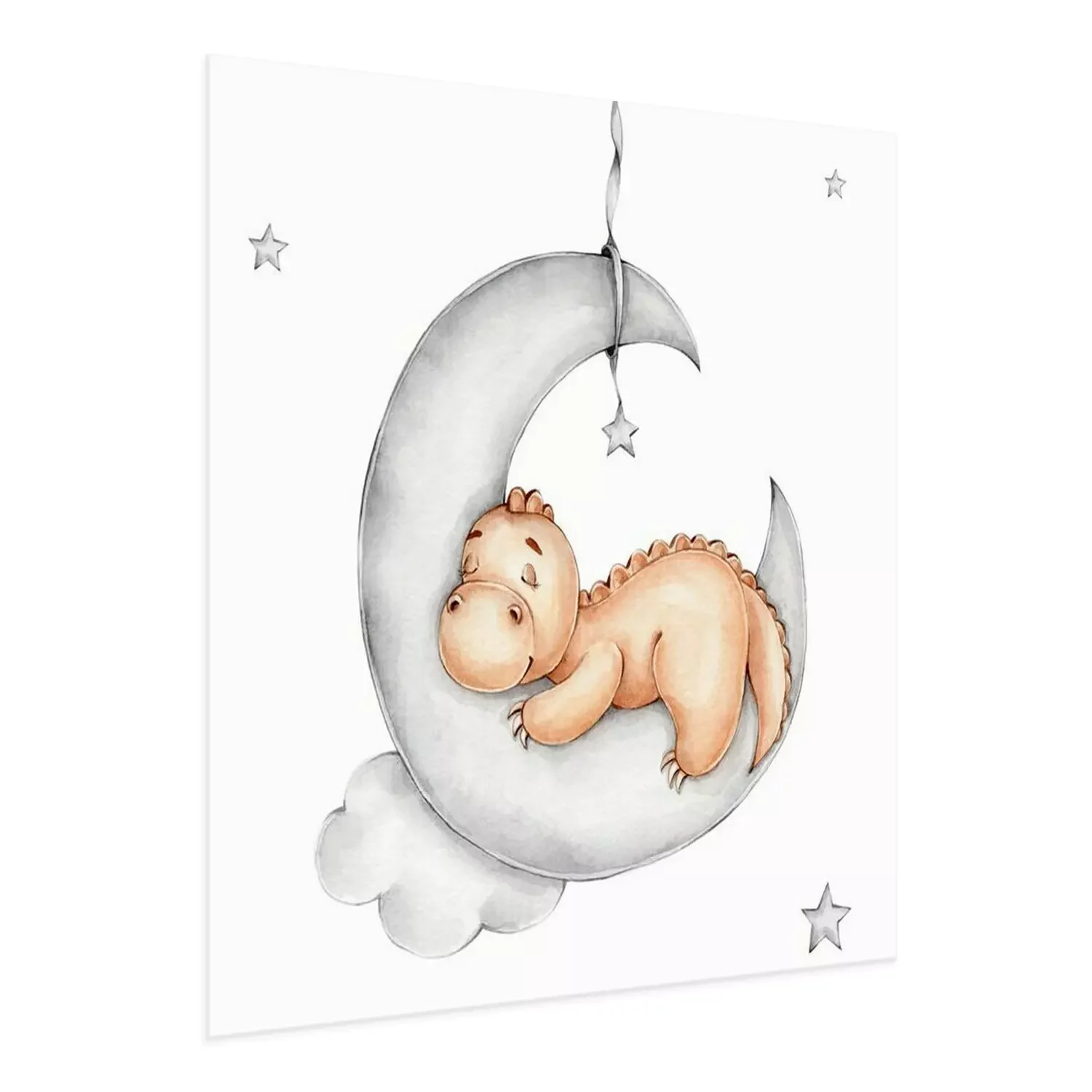 Cute sleeping teddy bear on the silver moon; watercolor hand draw illustration; with white isolated background