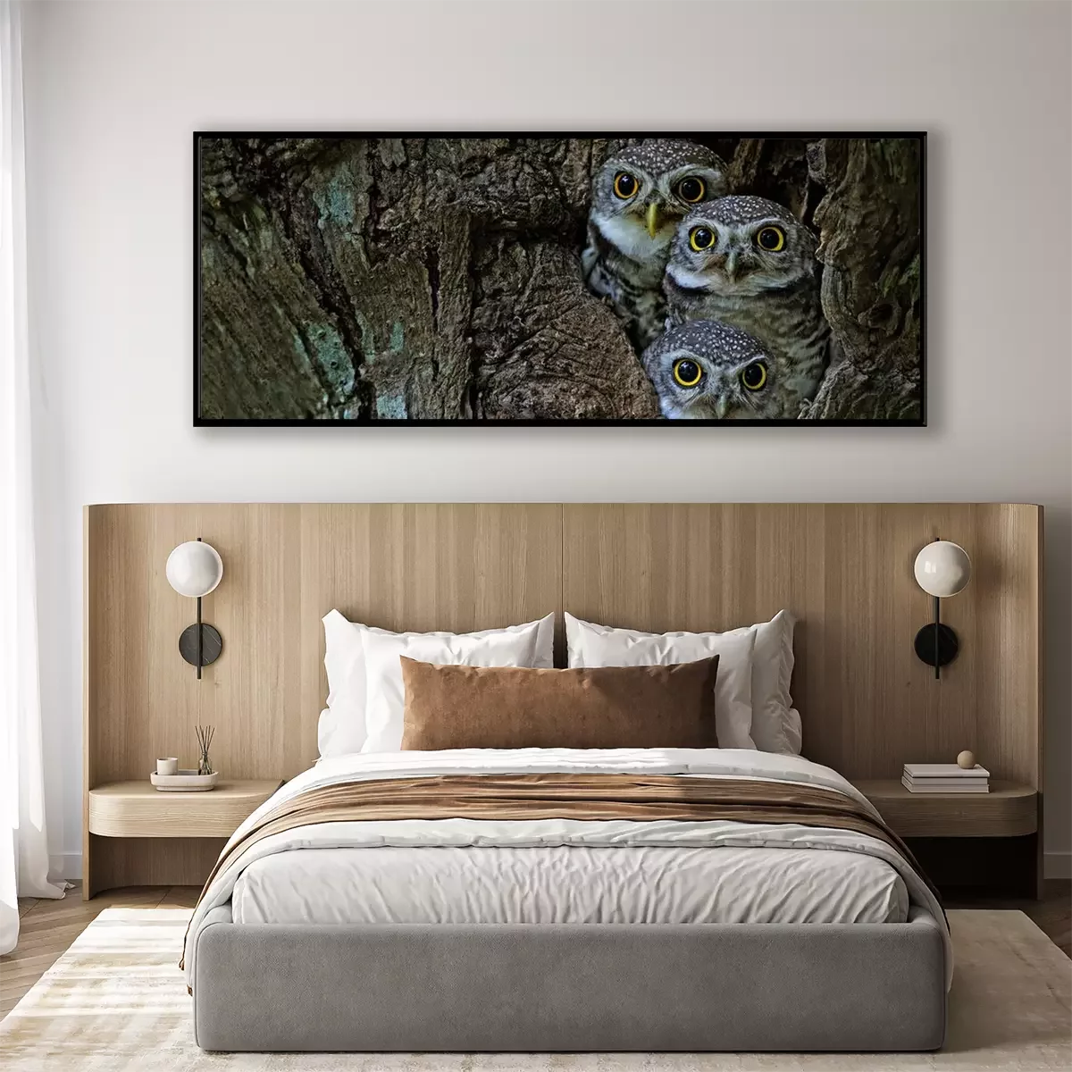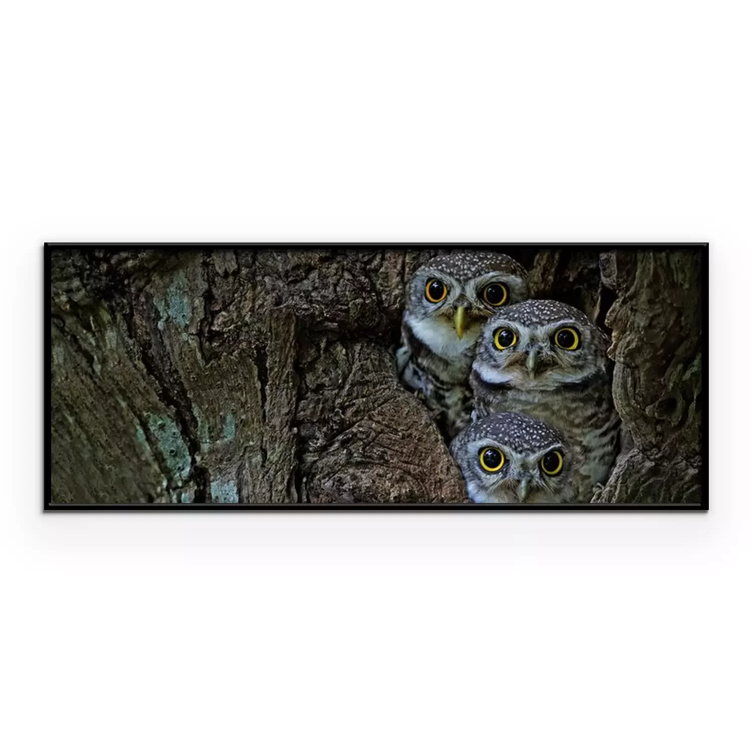 Poster  Petits hiboux jetant un coup d'oeil hors du nid