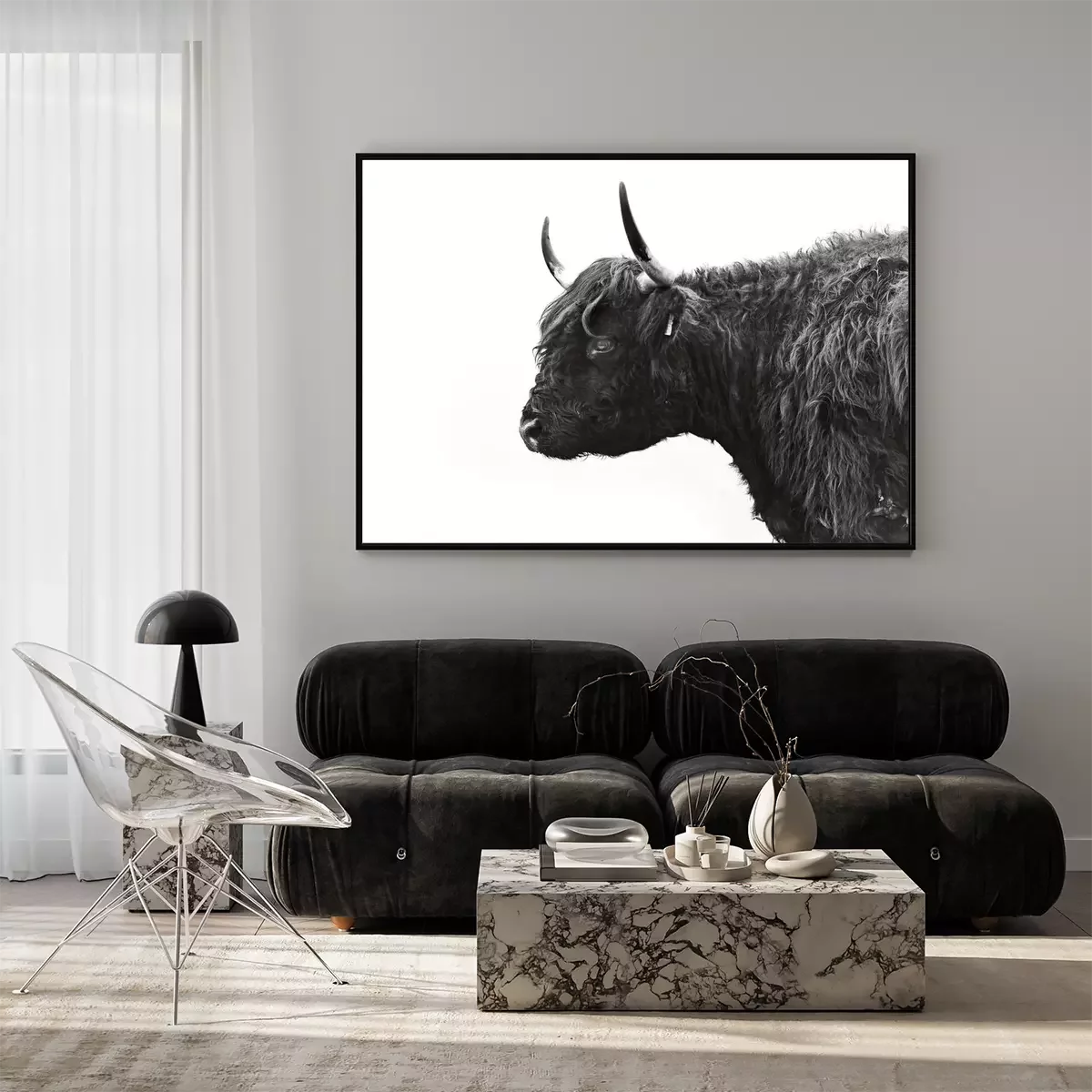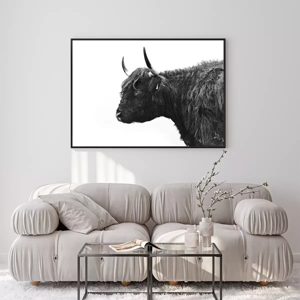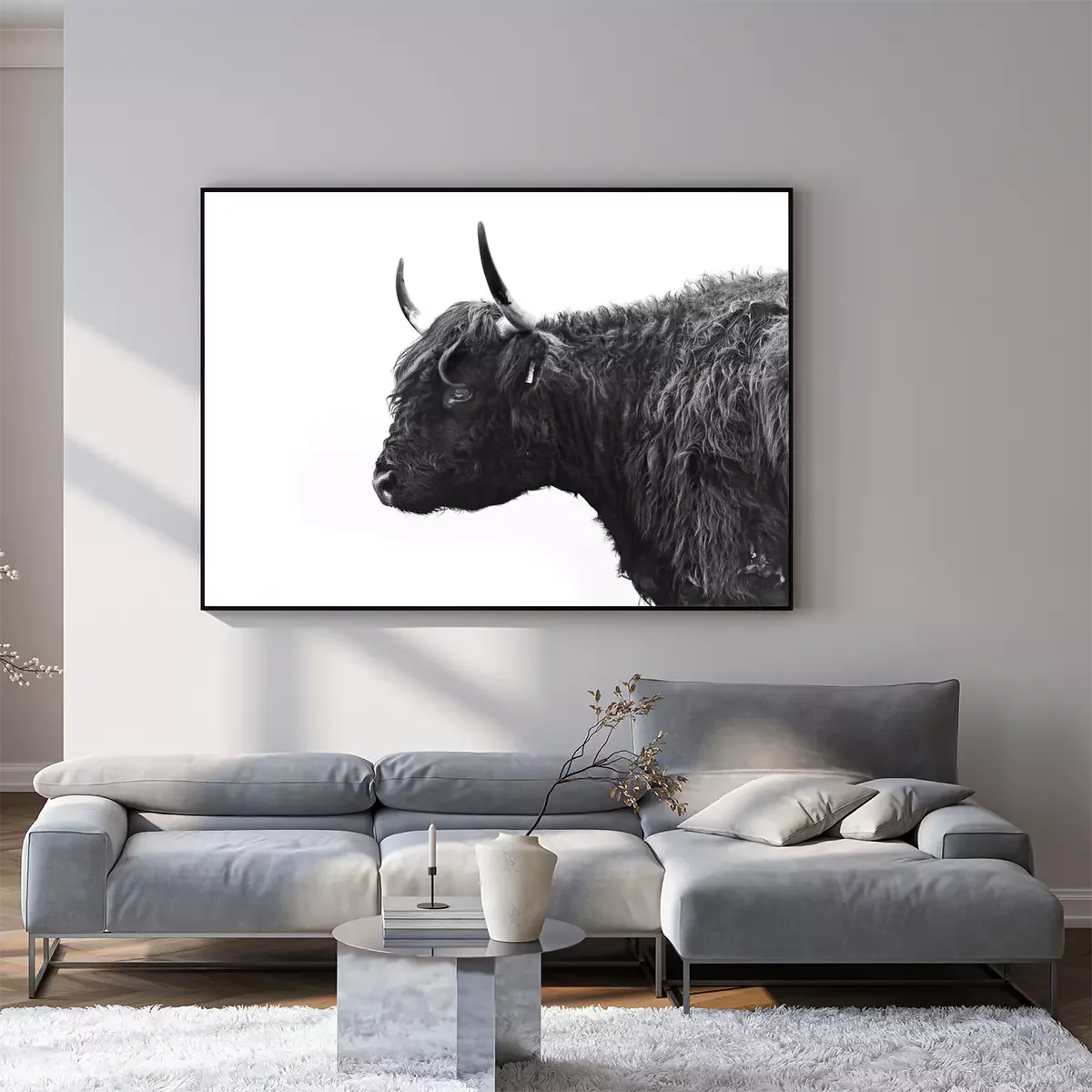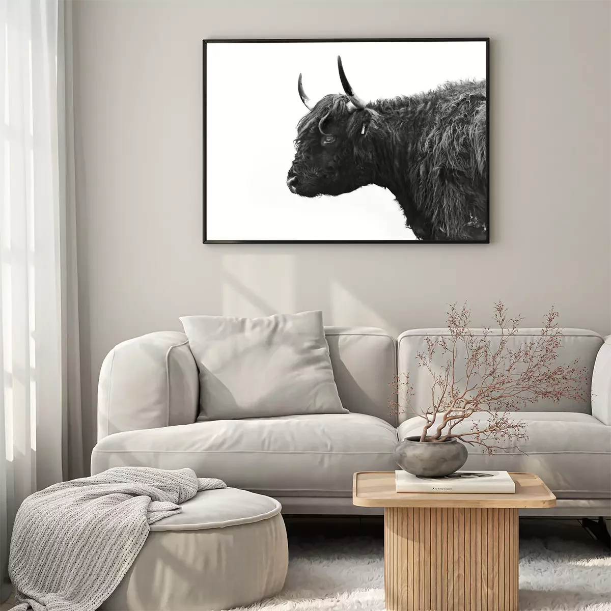 Poster : Photo en noir et blanc d'une vache vue de côté