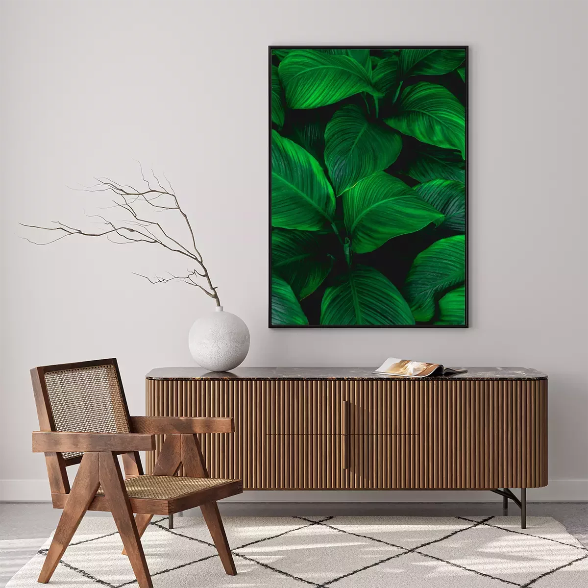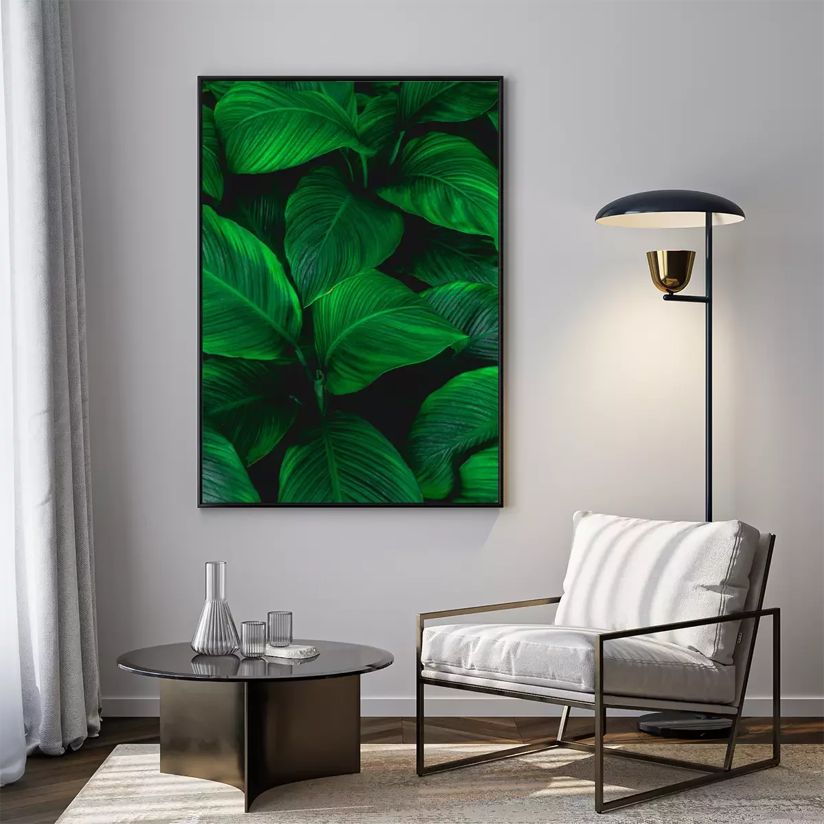 Leaves of Spathiphyllum cannifolium, abstract green texture, nature background, tropical leaf