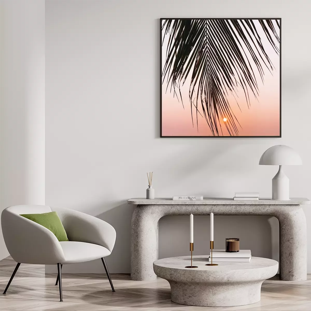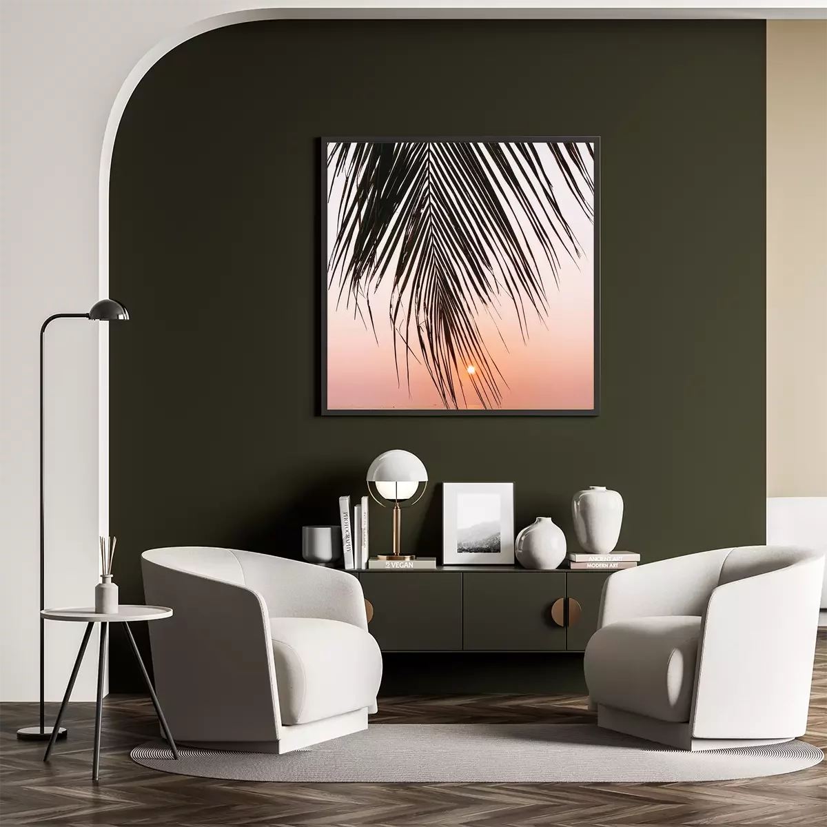 Poster : Photographie d'un palmier aven le soleil en fond