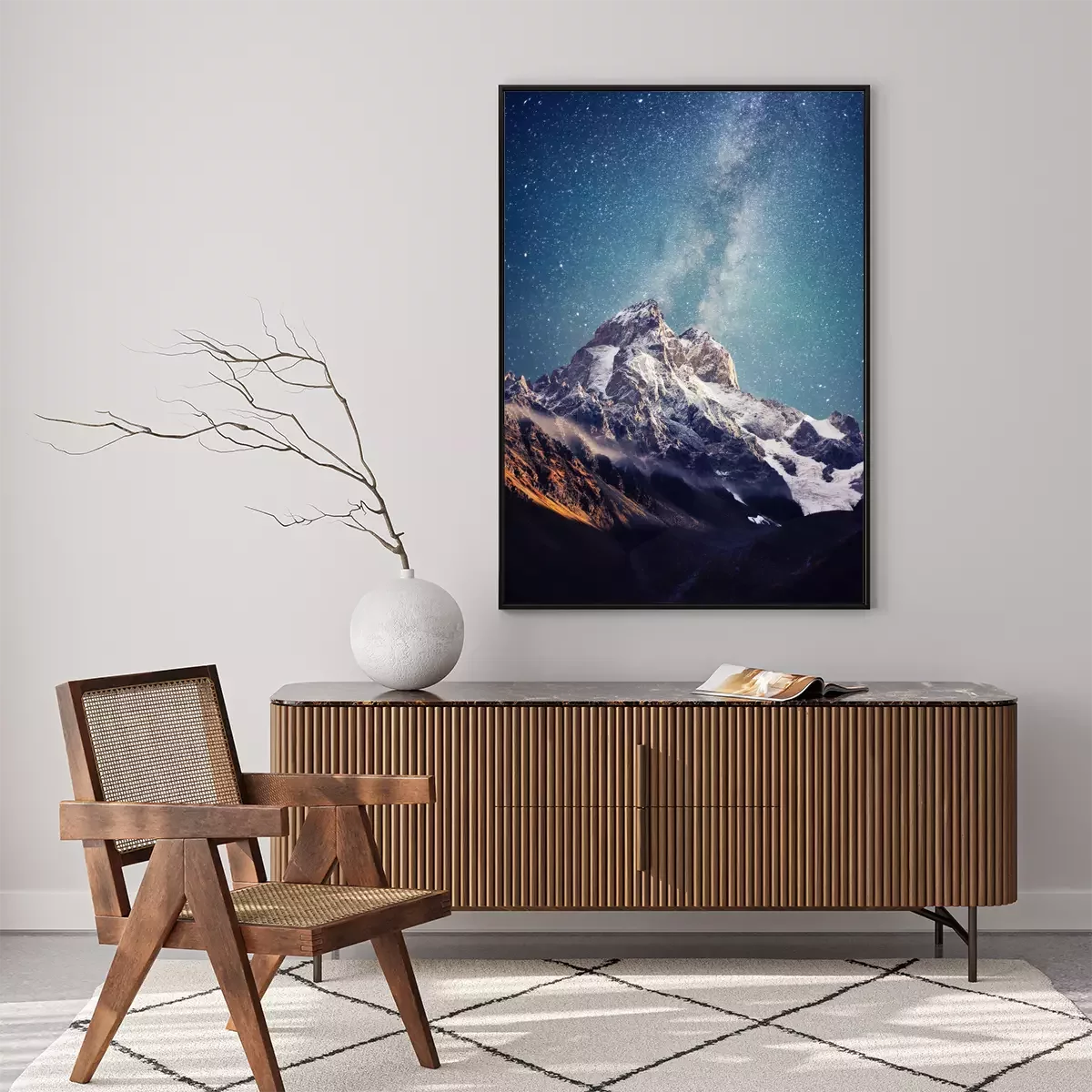 Poster : Photographie d'une montagne sur fond d'étoiles
