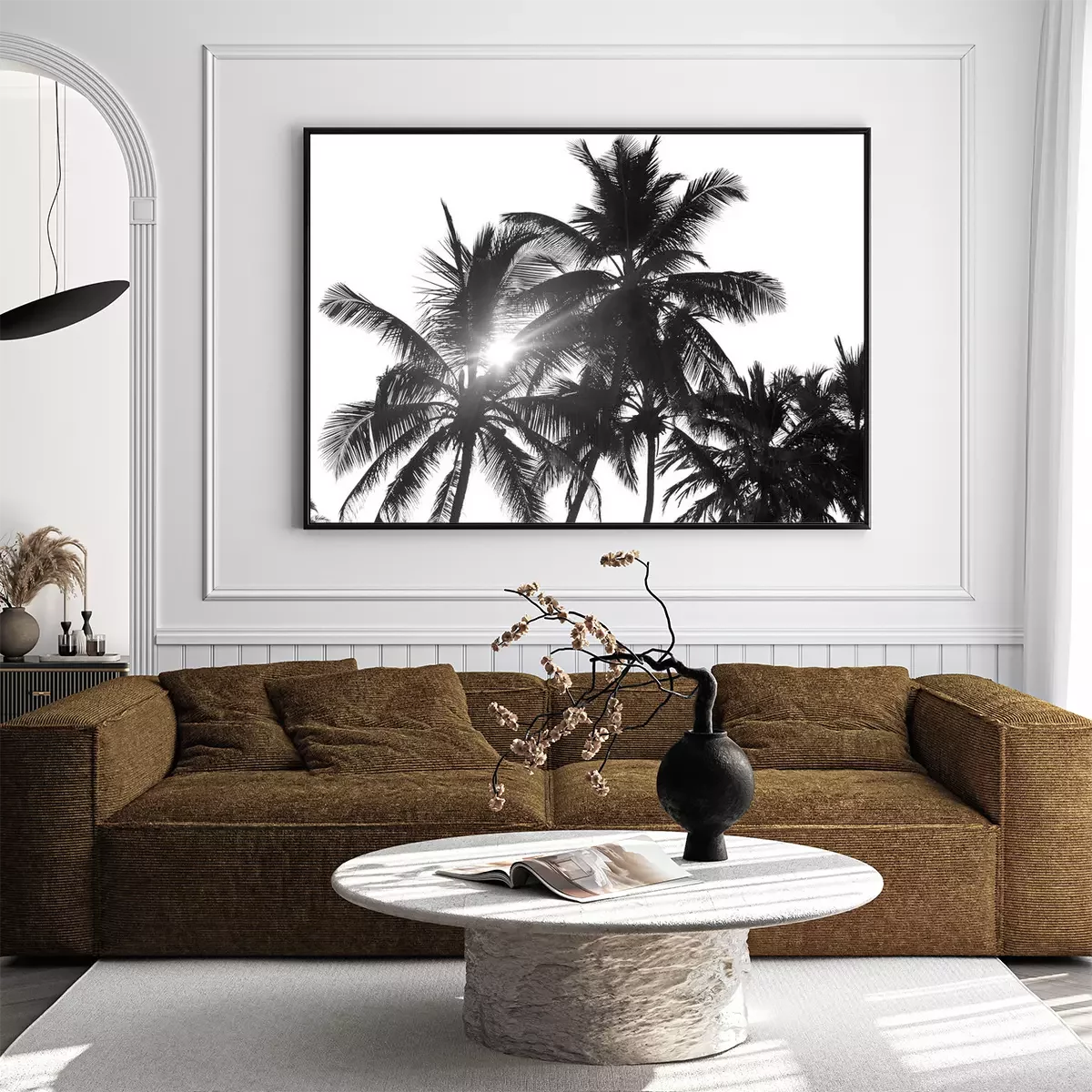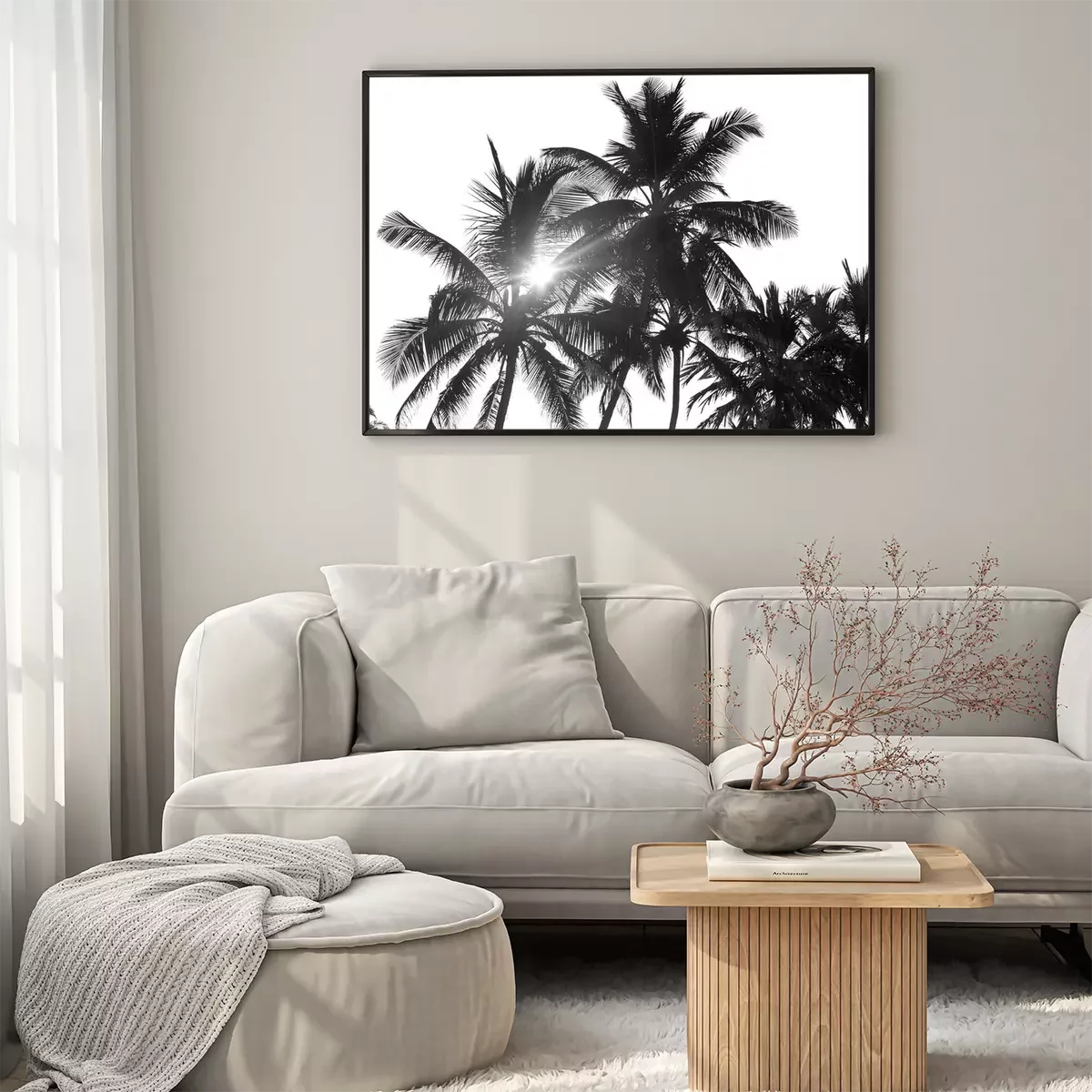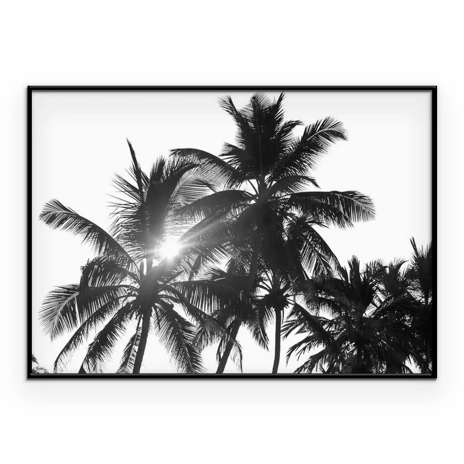 Poster  Photographie noir et blanc de palmiers et de soleil