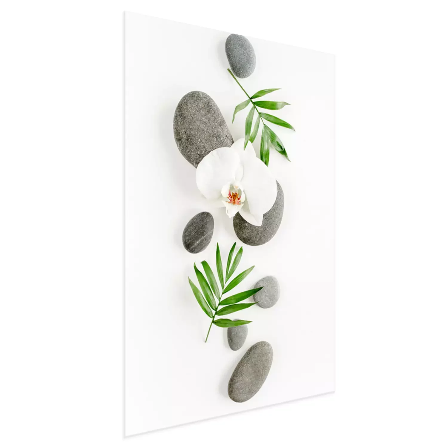 Poster  Pierres et composition d'orchidées avec des feuilles