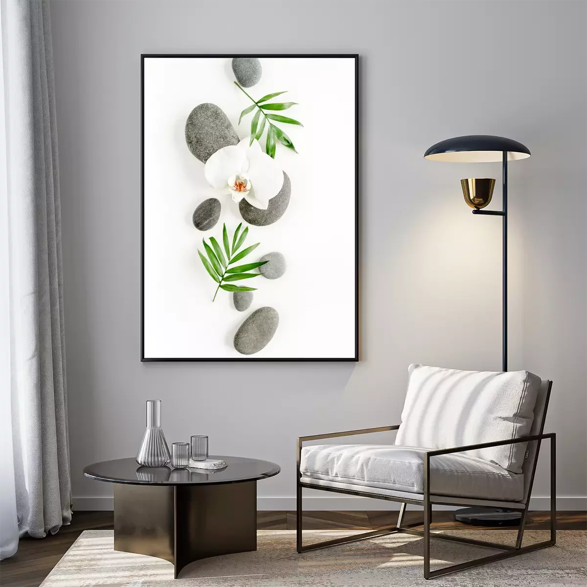 Poster : Pierres et composition d'orchidées avec des feuilles