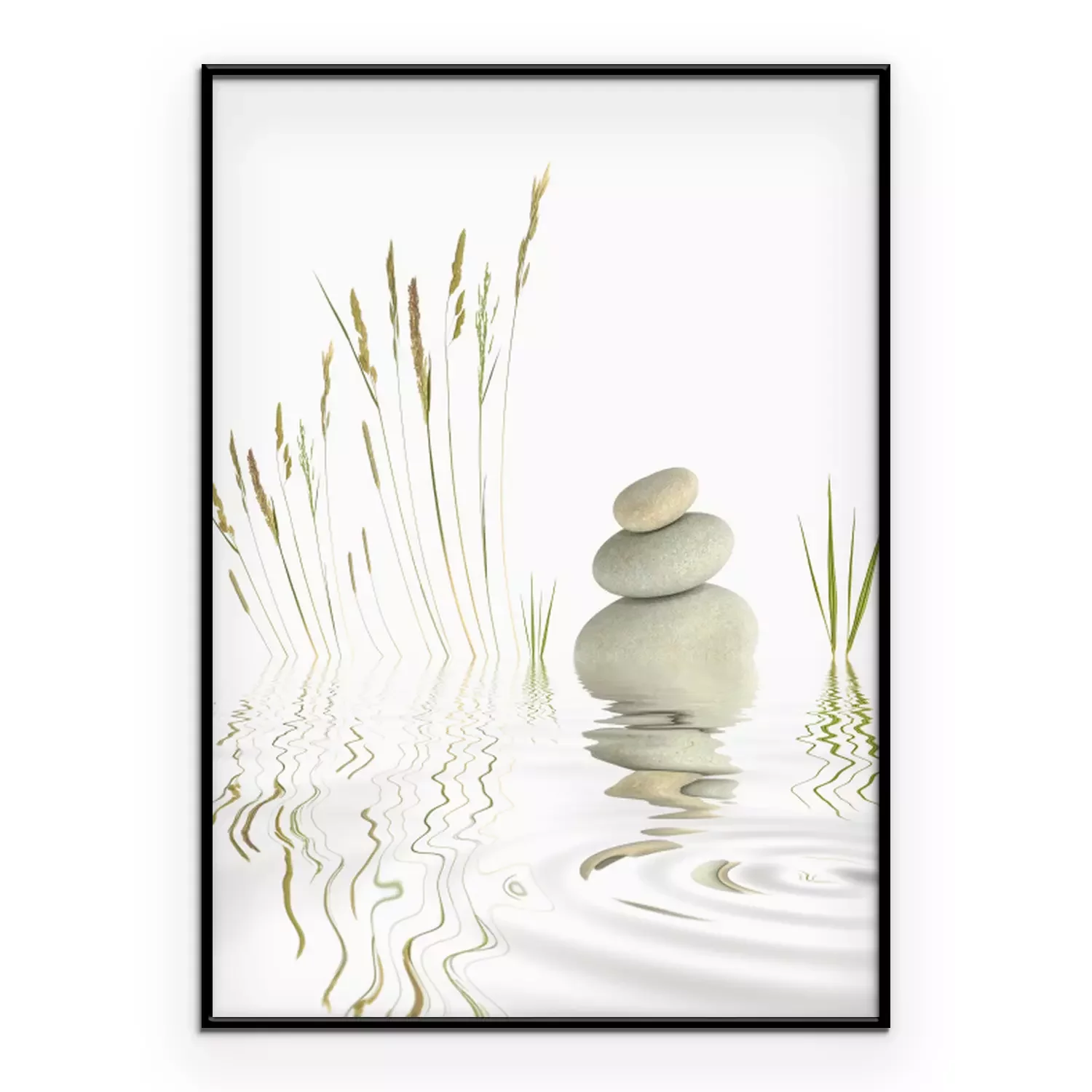 Poster : Pierres et herbes aquatiques sur le lac