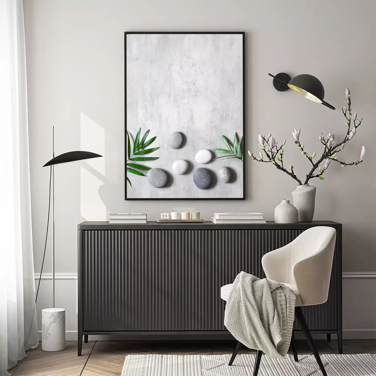 Poster : Pierres panachées sur socle en béton